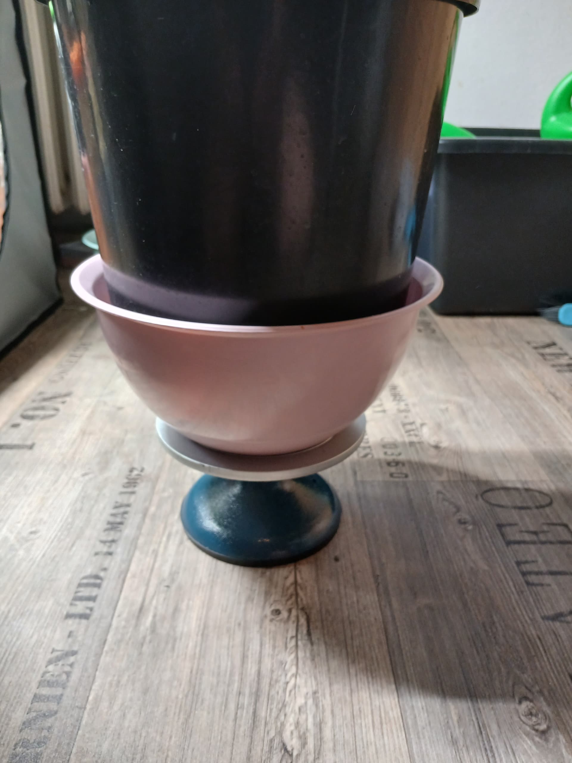 Voller Erfolg jetzt kann ich zurückgelehnt in meinem Stuhl sitzen. In der einen Hand die Akku Pumpe und mit der anderen kann ich schön den Topf drehen mit einem Finger. So gleichmäßig, schnell und entspannt hab ich noch nie gegossen. Man könnte jetzt sogar fast von Spaß reden. Was super passt wenn ich in Zukunft 8 Töpfe Gießen muss.