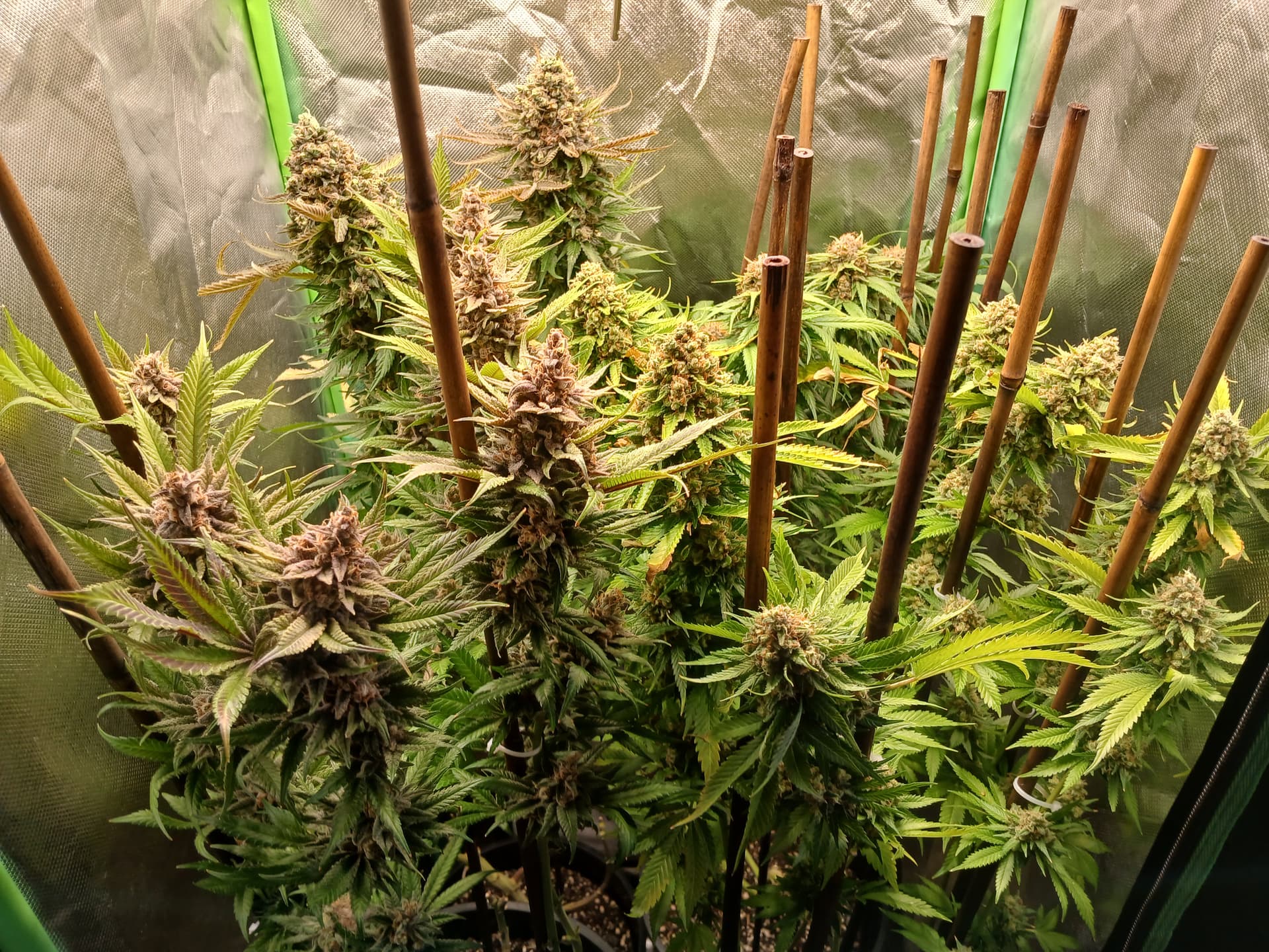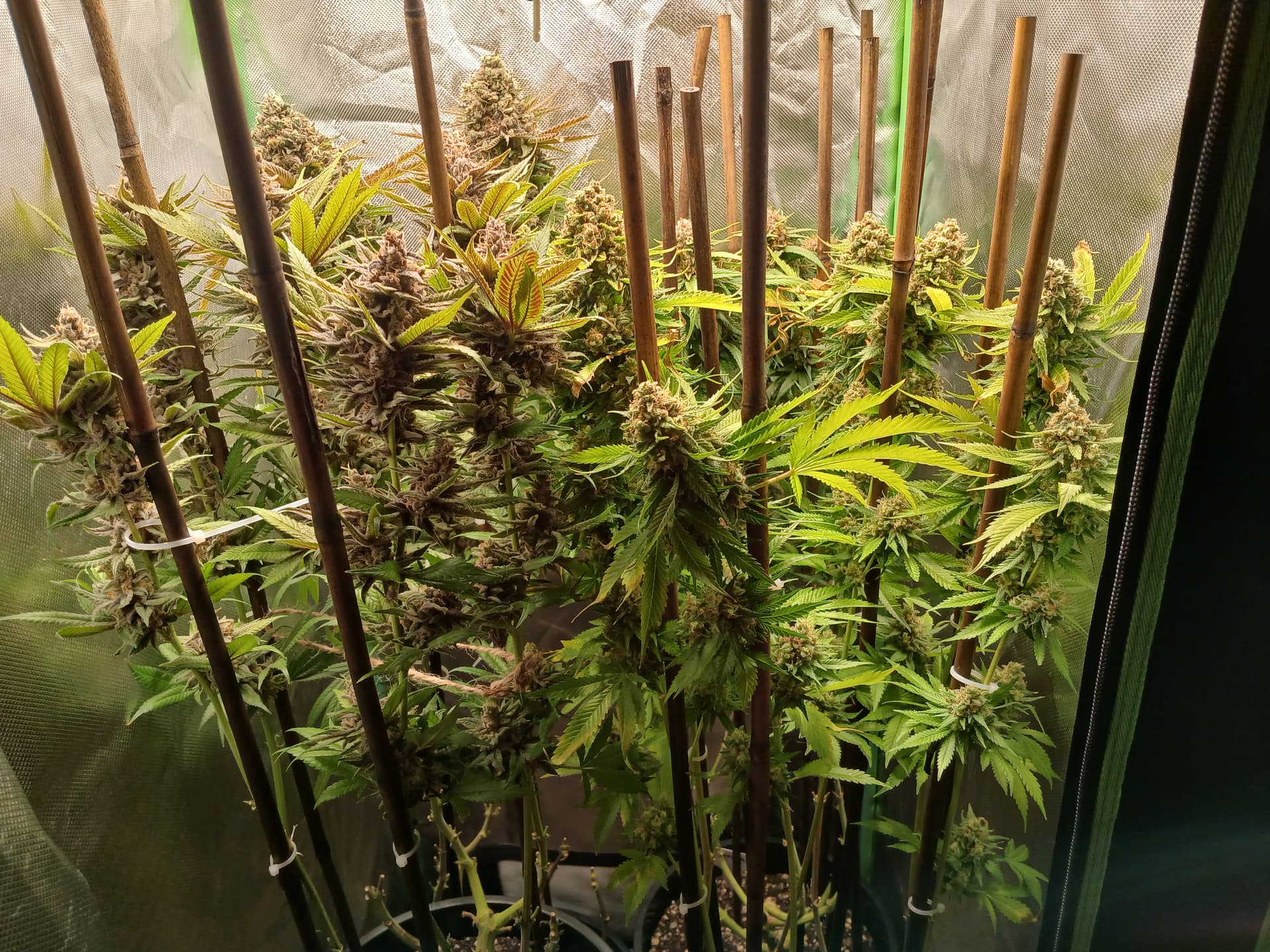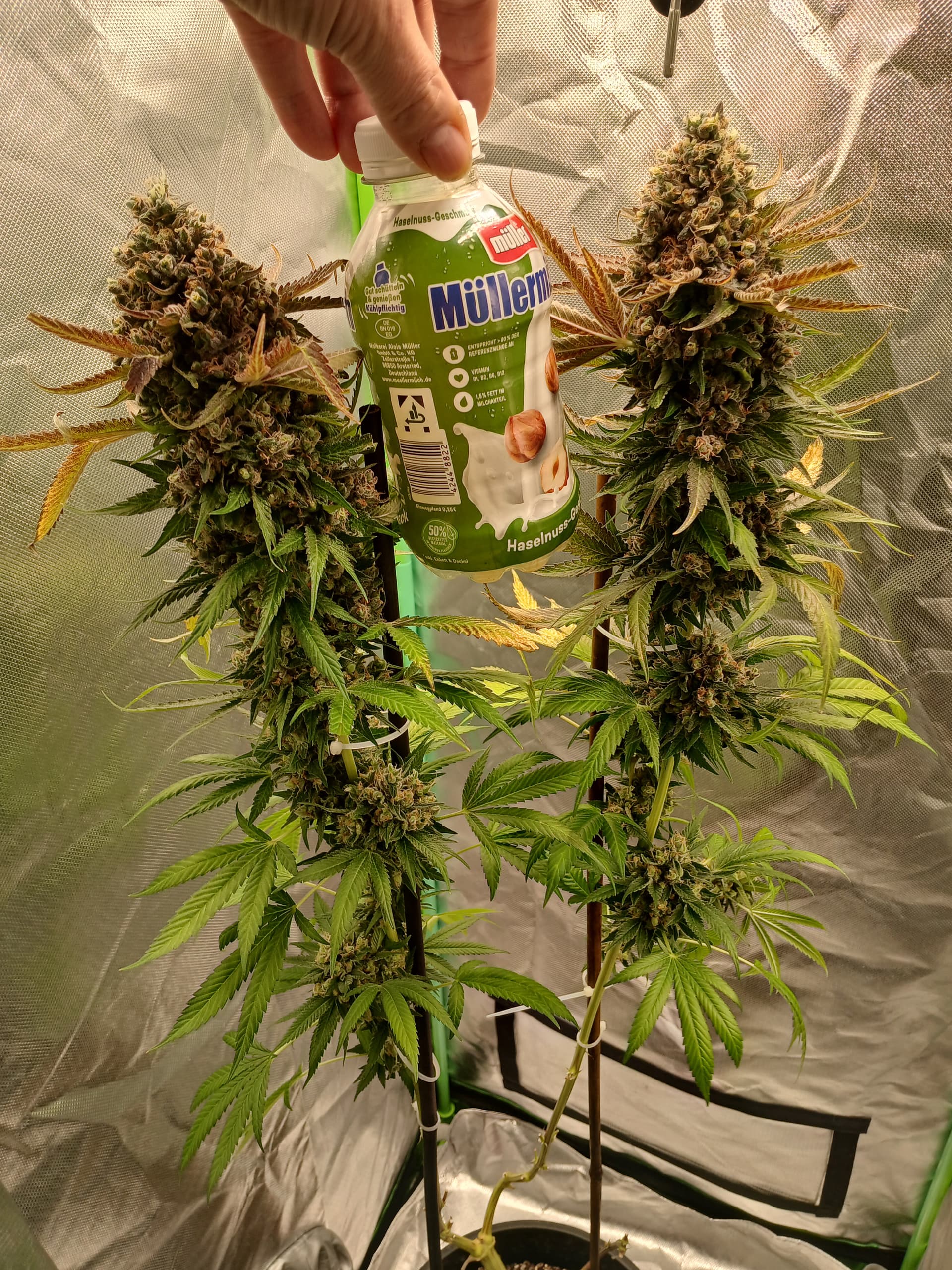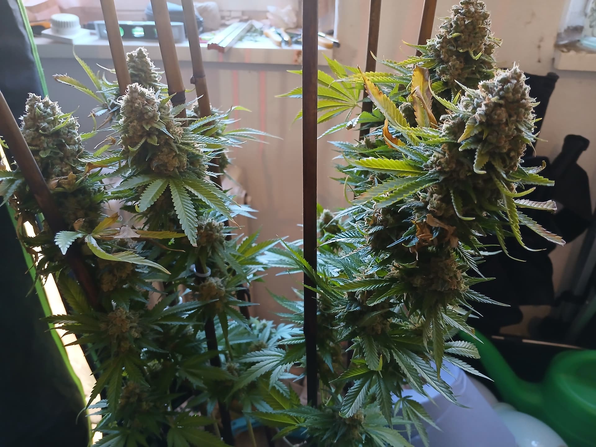 So zum Abschluss kann ich sagen den Lauf habe ich versaut. Es ist nicht nur die Ausbeute die grade mal bei 150g liegt. Sondern auch von der Qualität. Die GG#4 riecht so gut wie garnicht und die Bubblegum hat grade mal 28g ergeben. Die Ergiebigste Dame war die mit den zwei dicken Knospen und langen Beinen. Die hat auch die schönsten Buds echt lustig