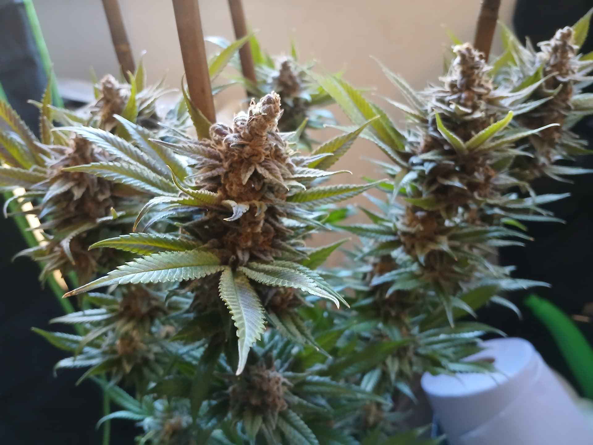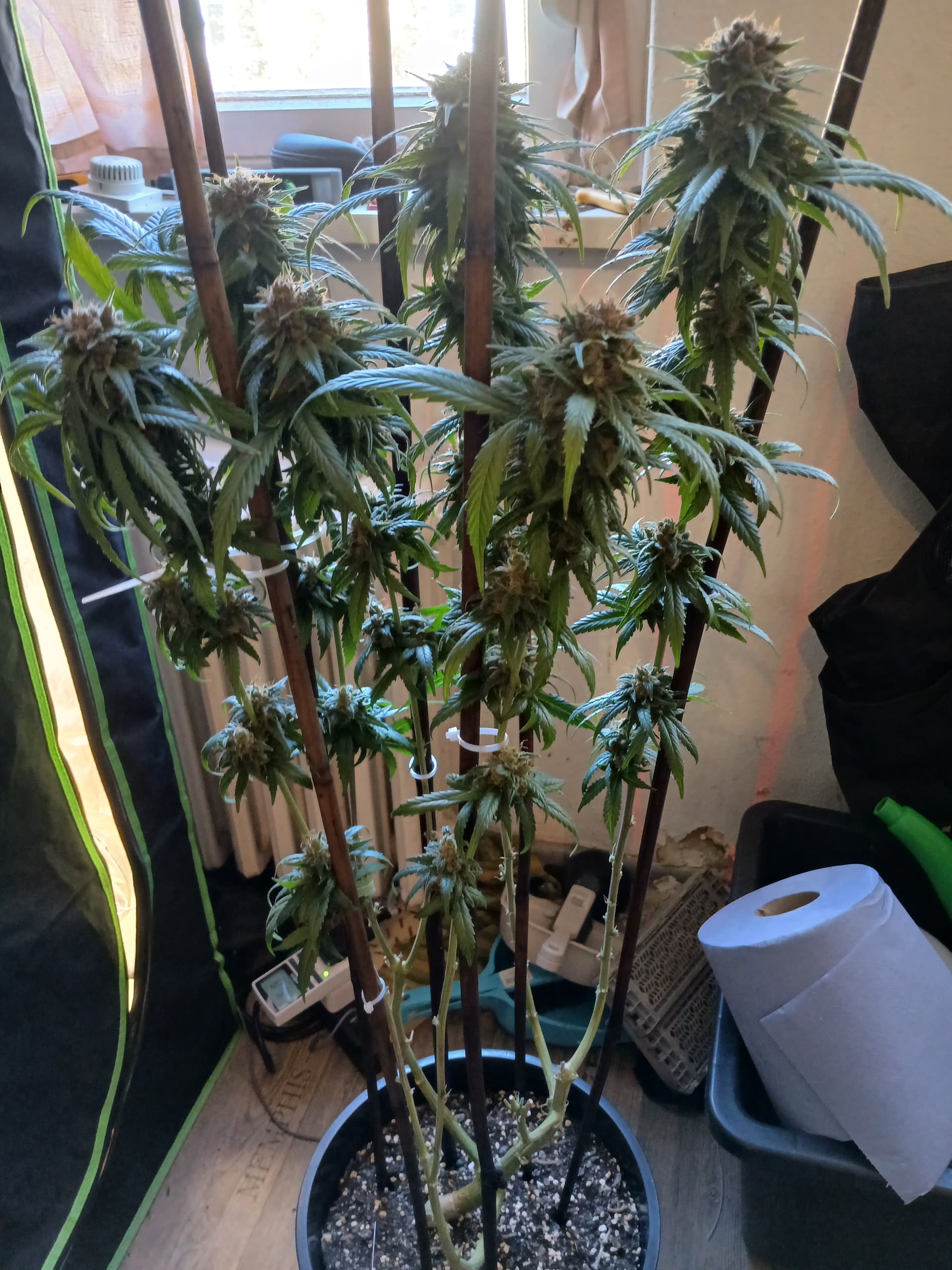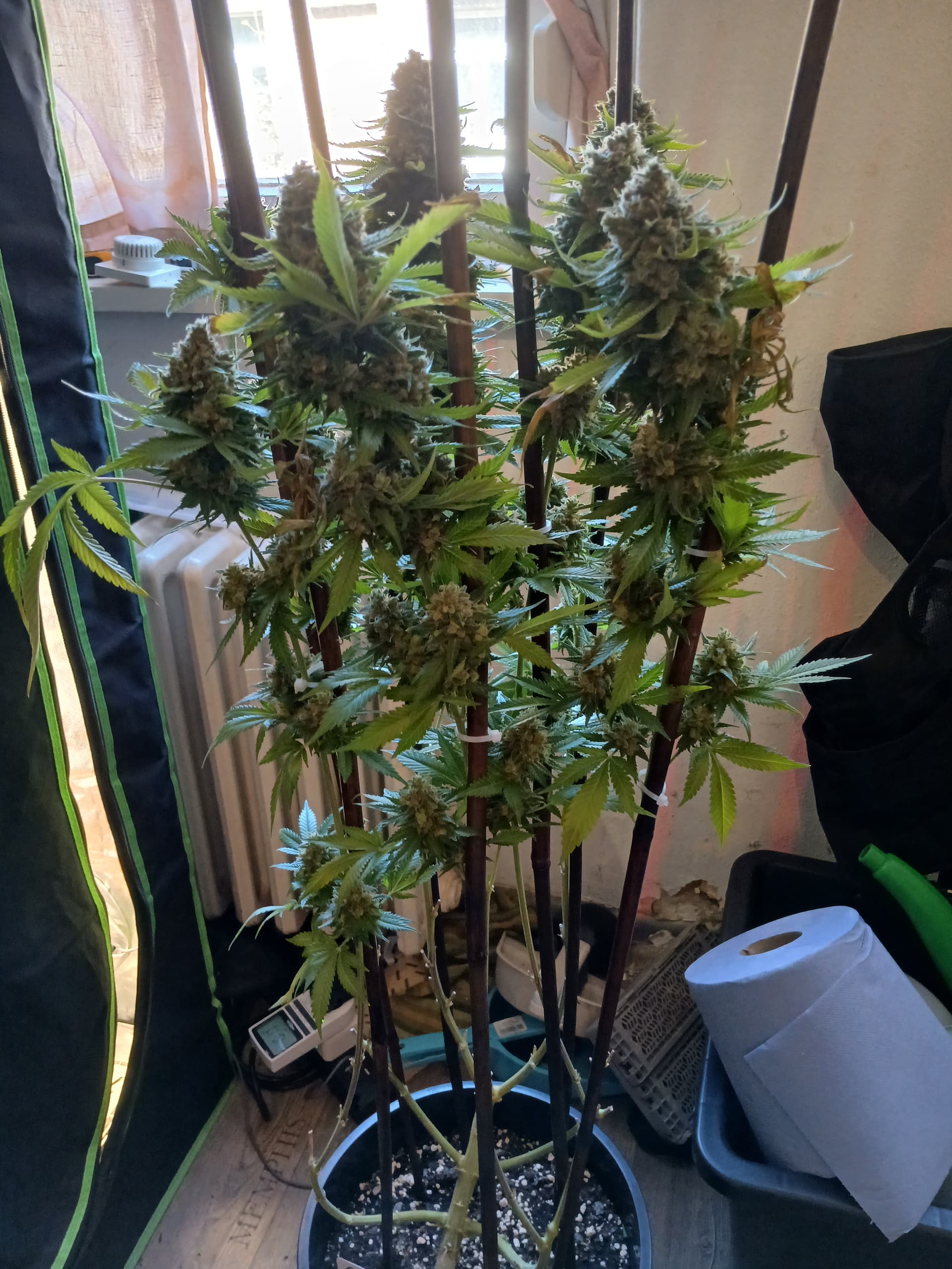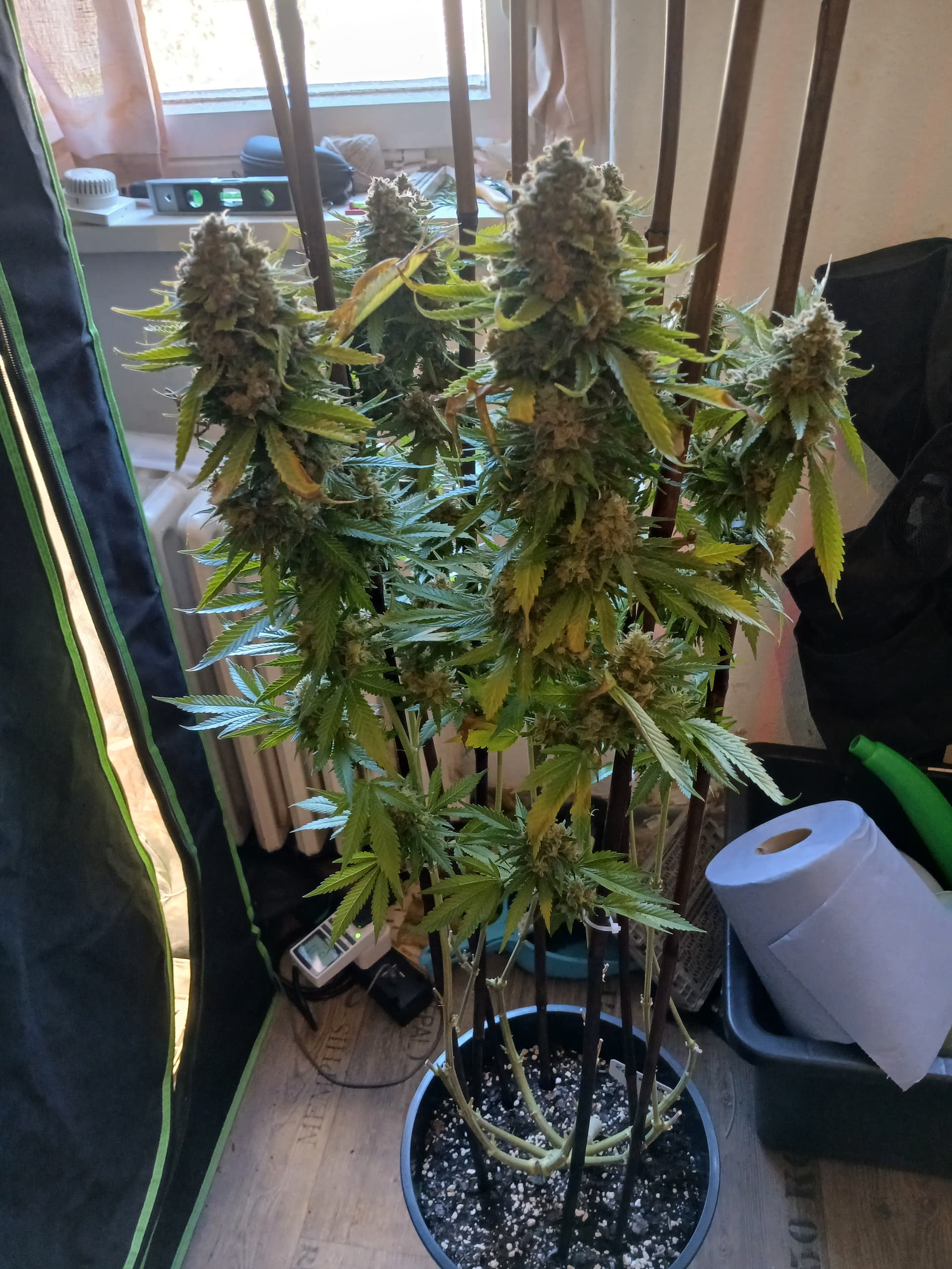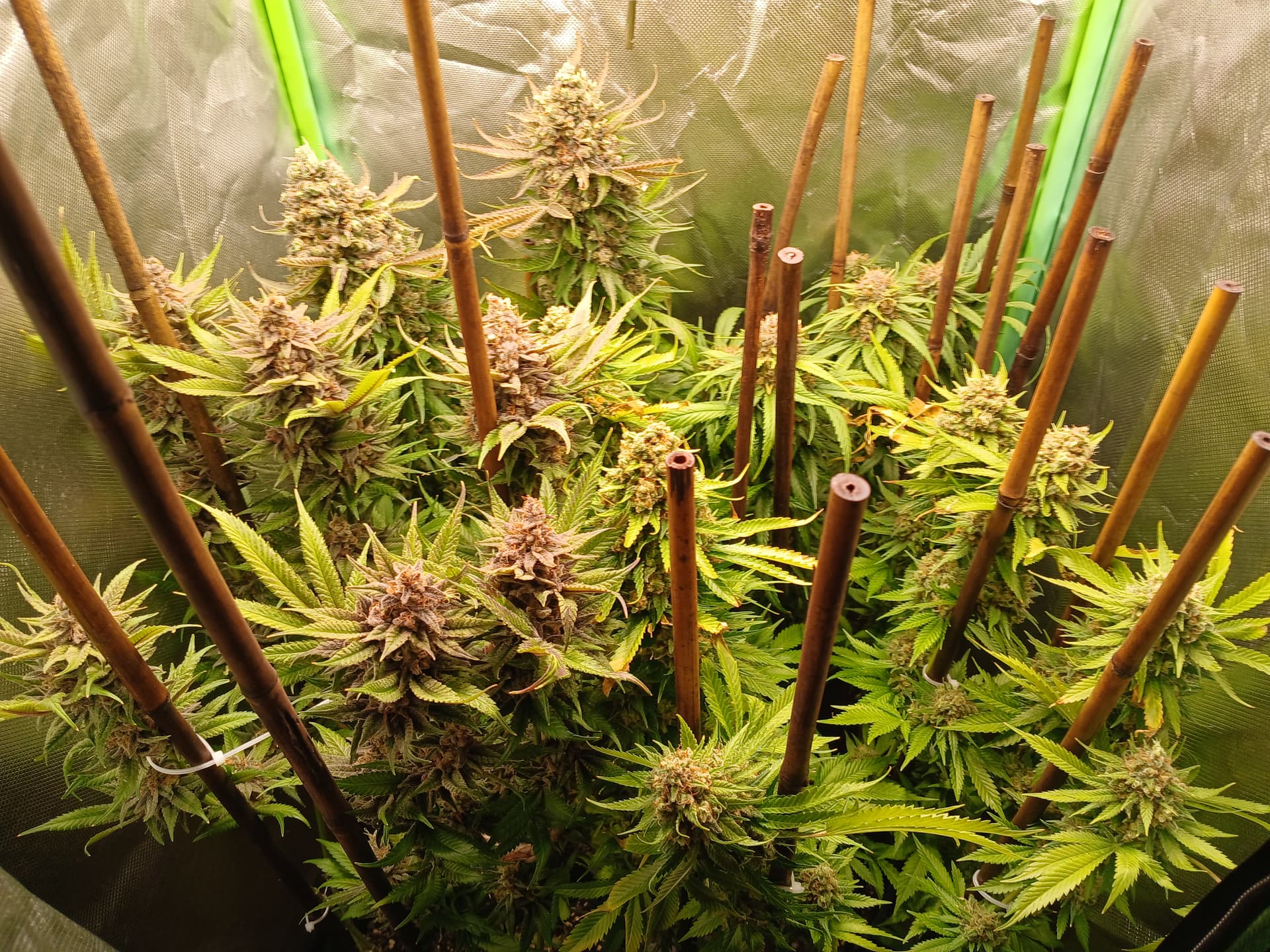 So zum Abschluss kann ich sagen den Lauf habe ich versaut. Es ist nicht nur die Ausbeute die grade mal bei 150g liegt. Sondern auch von der Qualität. Die GG#4 riecht so gut wie garnicht und die Bubblegum hat grade mal 28g ergeben. Die Ergiebigste Dame war die mit den zwei dicken Knospen und langen Beinen. Die hat auch die schönsten Buds echt lustig