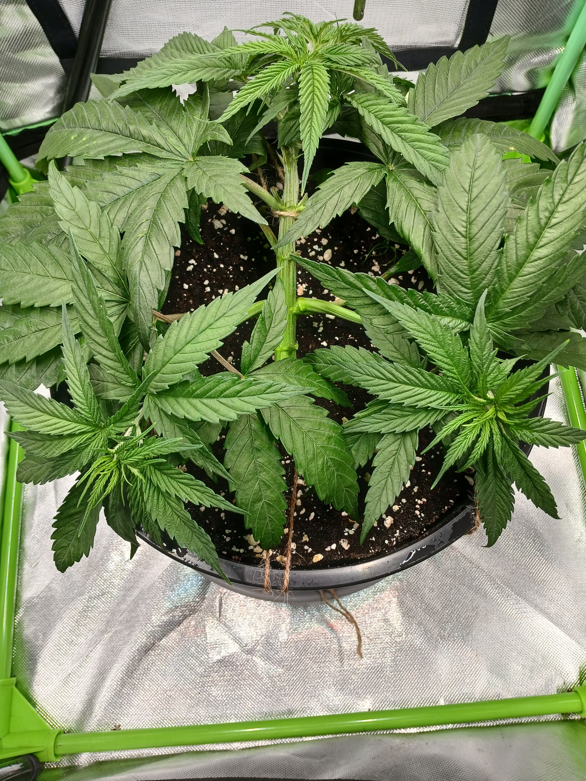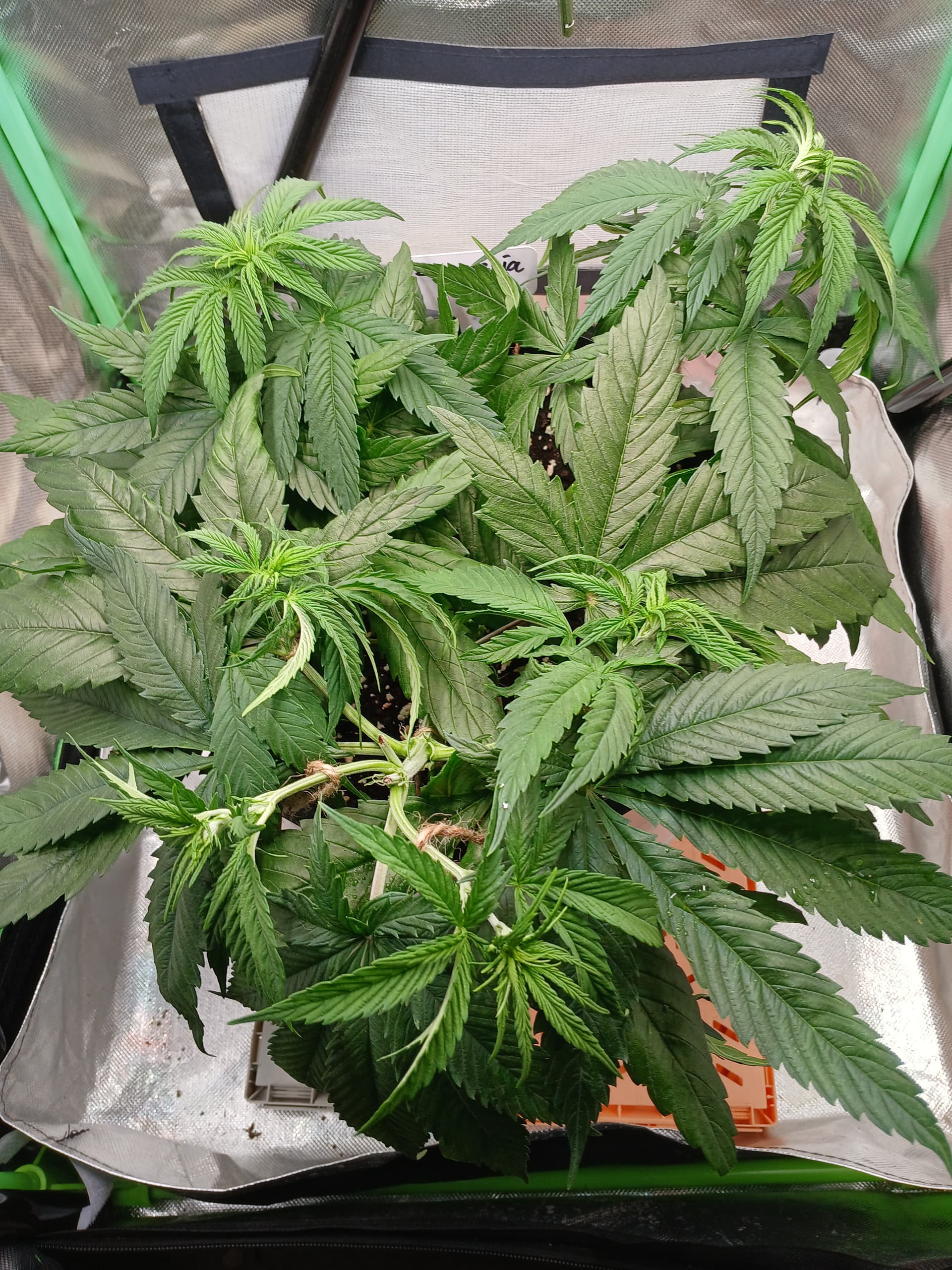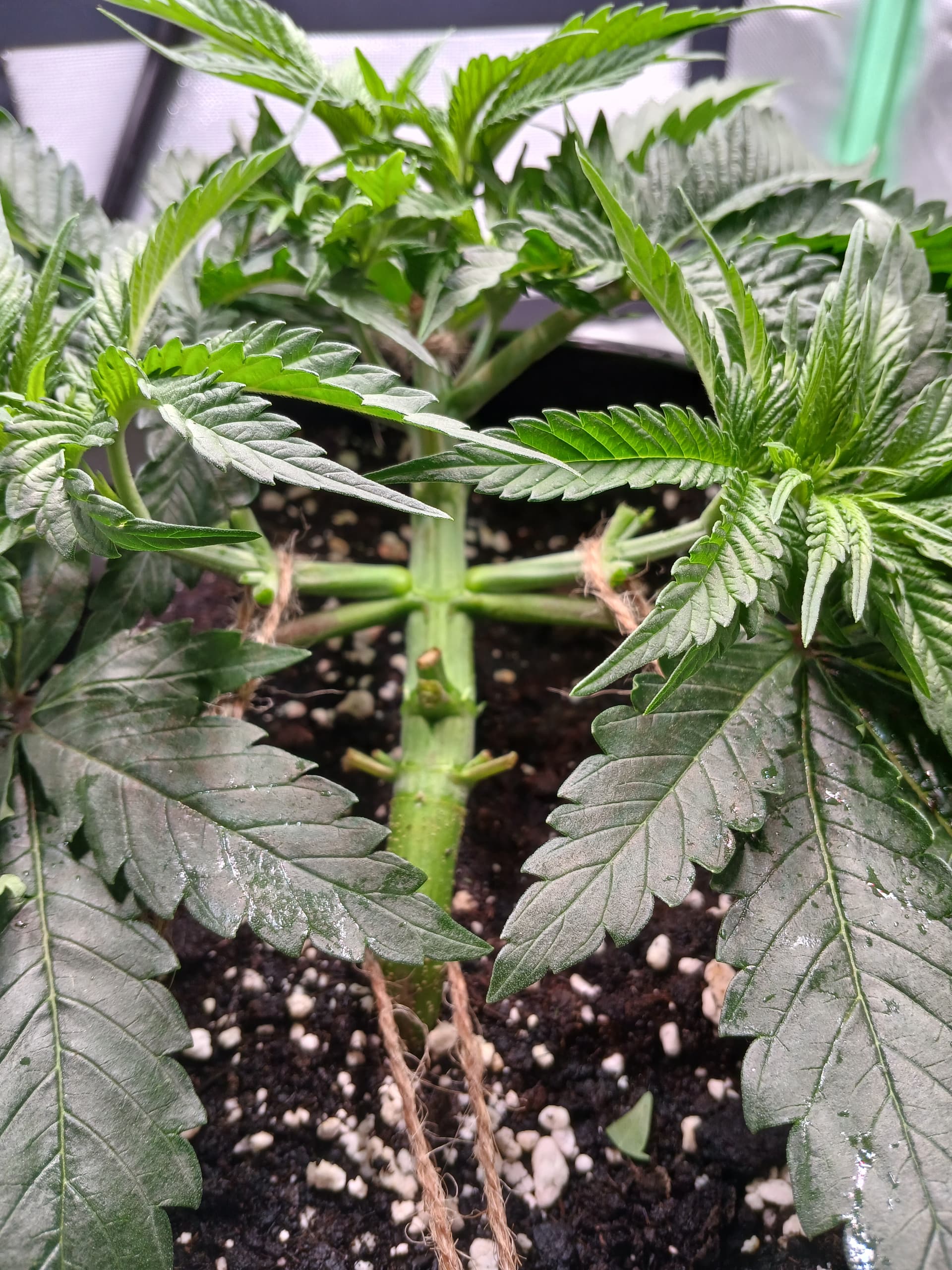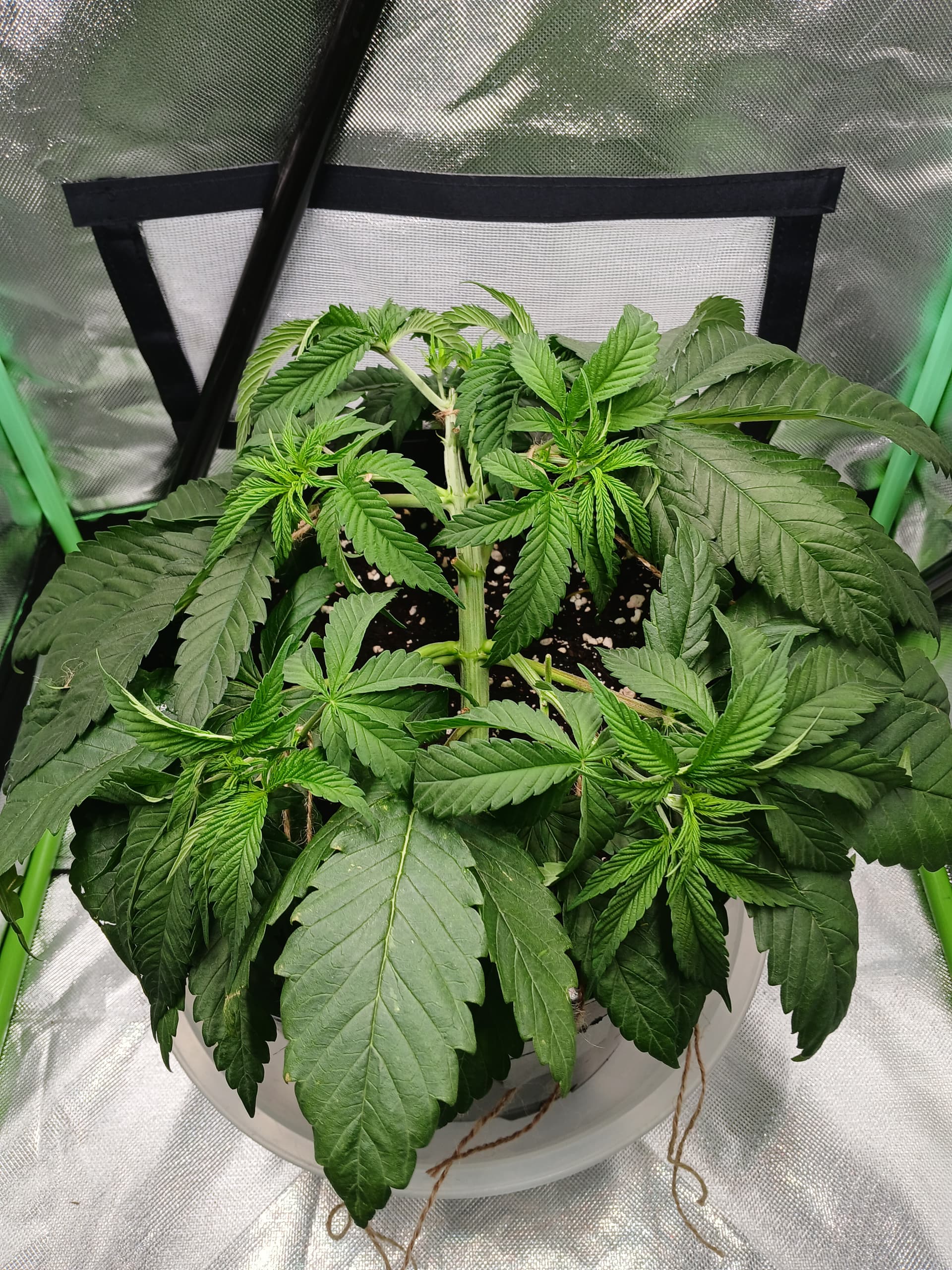 Dann hoffe ich das die Nachzüglerin auch am Haupttrieb toppen kann. Und so dann mit Seitentriebe Training in 3 Wochen endlich auf Blüte gehen kann. Dieser Versatz ist echt grenzwertig für ein Homogenes Wuchsbild.