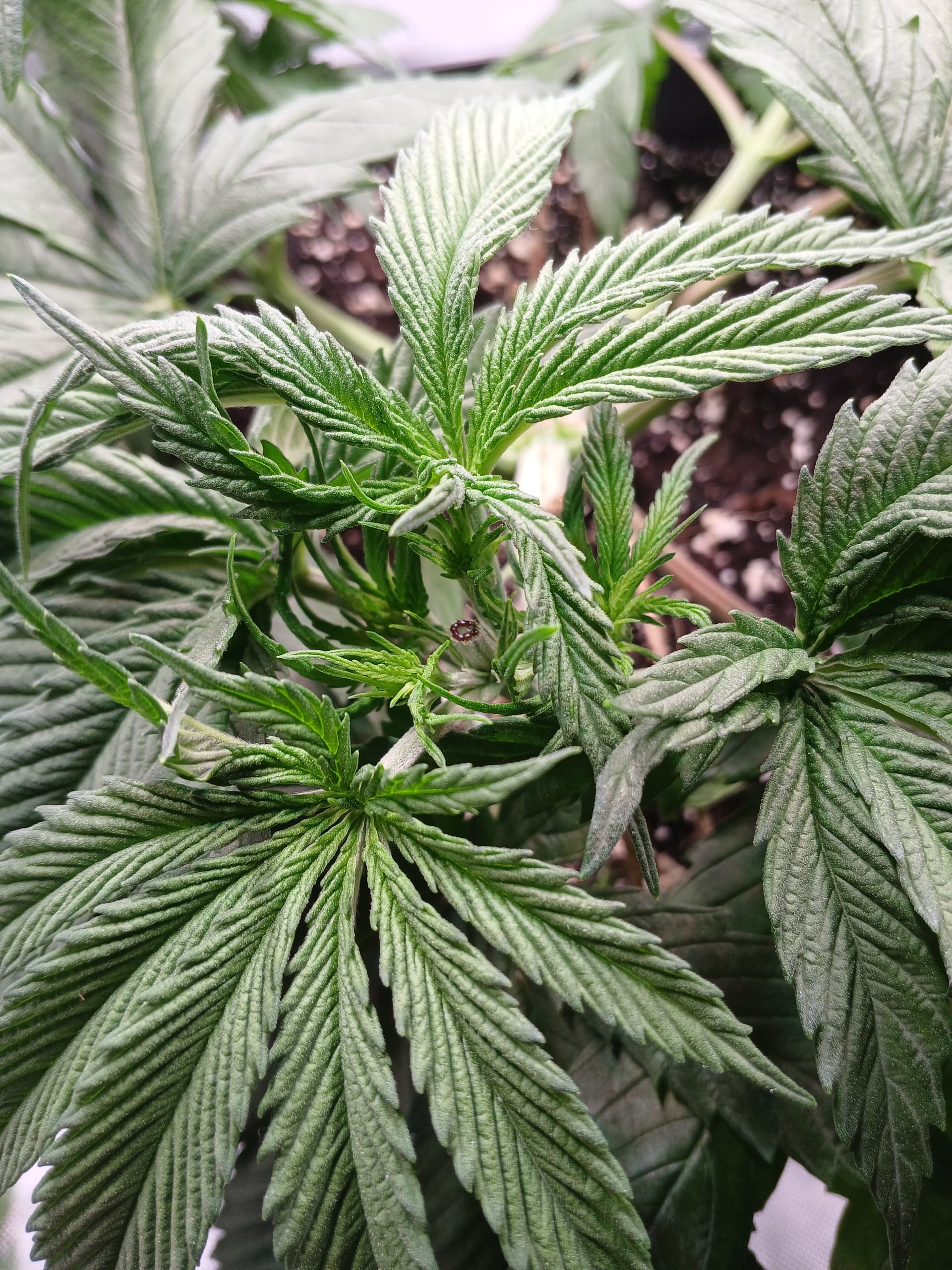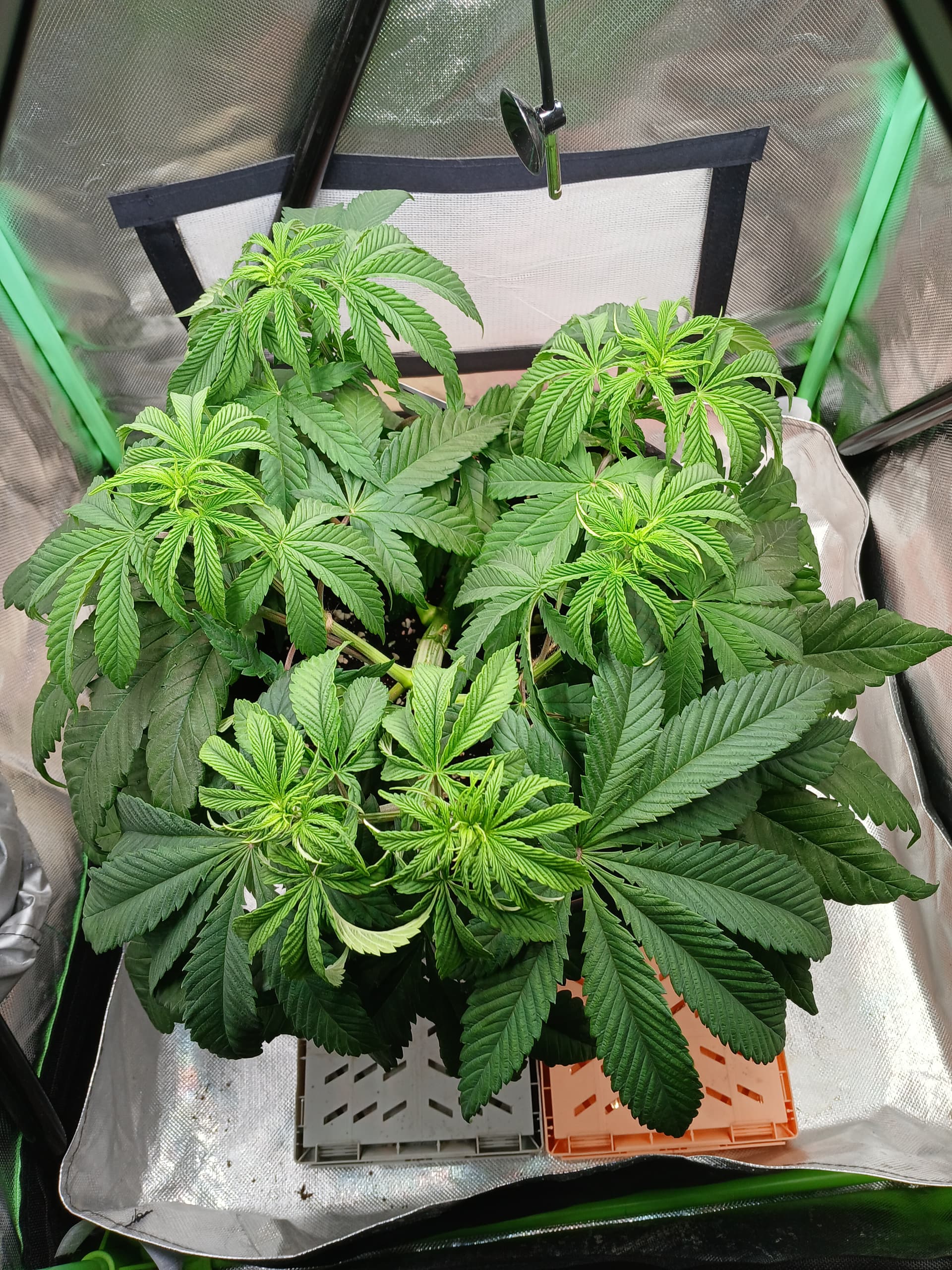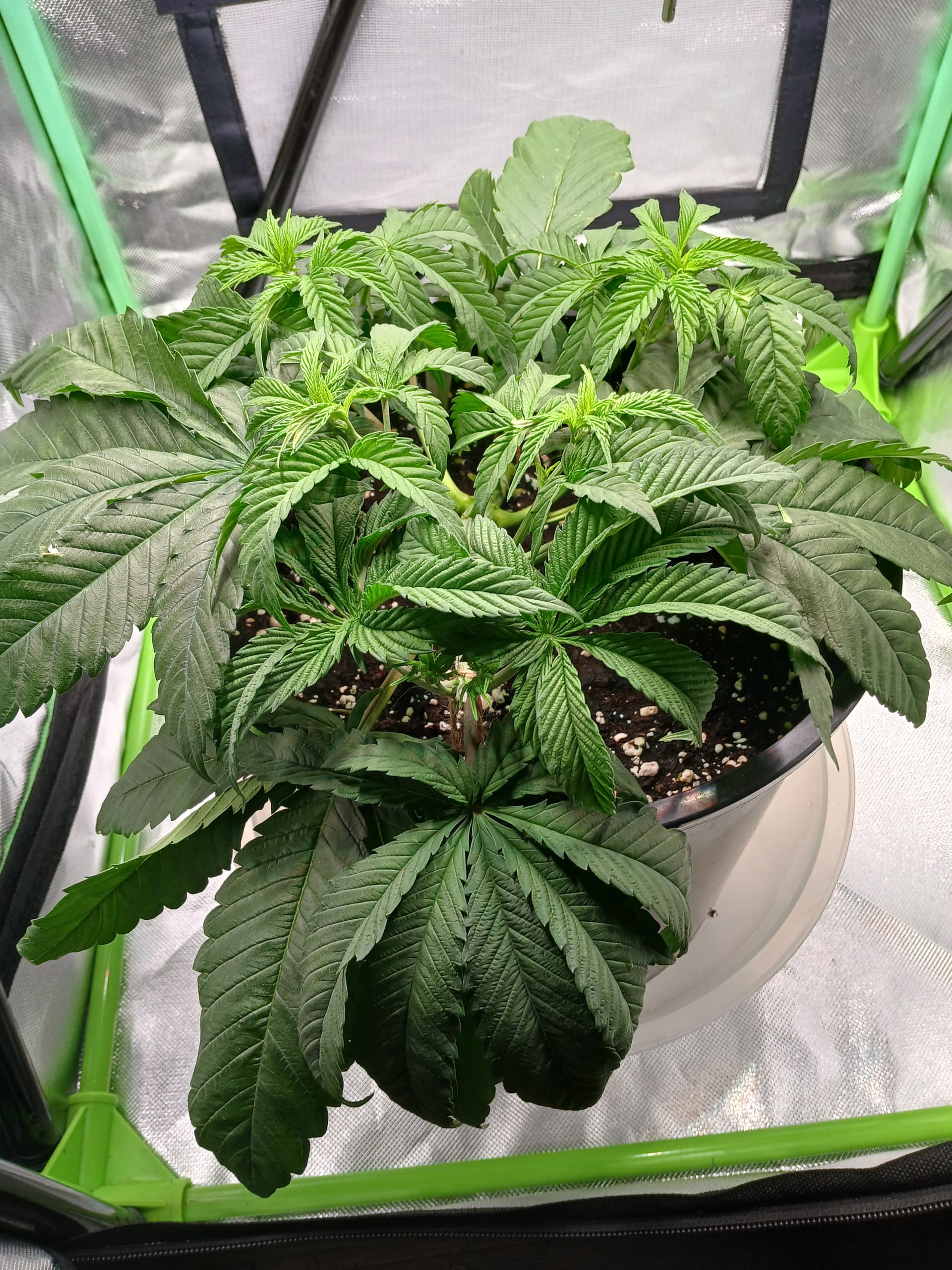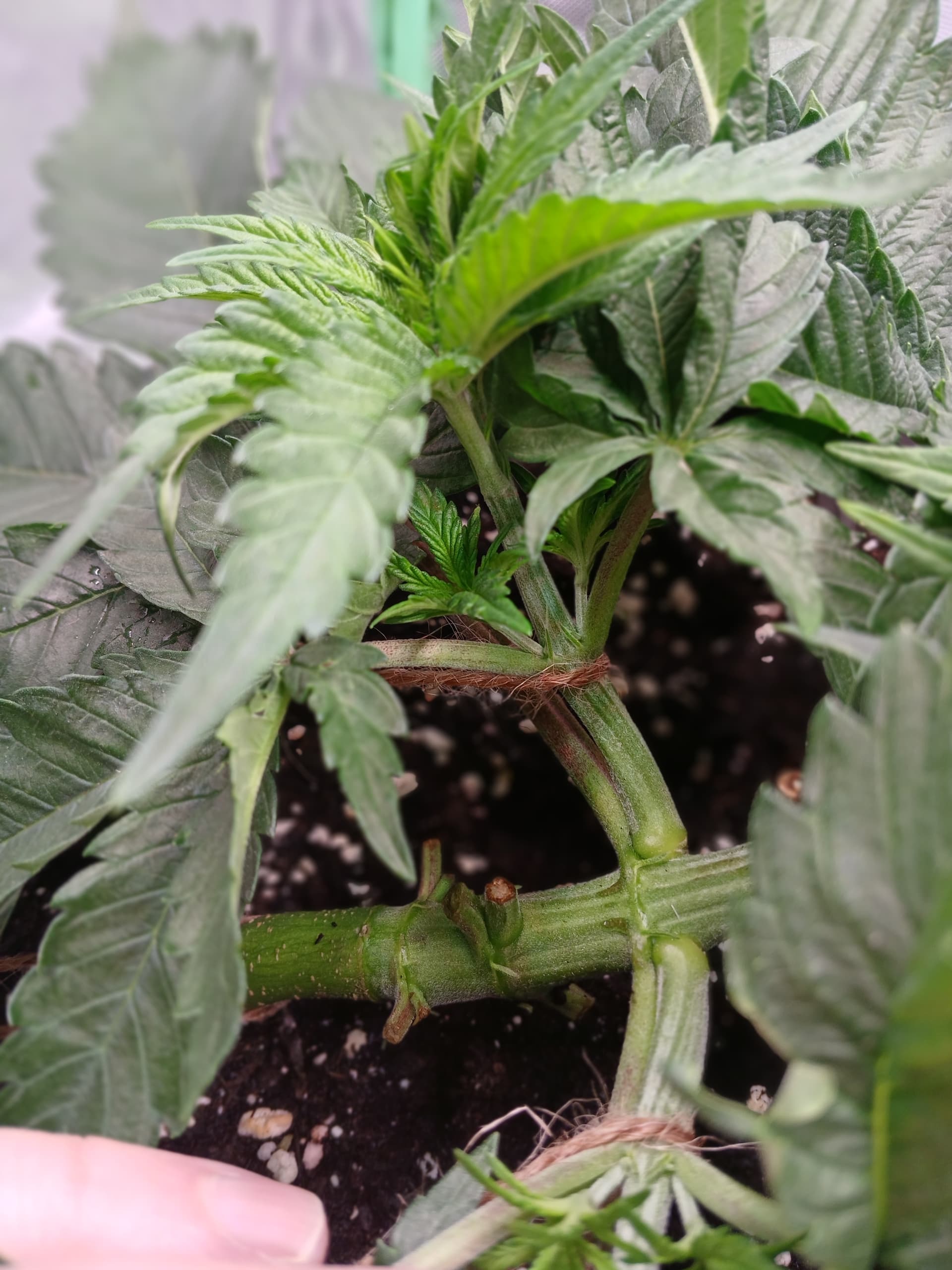 Dann hoffe ich das die Nachzüglerin auch am Haupttrieb toppen kann. Und so dann mit Seitentriebe Training in 3 Wochen endlich auf Blüte gehen kann. Dieser Versatz ist echt grenzwertig für ein Homogenes Wuchsbild.