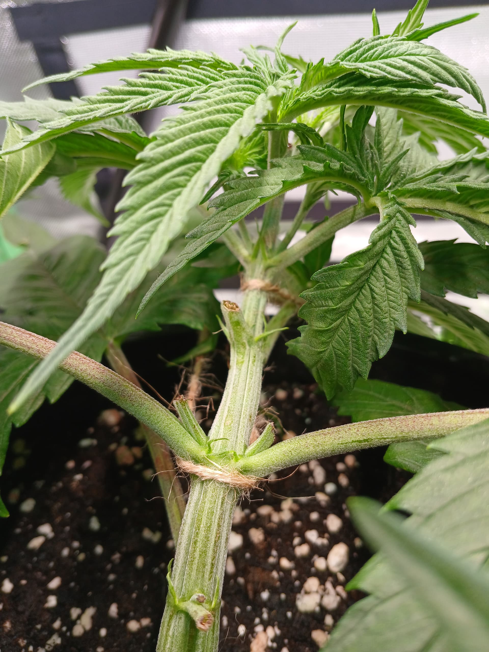 Ich beschränke da mit den wuchs der Pflanze und habe meine zwei ersten Tops die ich mit den Schnüren da hin biege wo ich sie dann haben möchte was den Platz angeht.