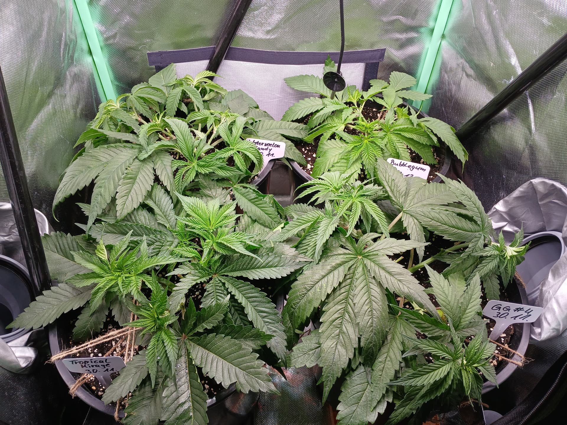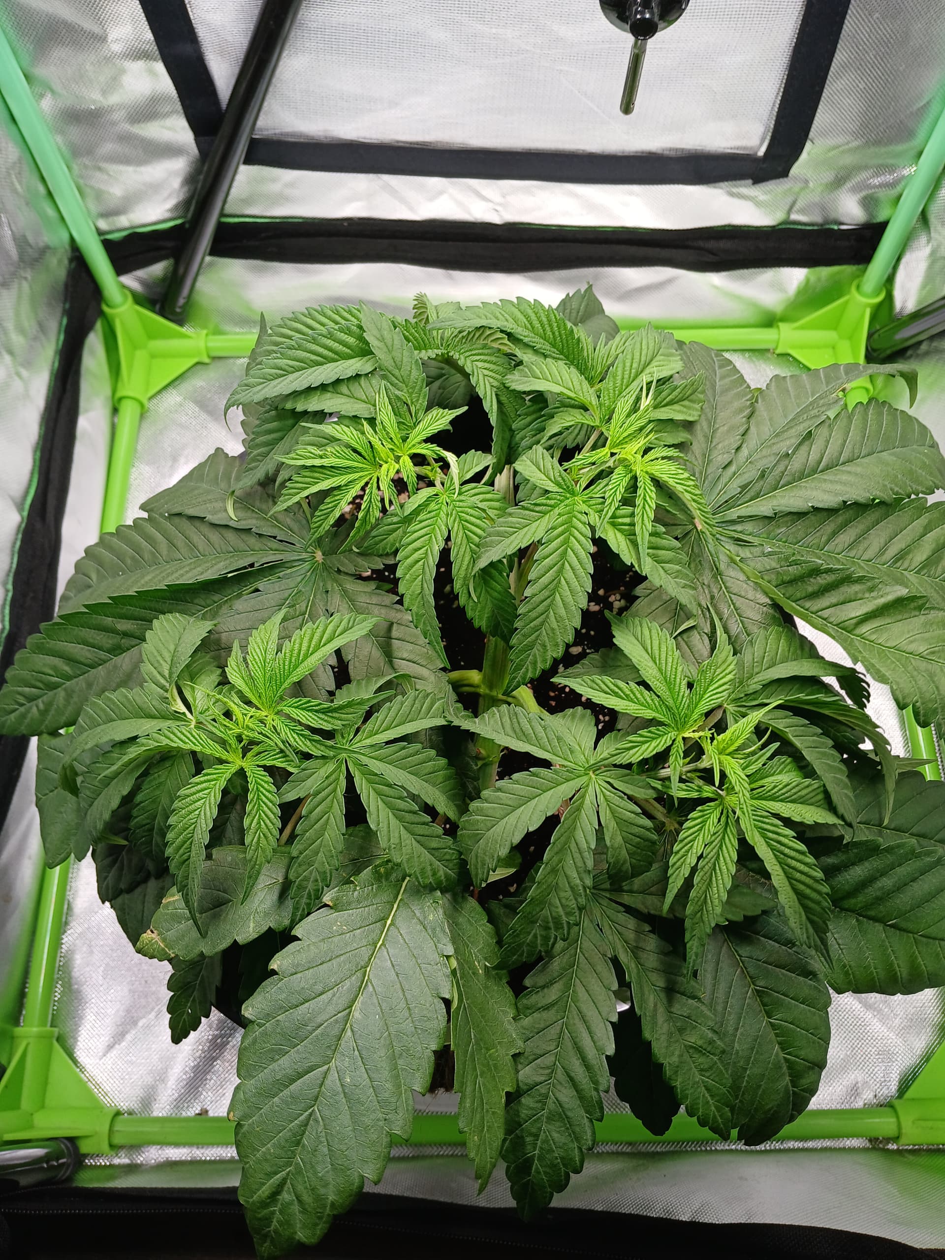 Ok das kann ich bestätigen die fängt jetzt erst richtig an los zu legen. Aber doe hat eben auch noch zusätzlich gut 8 Tage versatz weil ich neu andetzen musste. Und die Zeit spürt man jetzt deutlich. Die anderen drei werden nächste woche am Haupttrieb getopt. Da ist die Bubblegum noch weit von entfernt.