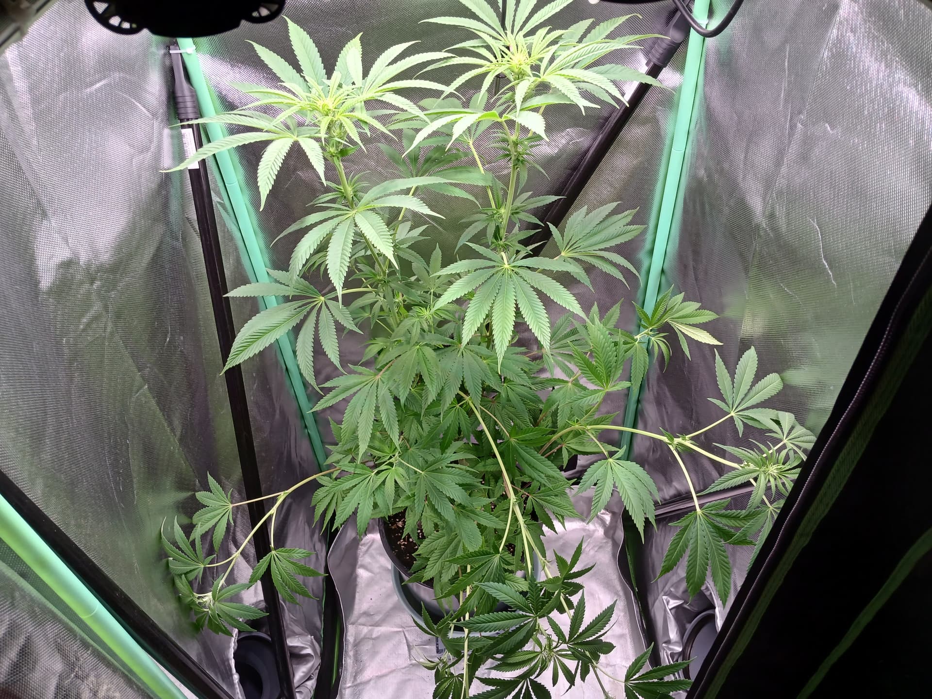 Ich weiß nicht ob ich schneiden würde… Vielleicht doch abstützen per Bambus, Gummibänder, Scrognetz, o.ä.? Was mir jedoch auffällt, ich sehe keinen Umluftventi auf deinen Fotos. Arbeitest du nur mit der Abluft? Und könnte es daran liegen, dass die Lady so zart gewachsen ist?