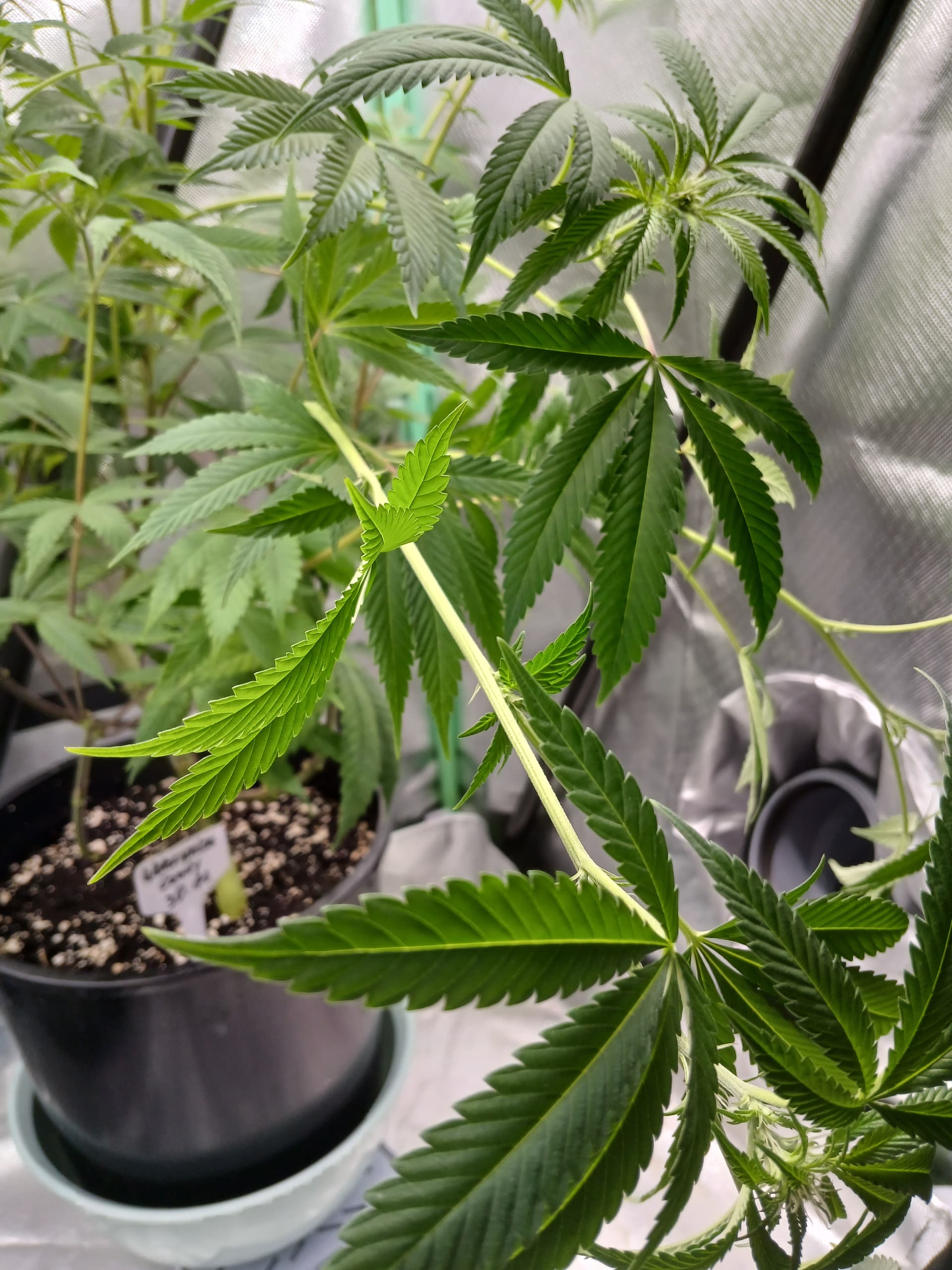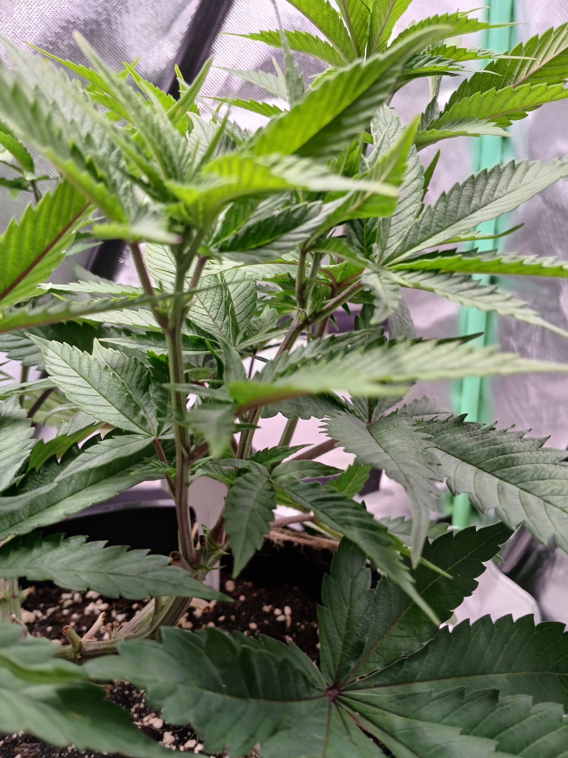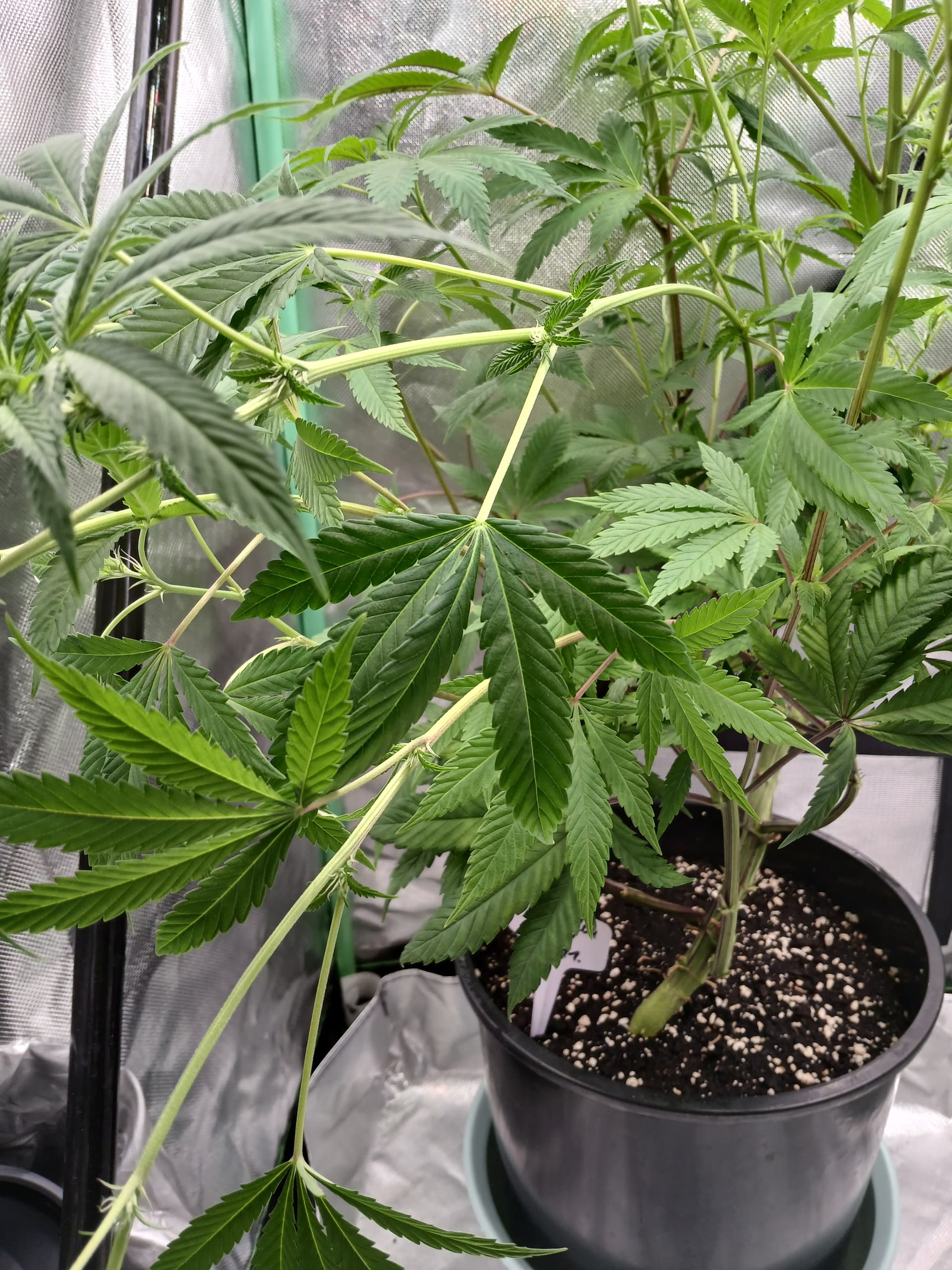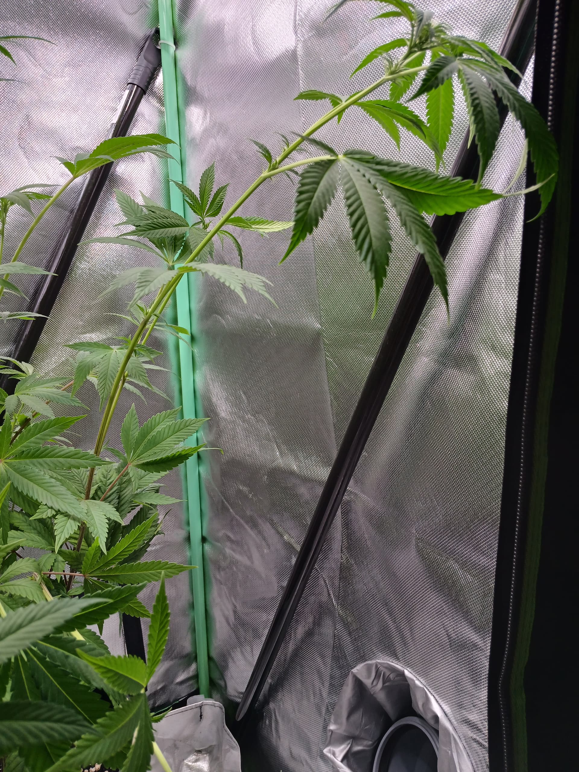 Hier kann man gänz klar sehen das Seiten Trieb Toppen ist nicht für die Sorte geeignet. Viel zu feingliedrig die folgenden Triege mit viel zu großen internodien.