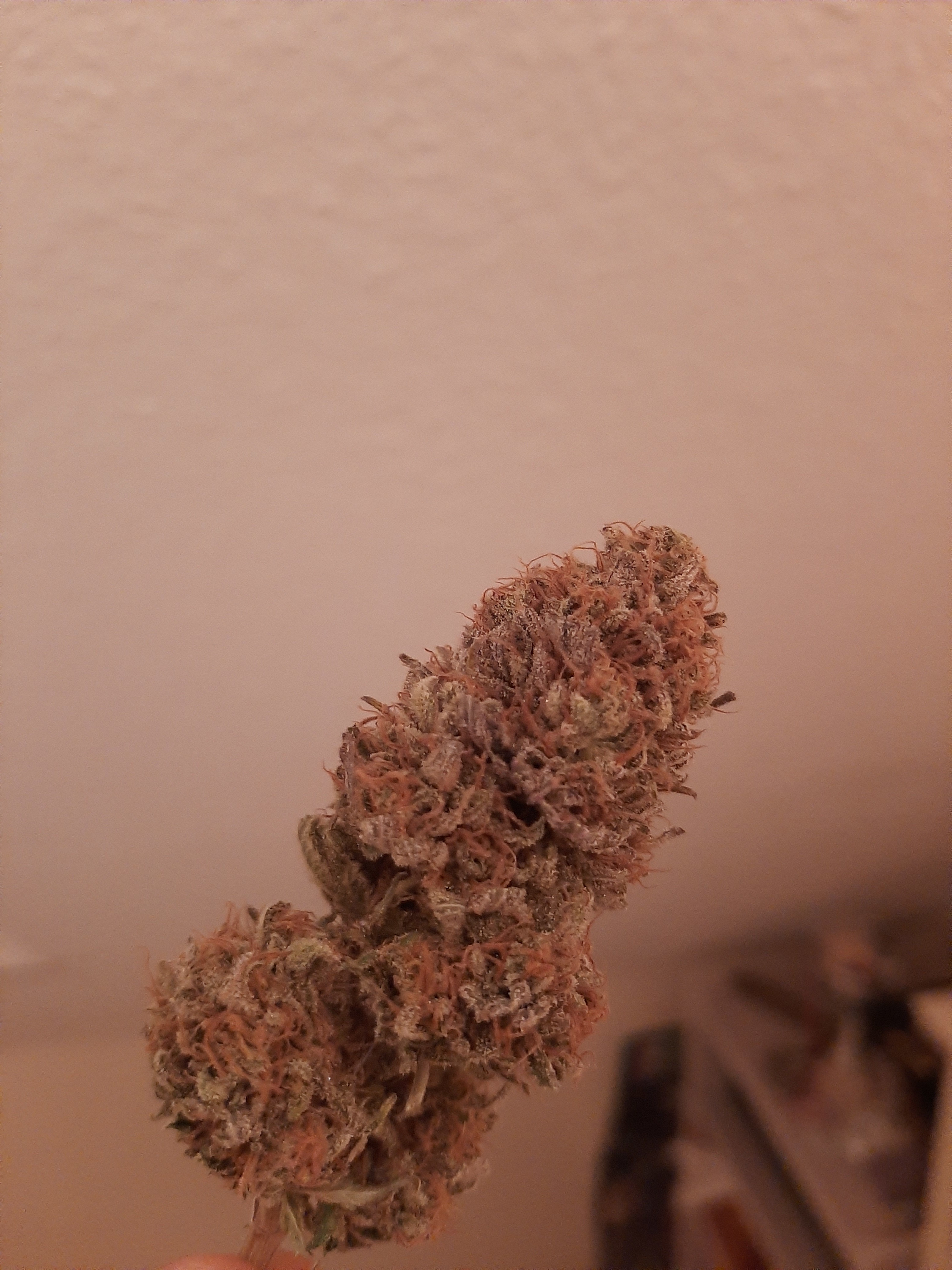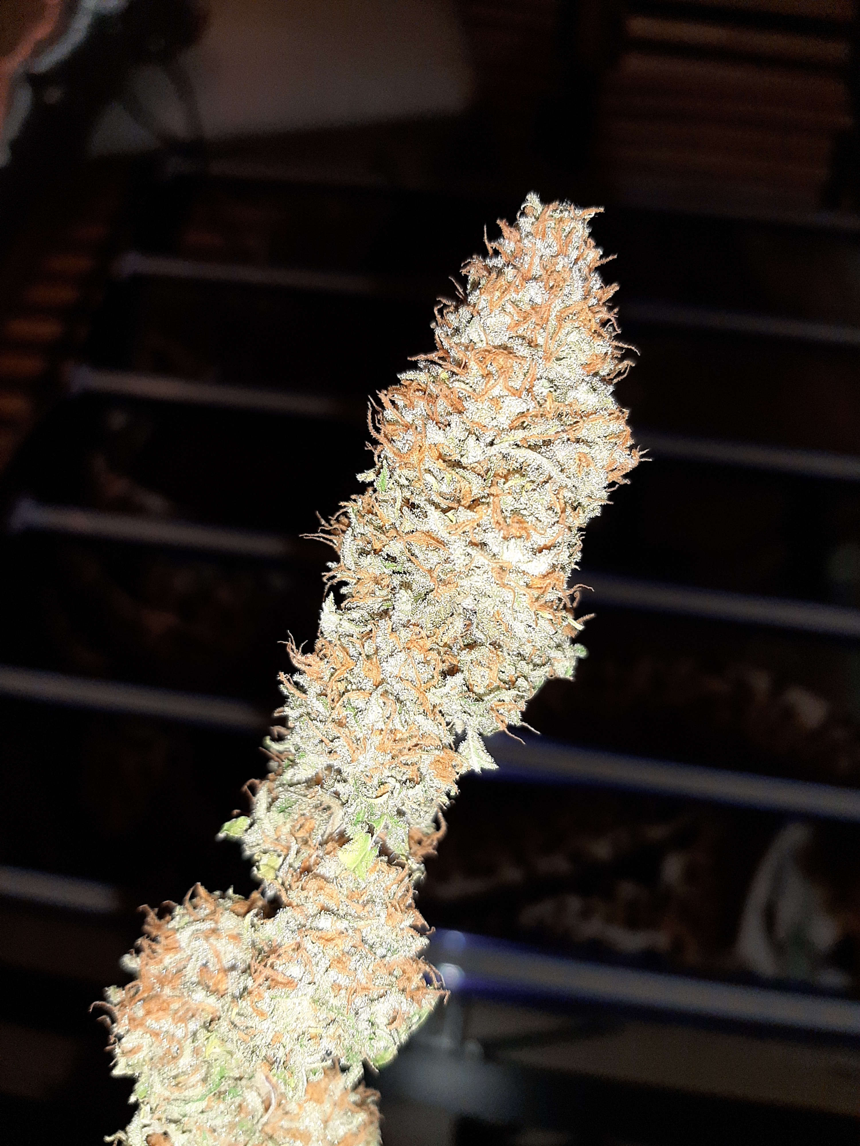 Hier nochmal eins mit Blitz weil meine Kamera einfach fürn arxxx ist und nichtmal annähernd der Realität gleich kommt. Somit sieht man kaum wie viele Trichome die Buds wirklich haben.