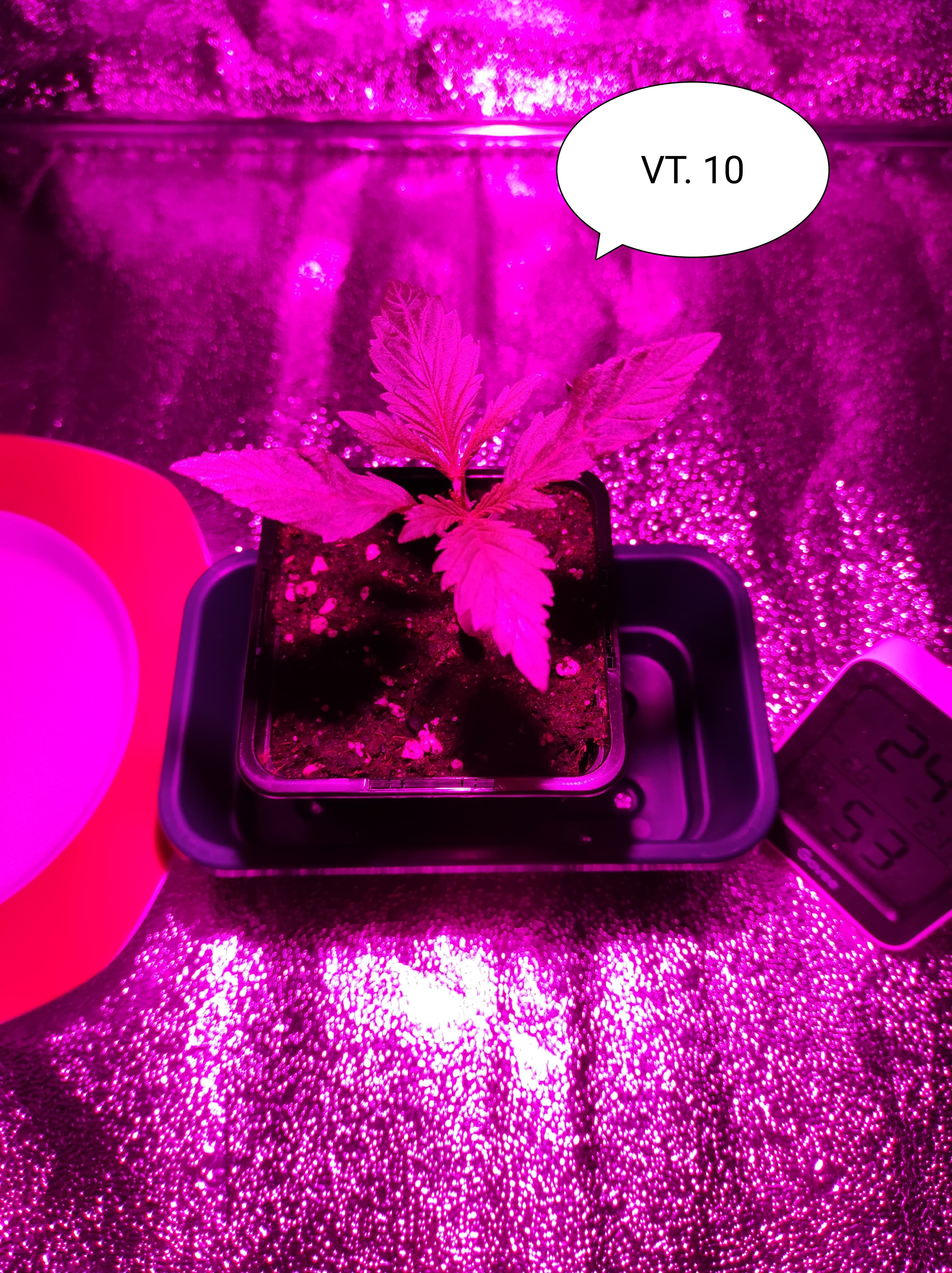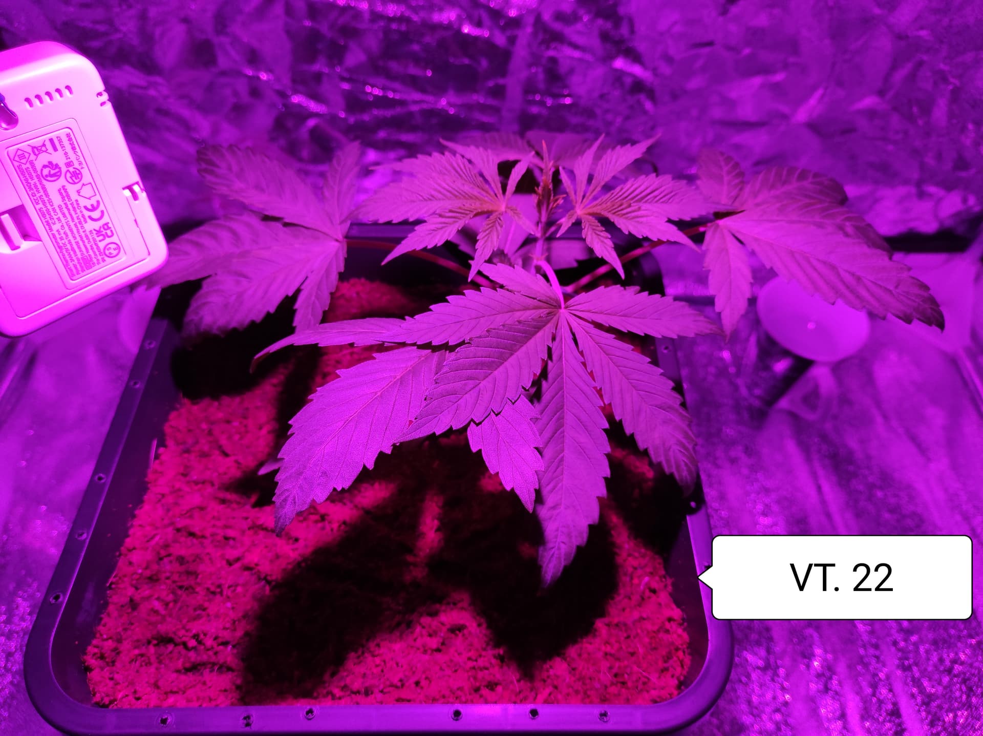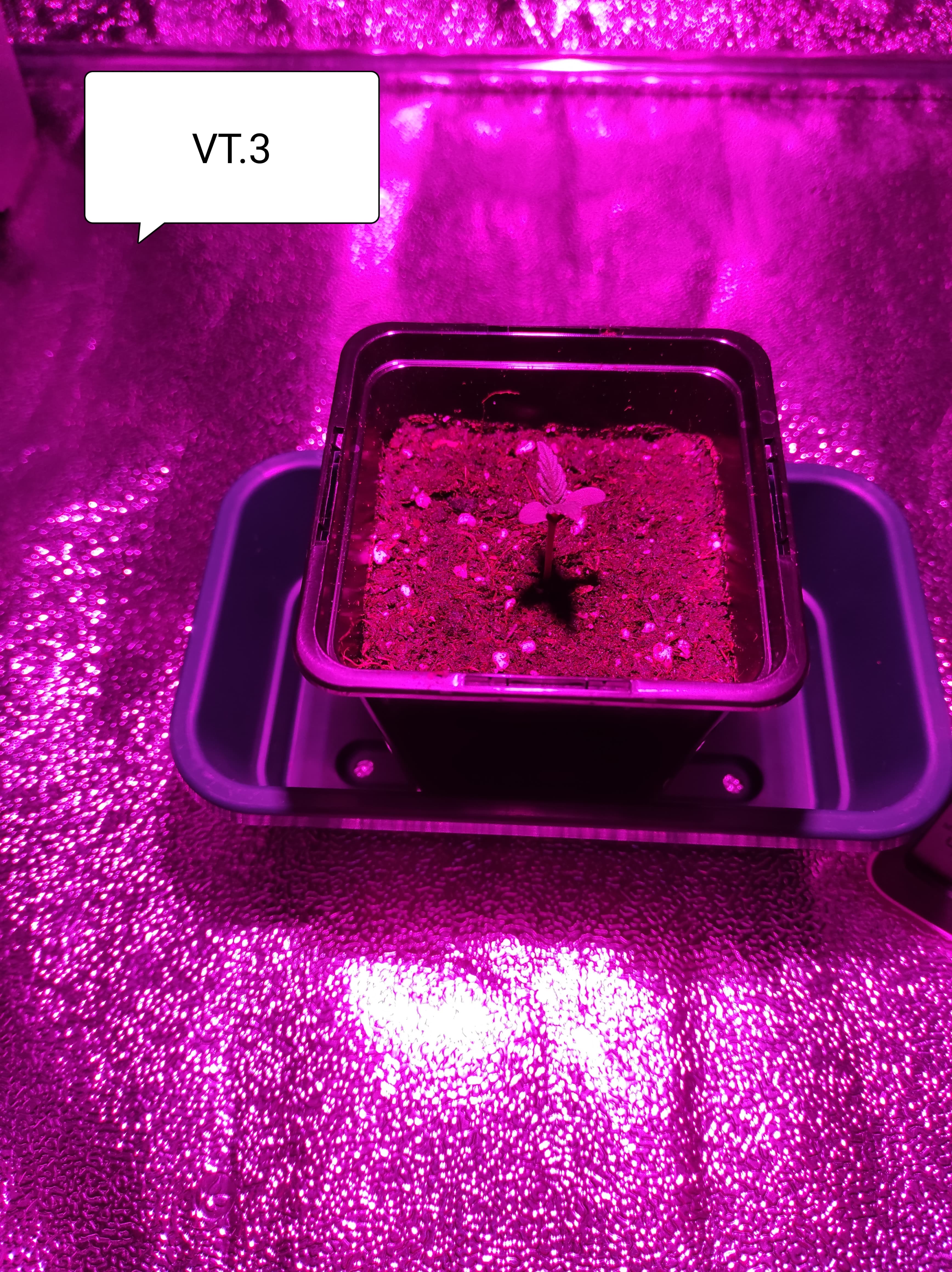 Ich habe wie immer in Steinwolle 4x4 gekeimt und an VT 2. dann Umgetopft auf 0.5L BB Lightmix und ab VT 3. dann begonnen Fotos zu machen.