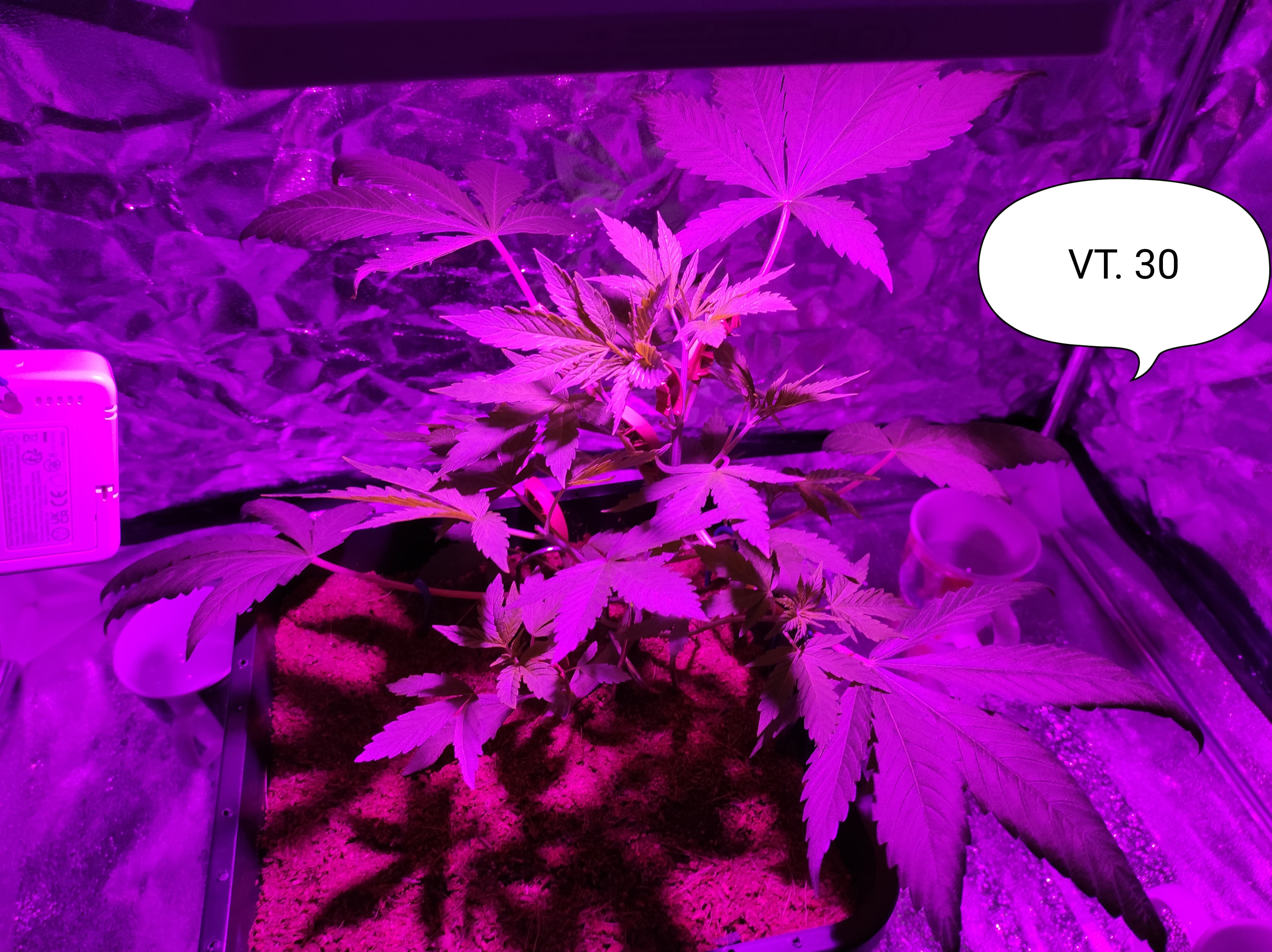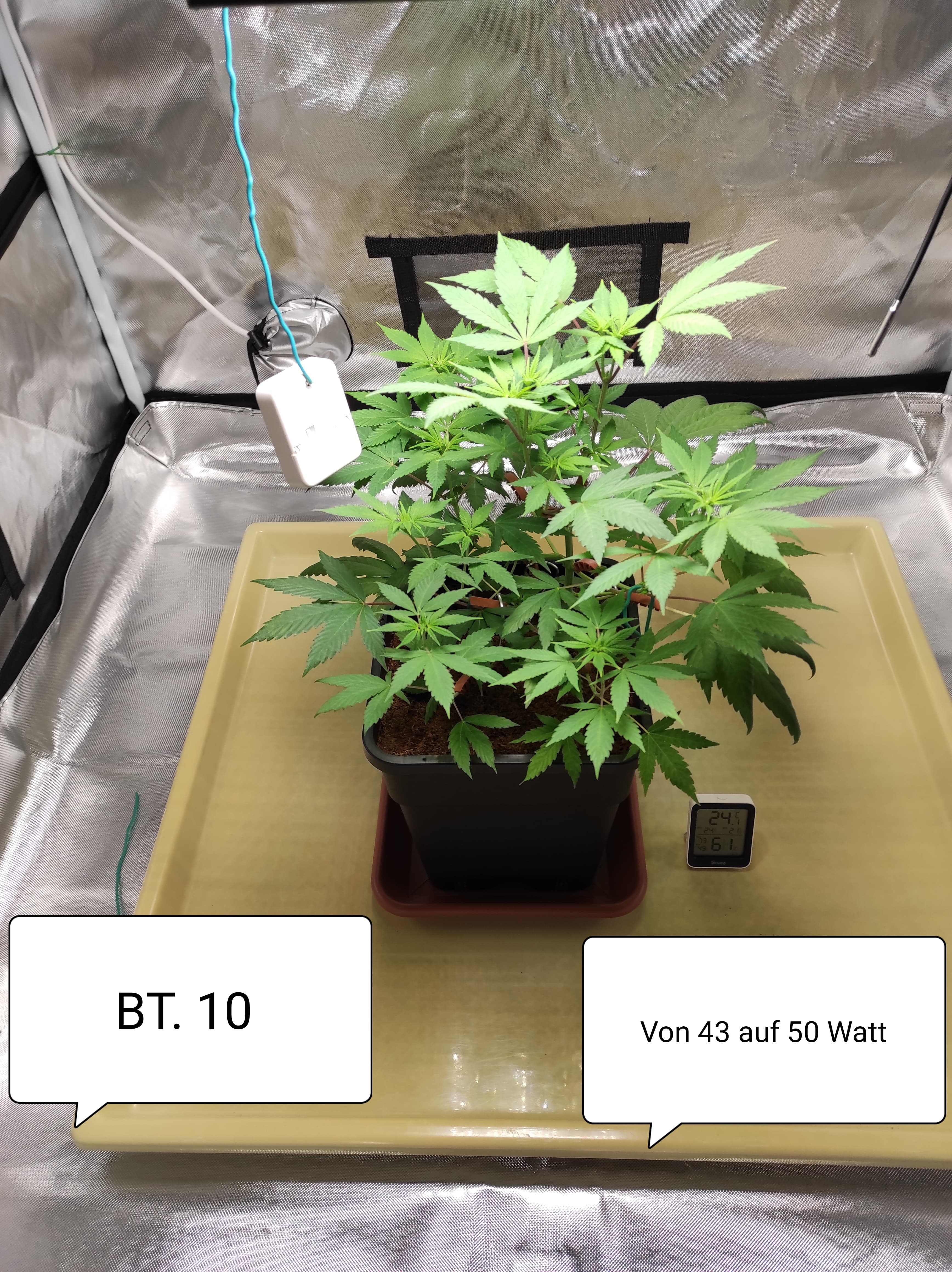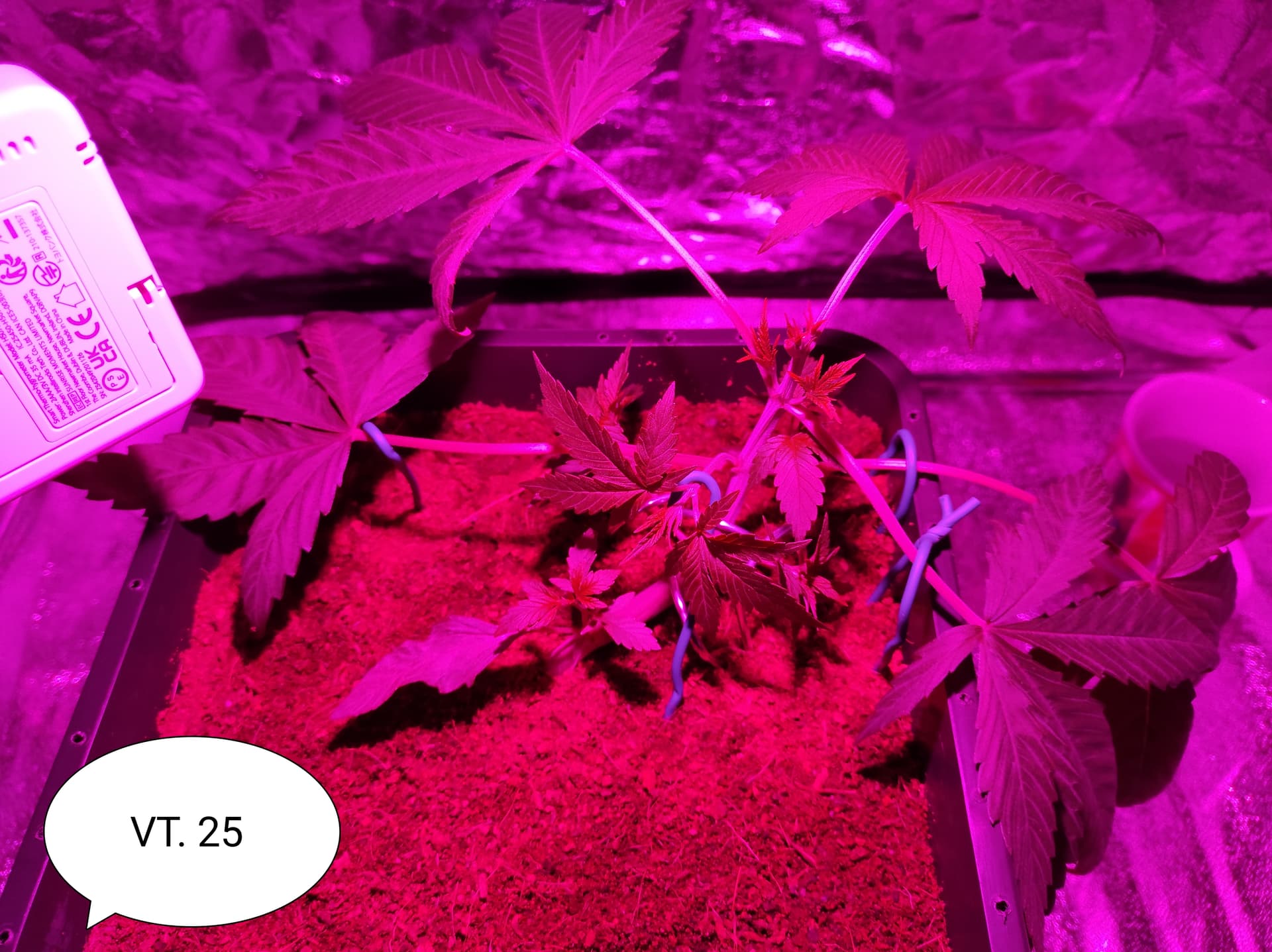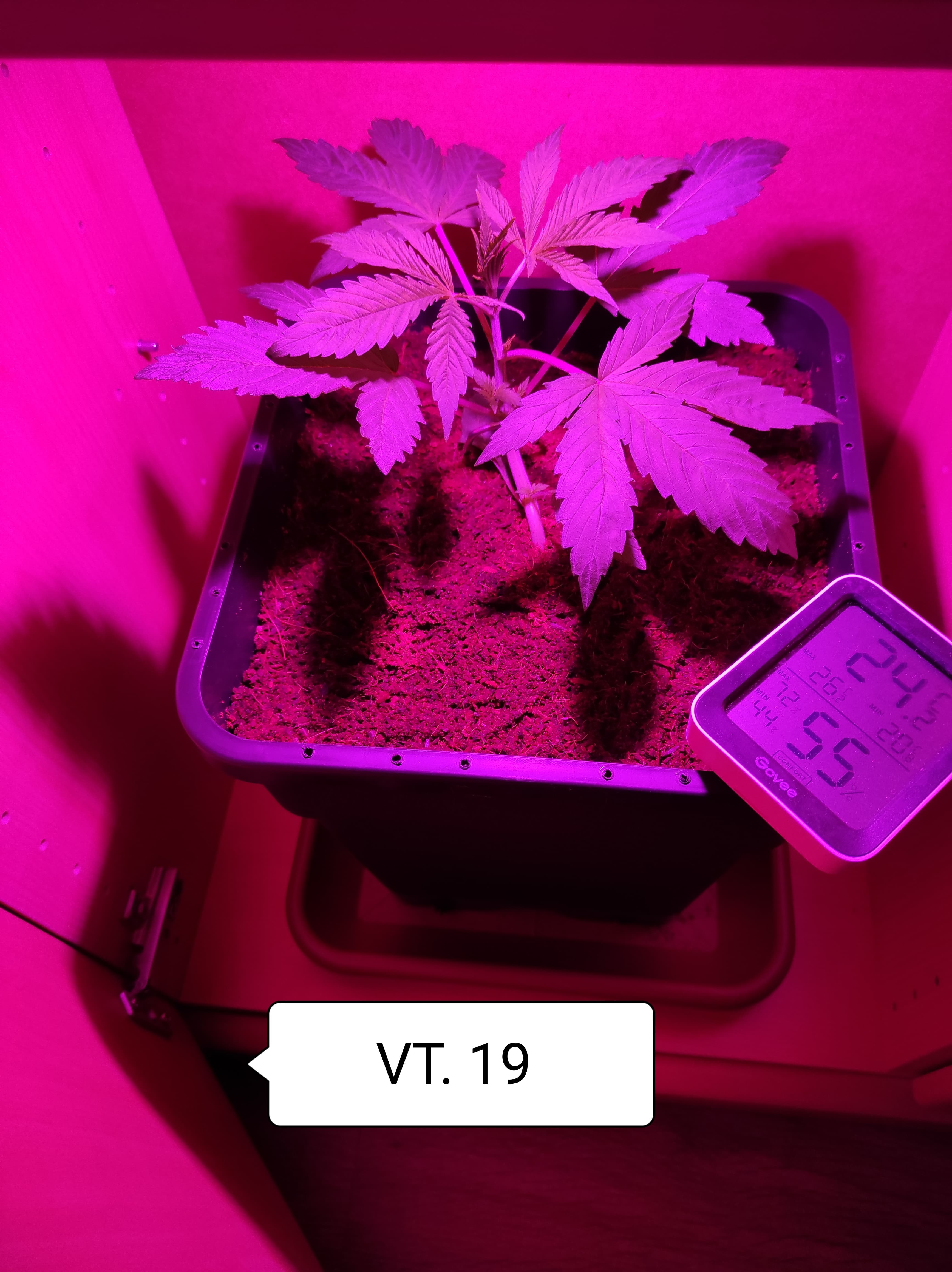 Ich habe wie immer in Steinwolle 4x4 gekeimt und an VT 2. dann Umgetopft auf 0.5L BB Lightmix und ab VT 3. dann begonnen Fotos zu machen.