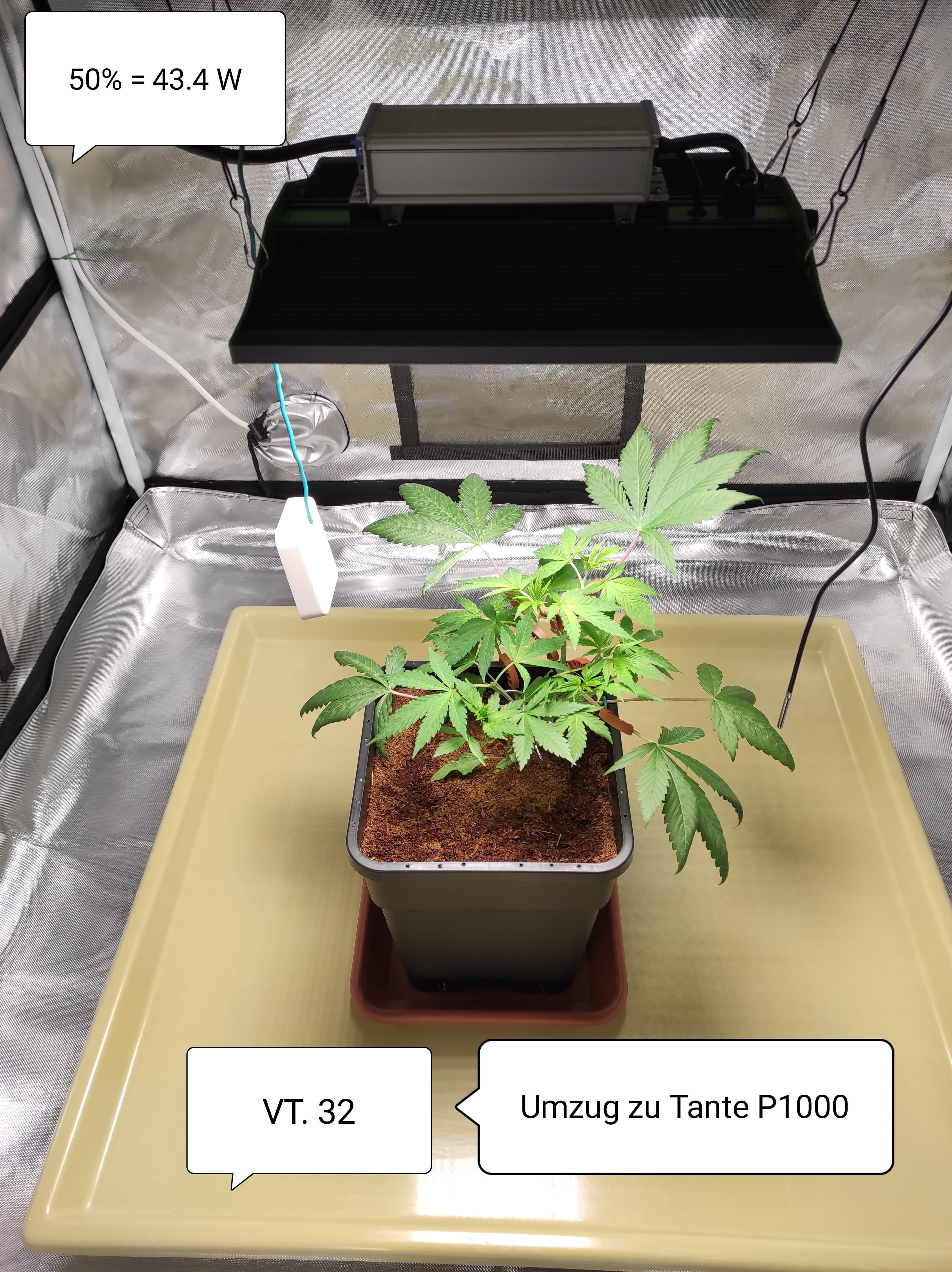 Die Lampenleistung erhöhe ich Schritt für Schritt so wie meine Pflanze es aus meiner Sicht benötigt.