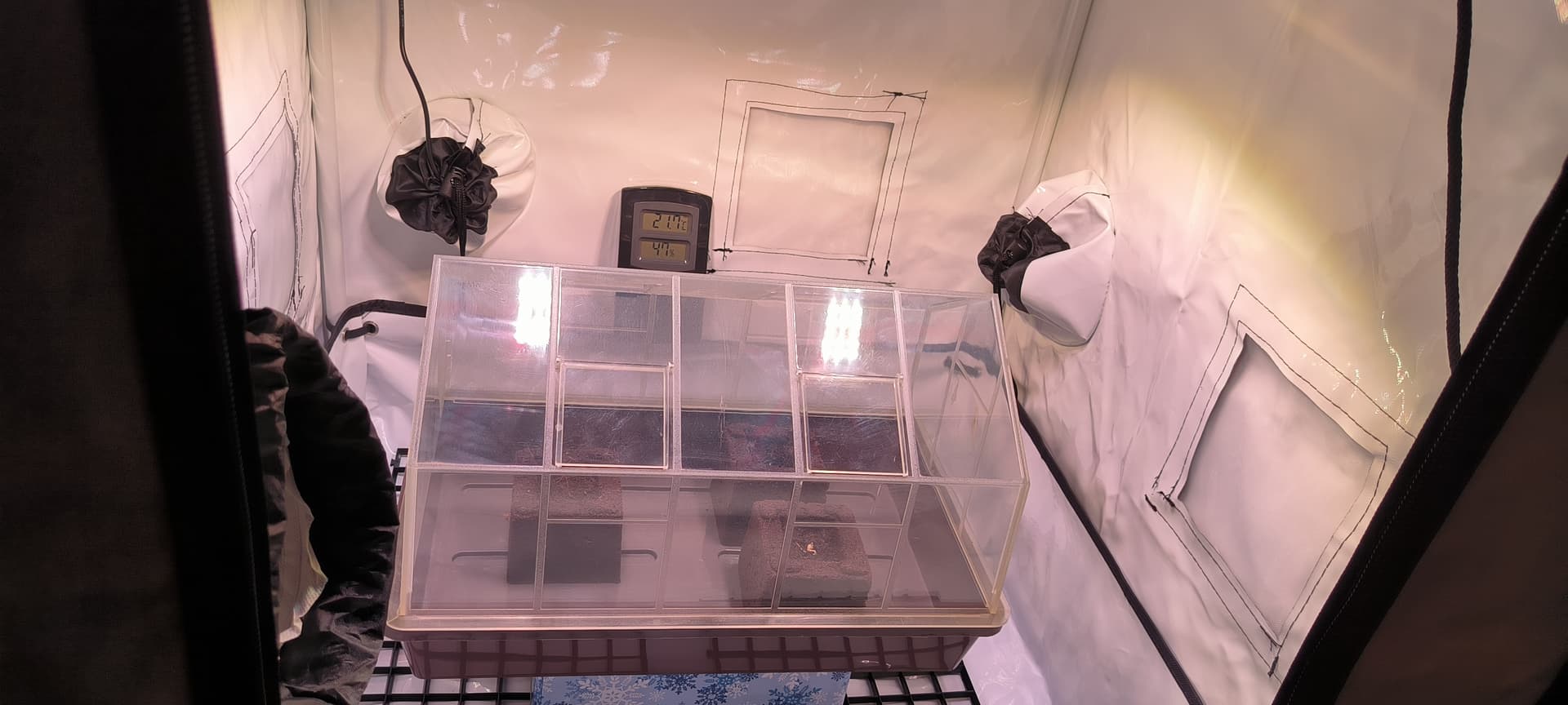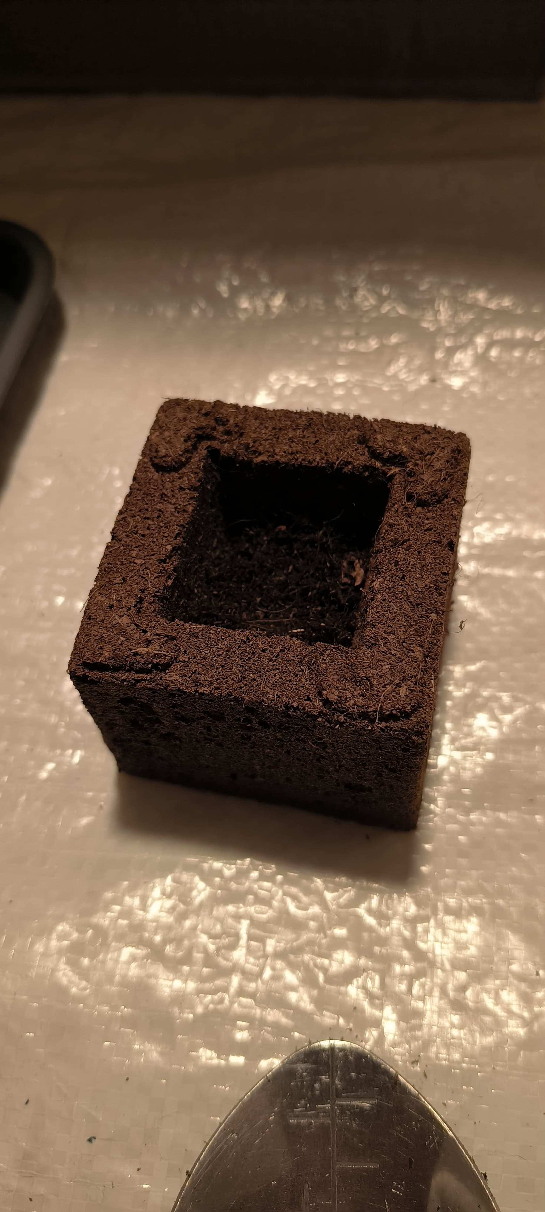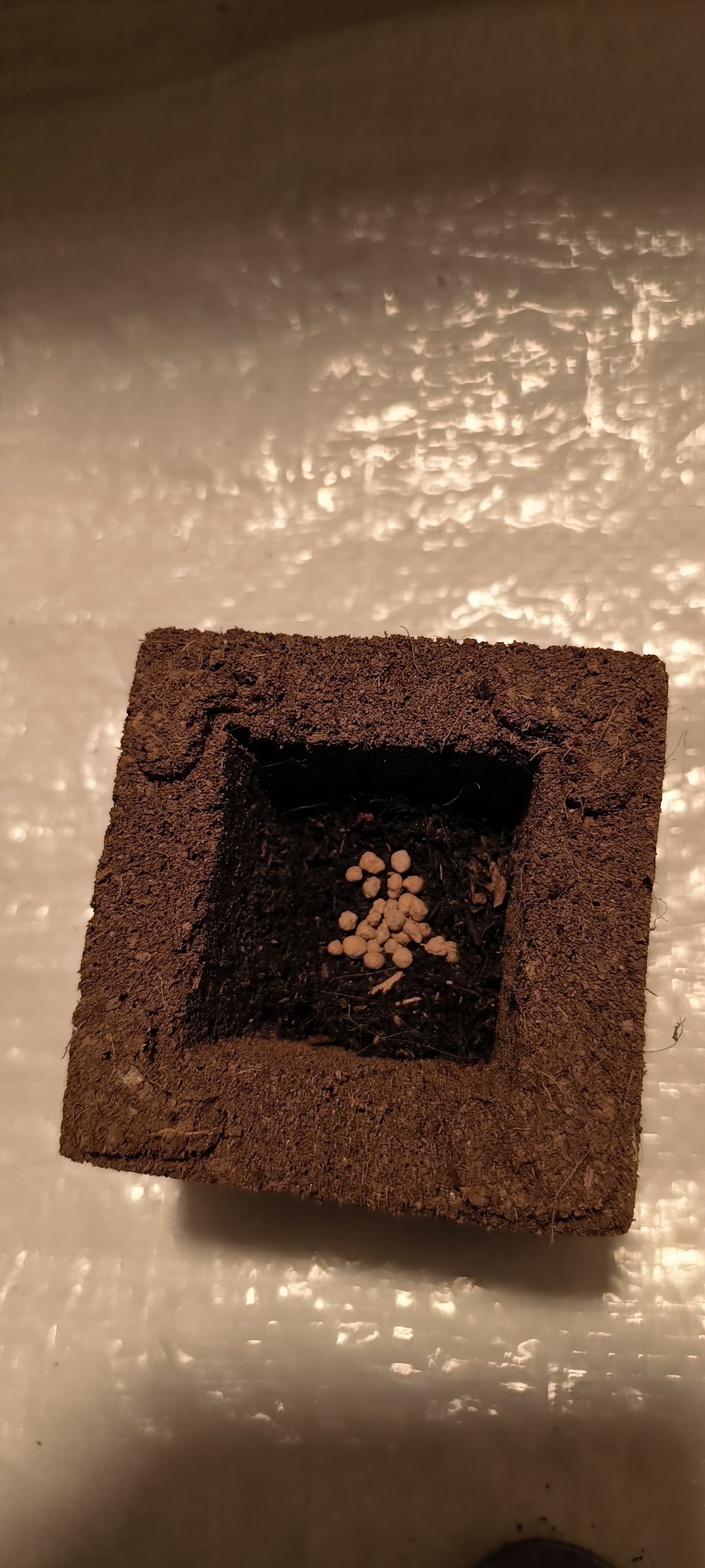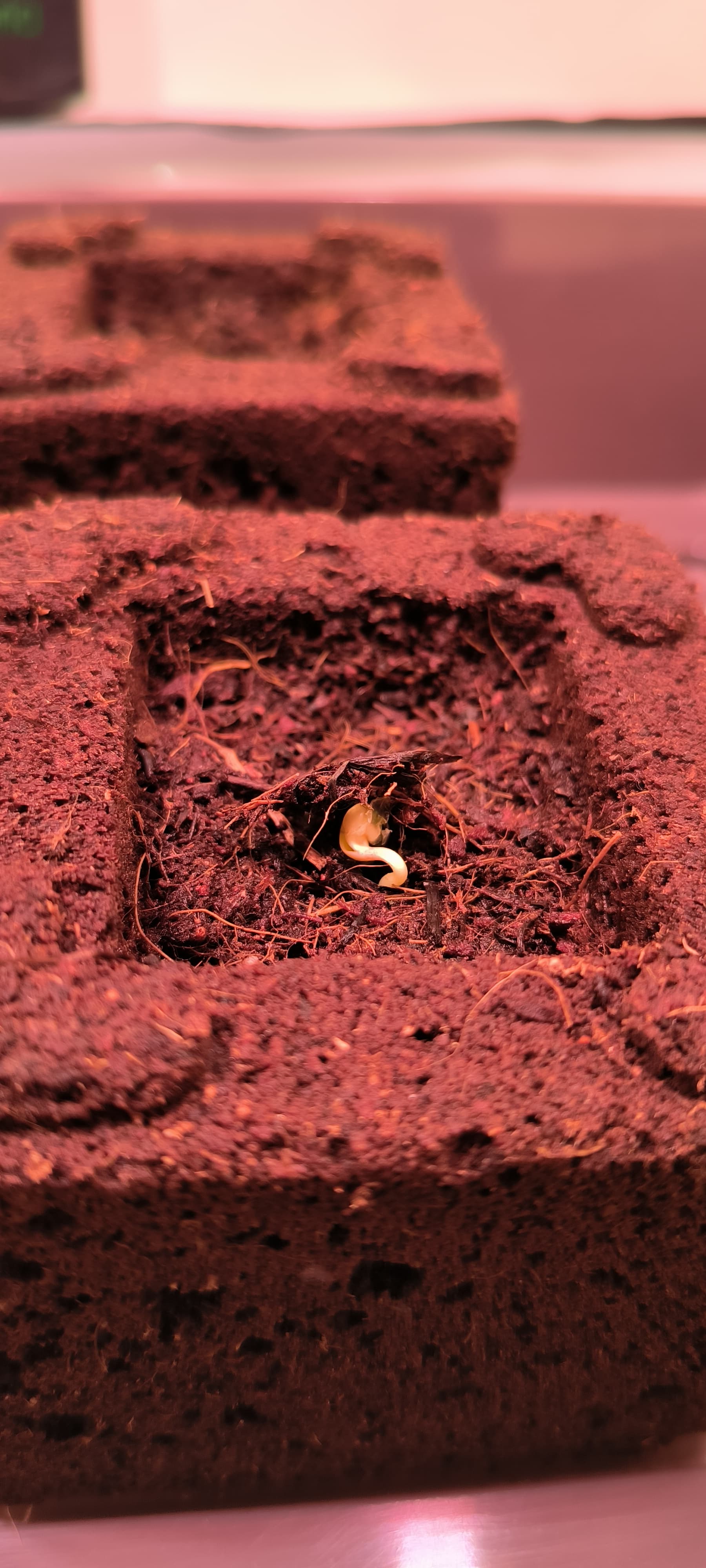 Die noch ungekeimte Purple Haze hab ich auch schon in einen Eazy Block. Hoffentlich geht die Nuss noch auf …
