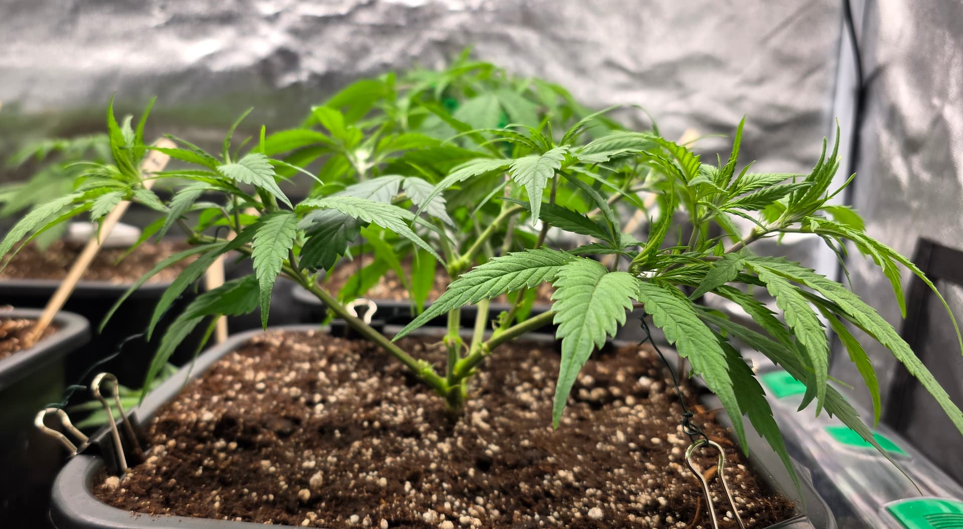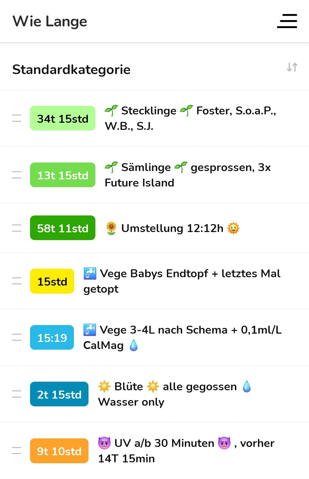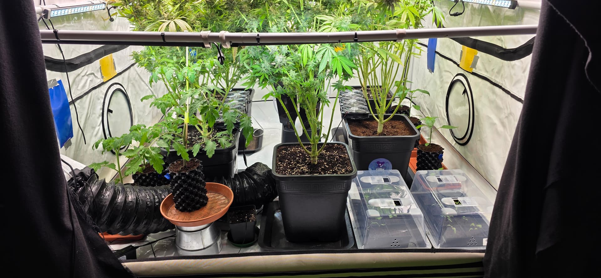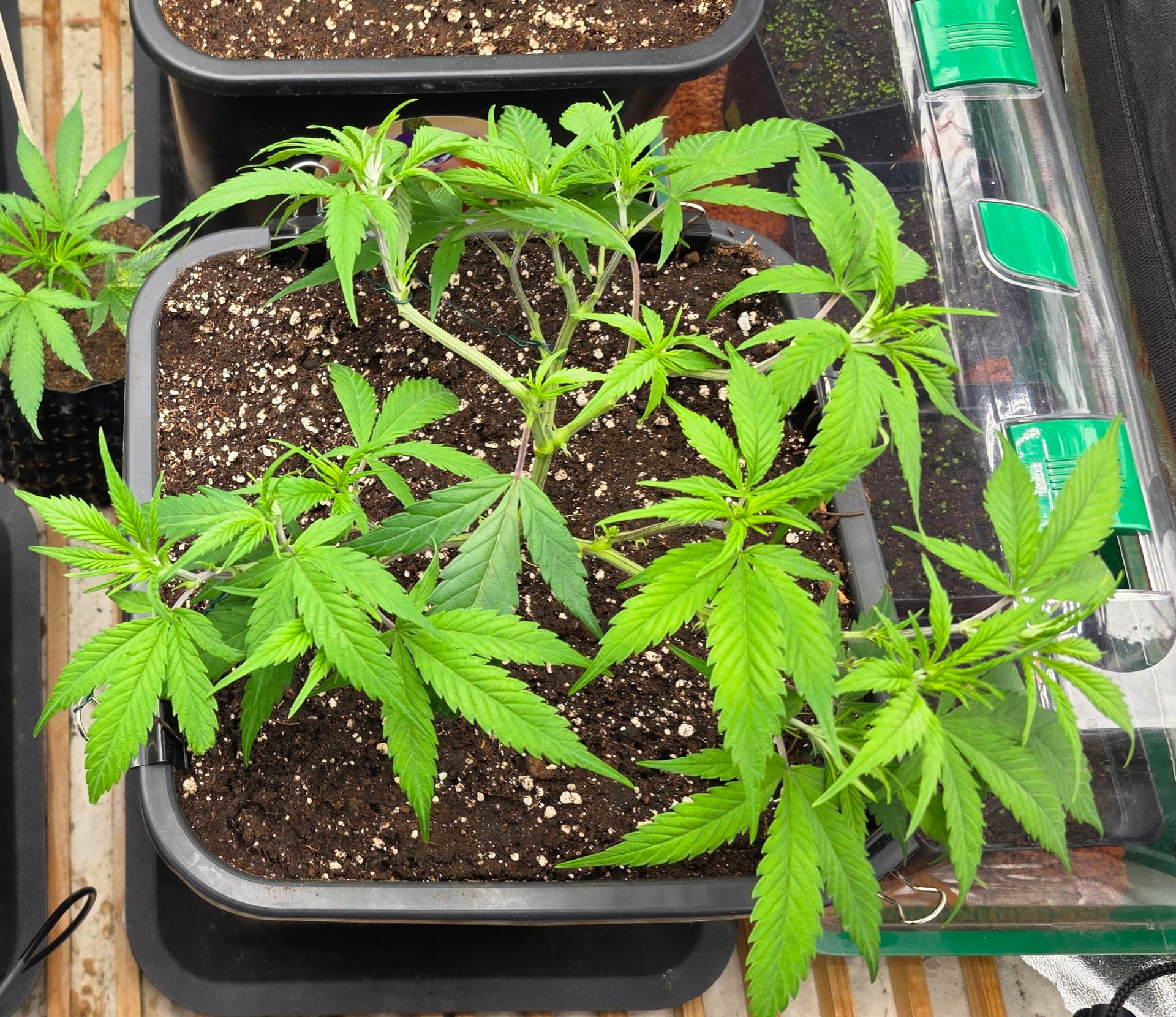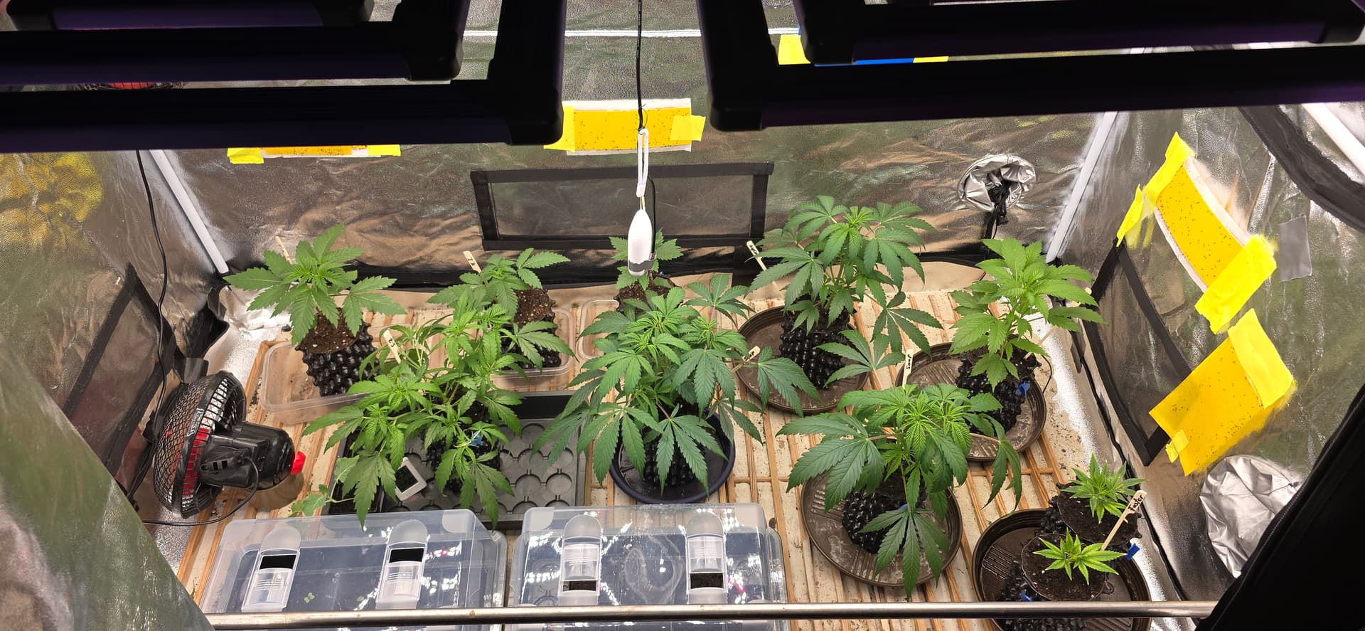 Der Nachwuchs, recht durstig - bekommt heute abend, wird demnĂ€chst umgetopf in endpötte, zum letzten mal getoppt, und dann in 10-14 Tagen in BlĂŒte geschickt, sobald oben frei geworden ist.
