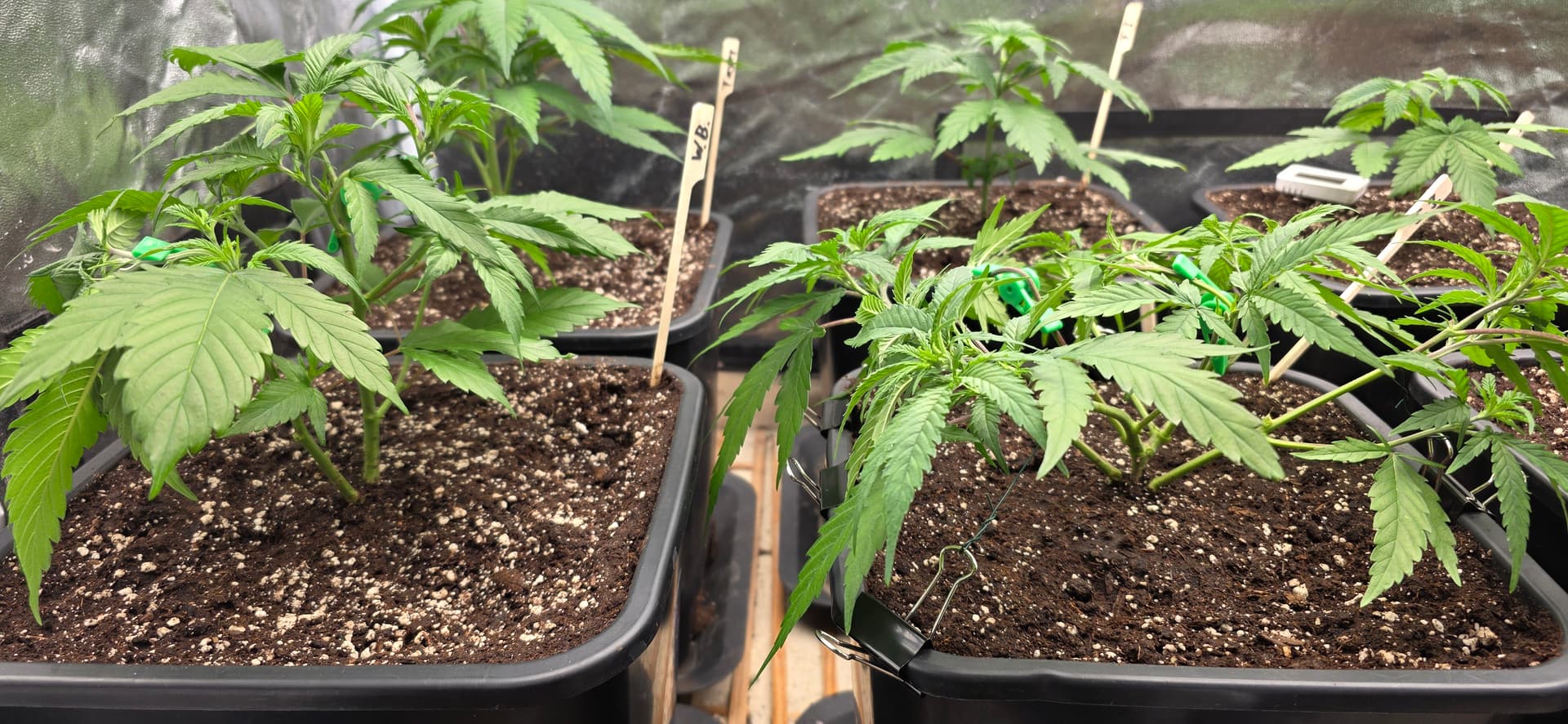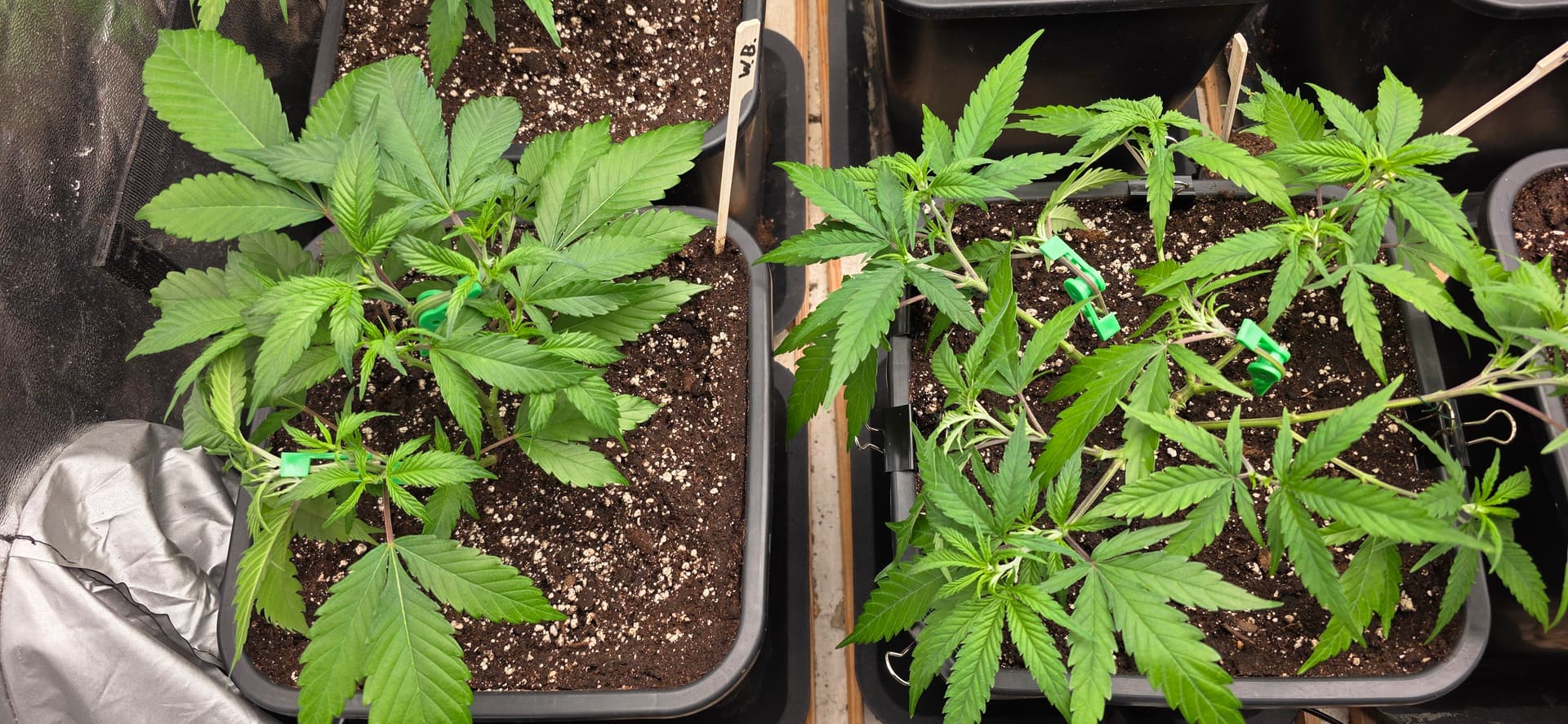 Dann vorne nach links die 2 Son of a Peach (Stecklinge) und ganz links die SleepyJoe (Steckling).