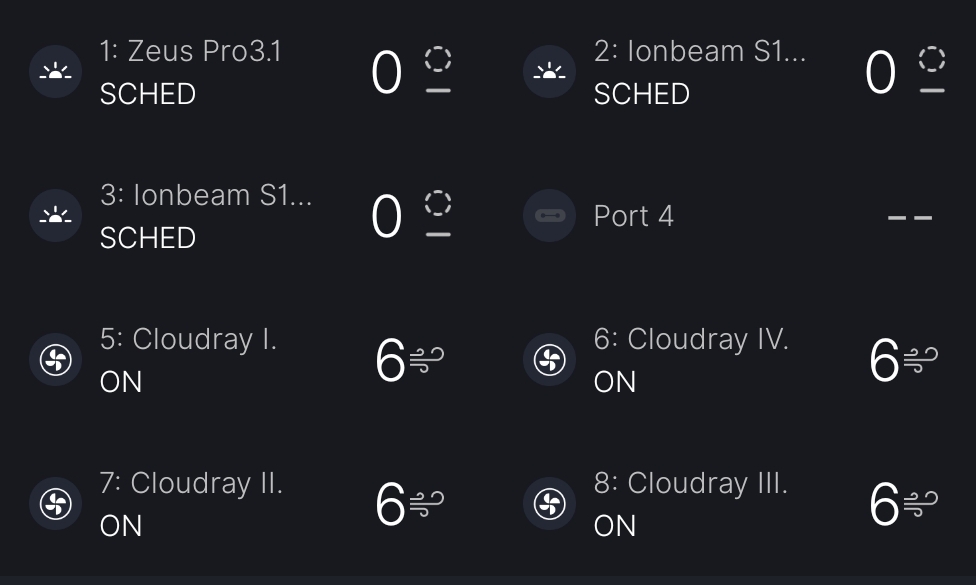 Dann wÀre der Kontroller voll, sollte ich mehr Ports brauchen, kommen die 4 Cloudray an einen Splitter (liegt bereit).
