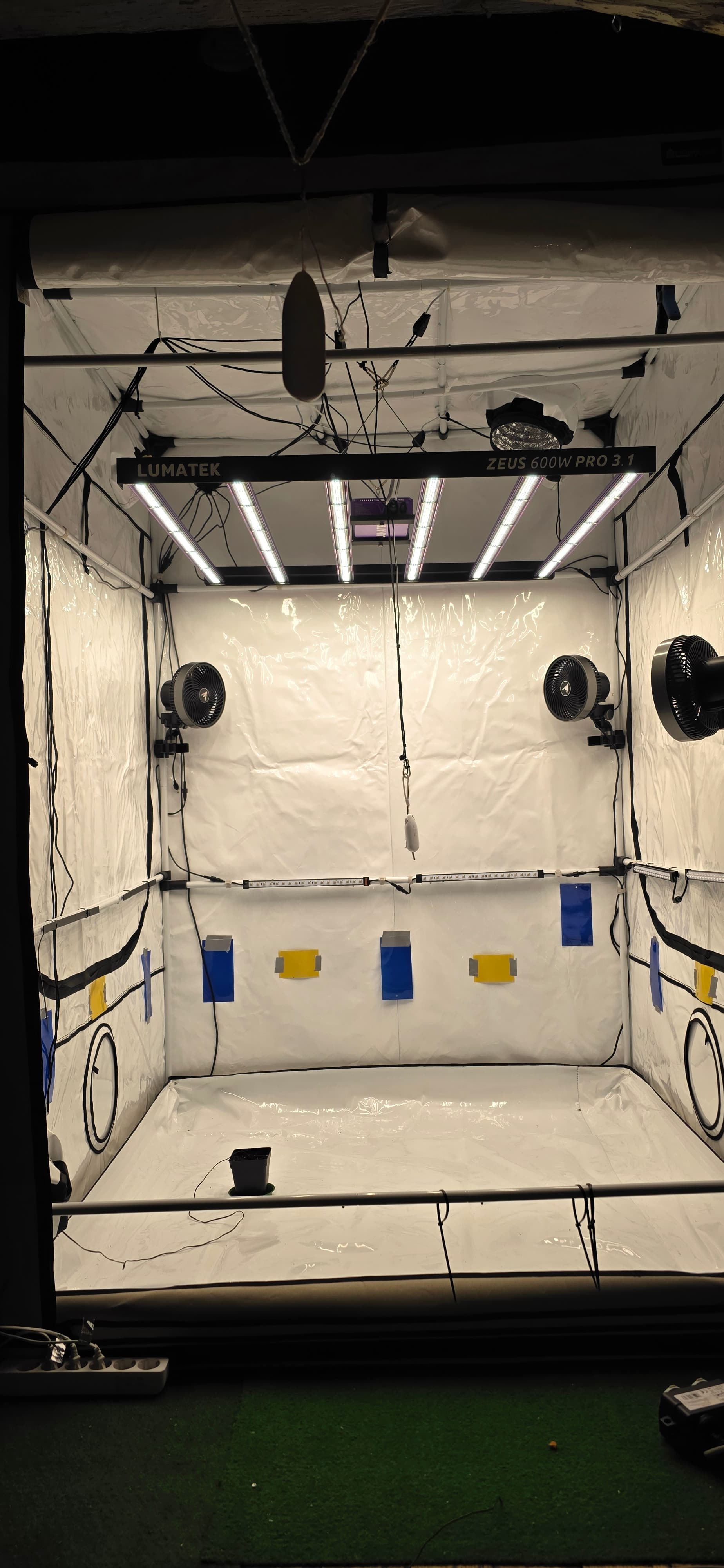 So heute in ruhe den Rest, die damen ruhen jetzt bei 17°. Ich werde dann spĂ€ter noch den Rest einbauen, die box mit BĂŒhnen-Molton-Stoff verhĂ€ngen (300gr), da ich keiner Naht oder ReiĂverschluss vertraue und ohne schlechtes Gewissen in dem Raum arbeiten können möchte. Dazu dann heute abend mehr, wenn alles erledigt ist.
