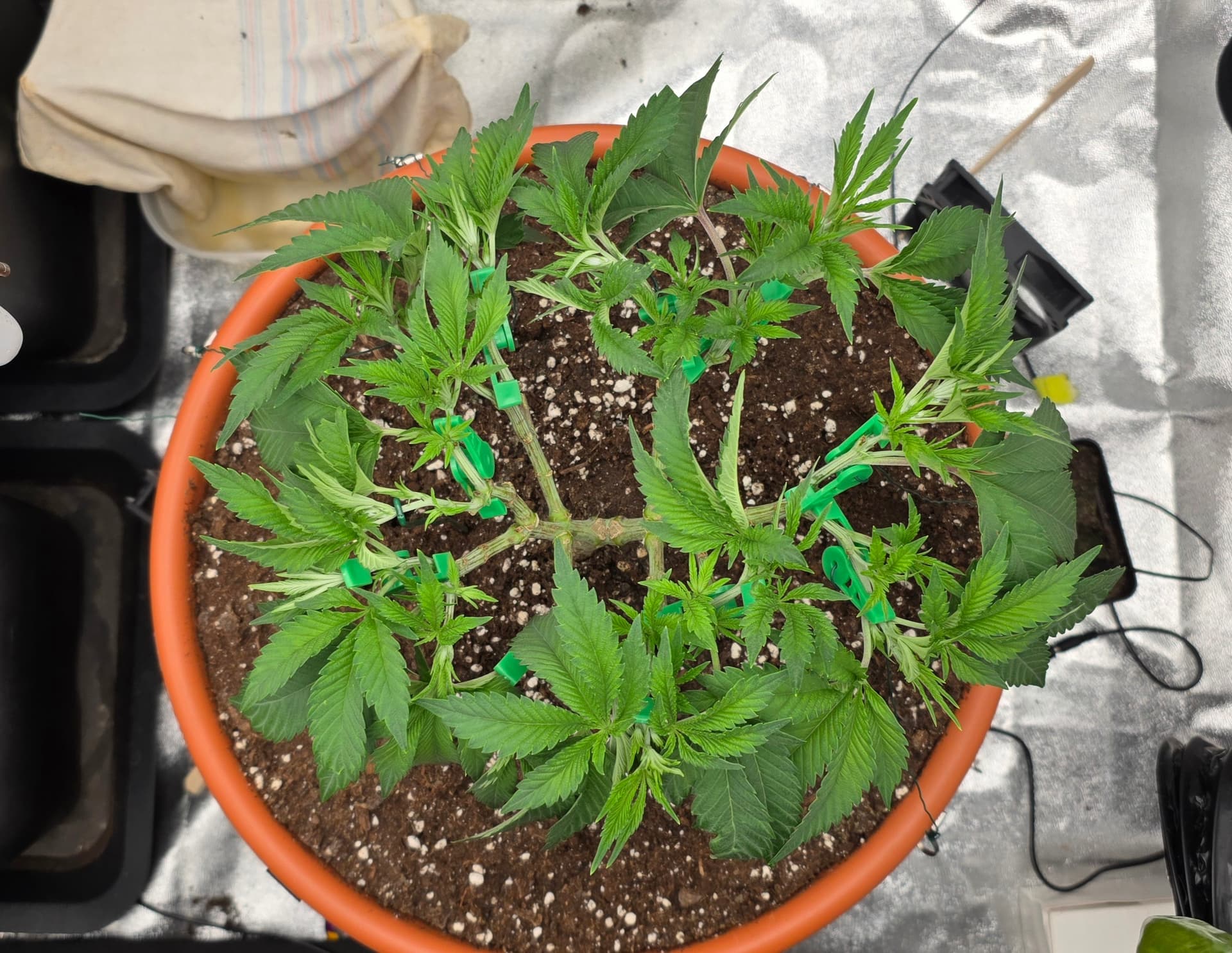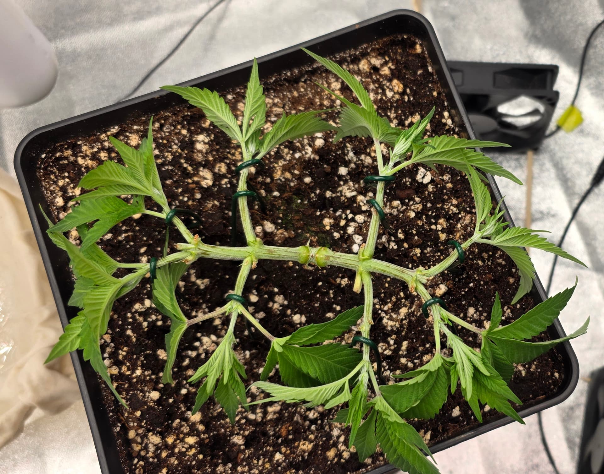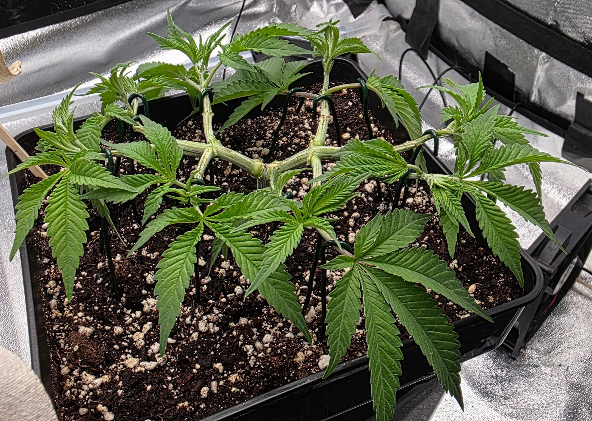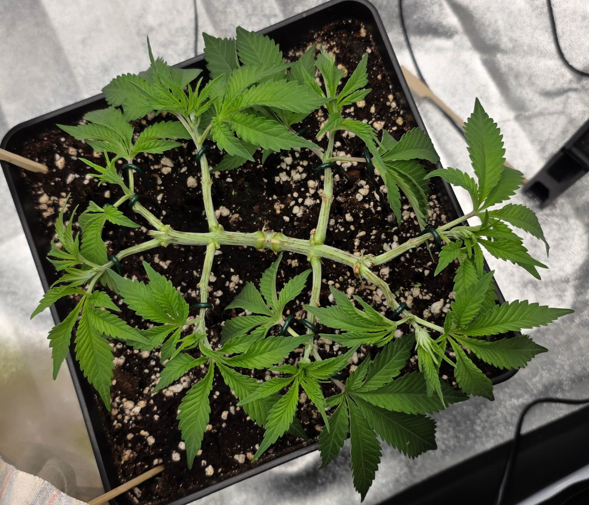 Training/Topping klar, so 8 Haupttriebe sollten es schon werden + was es da so an Nebentrieben nach oben schafft …
