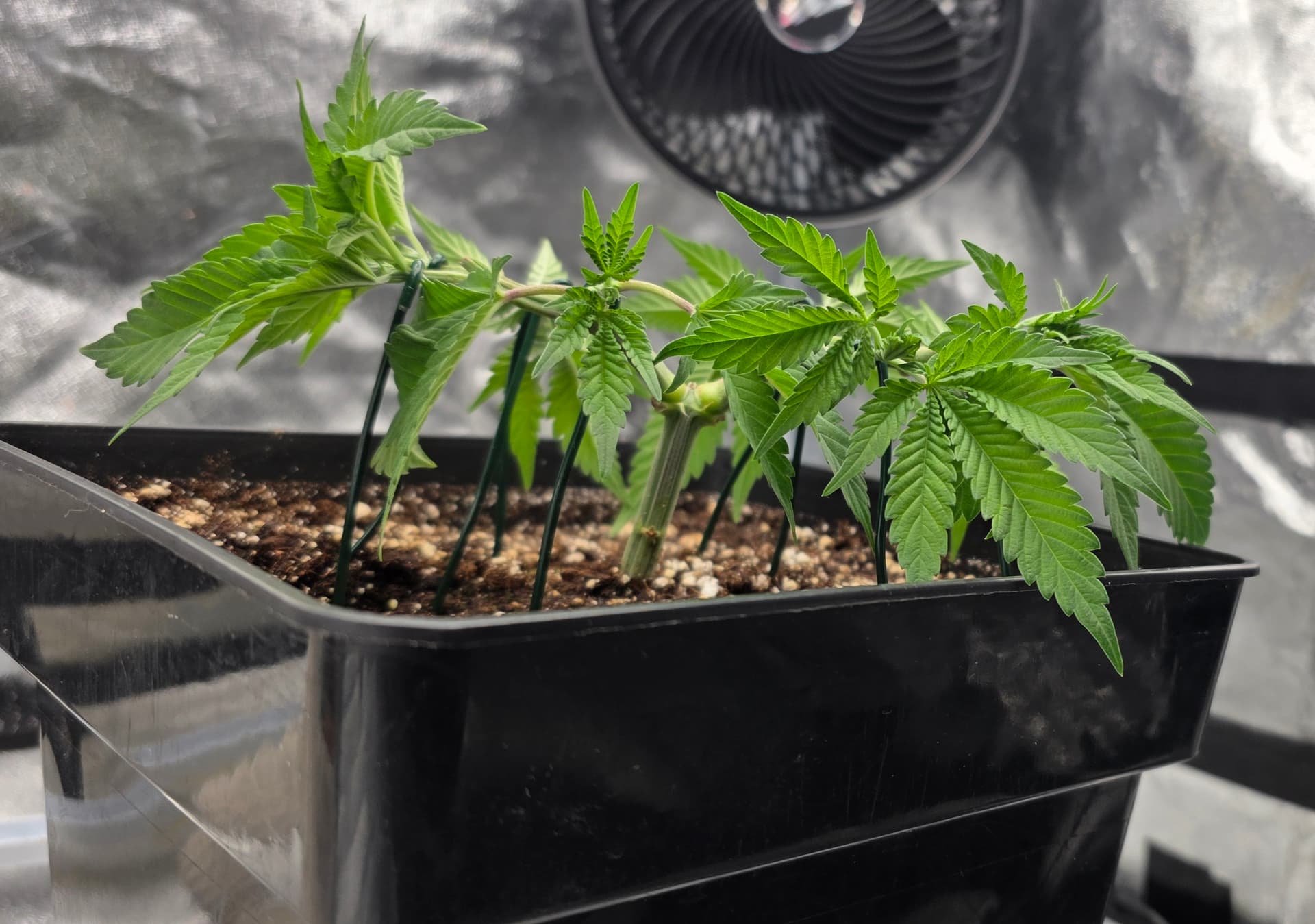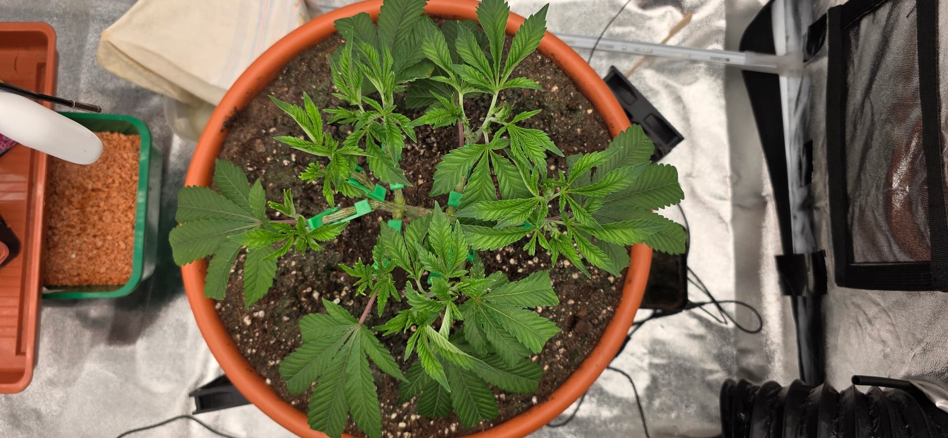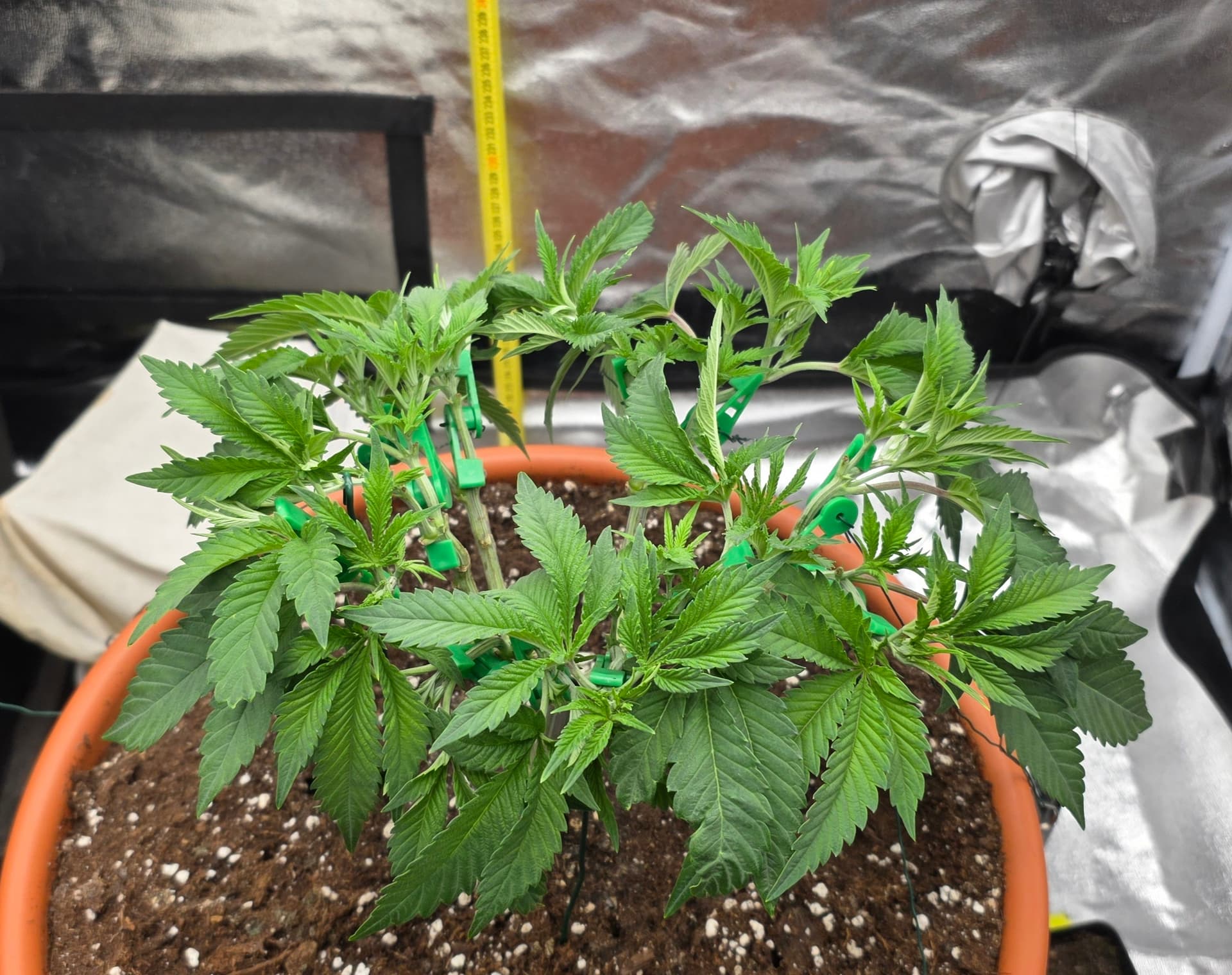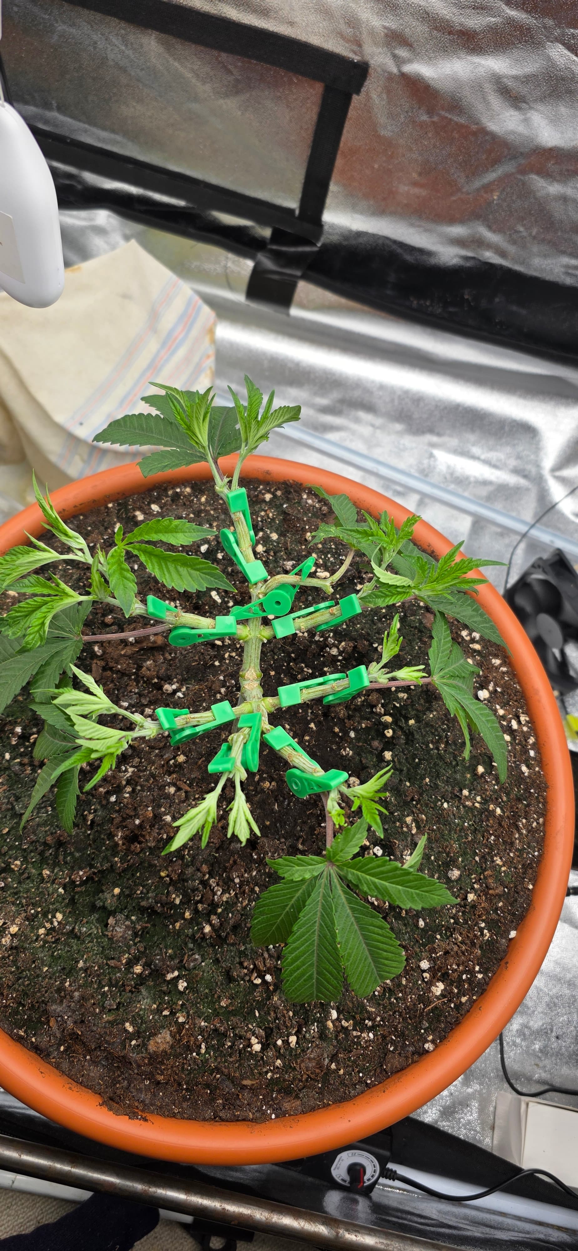 Training/Topping klar, so 8 Haupttriebe sollten es schon werden + was es da so an Nebentrieben nach oben schafft …