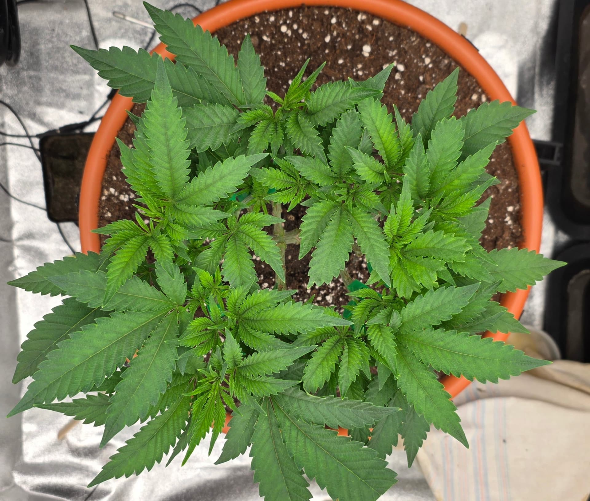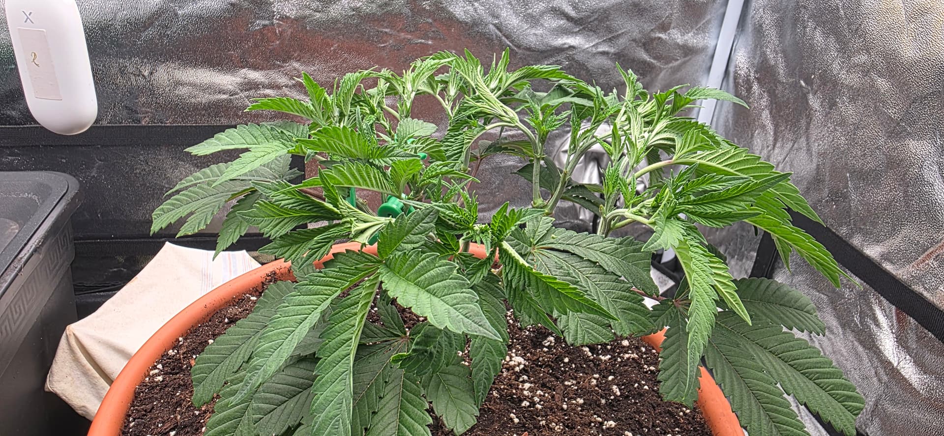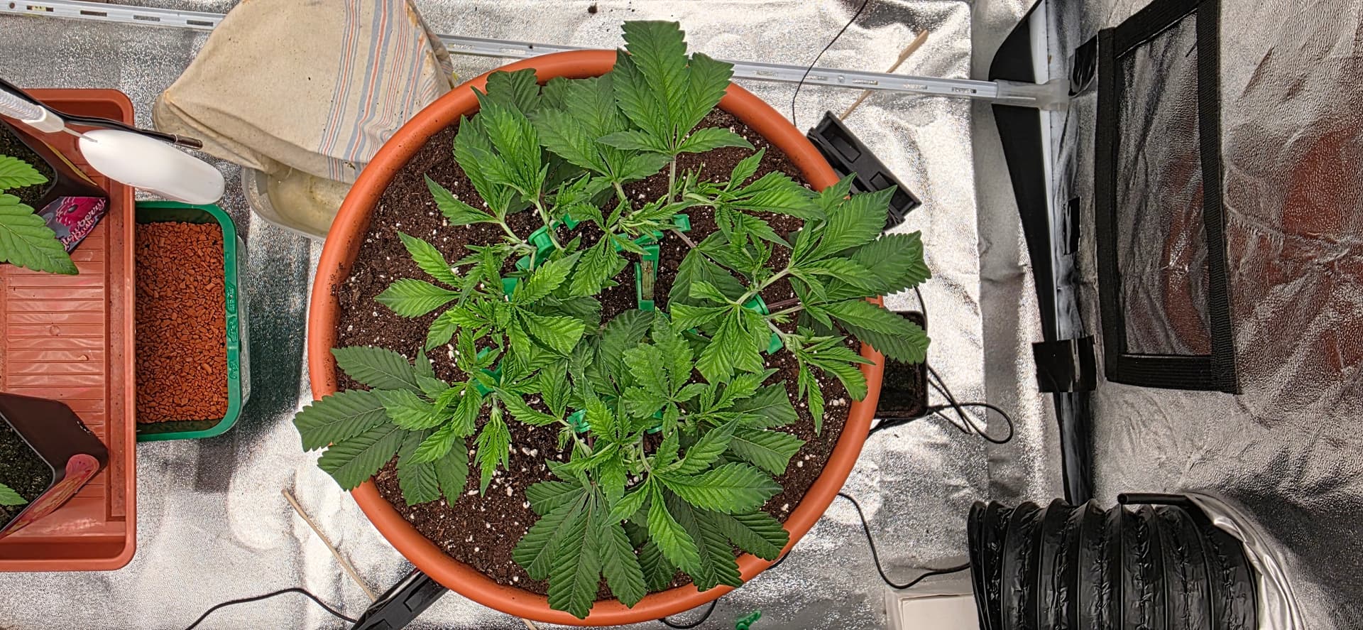 Ab hier sieht mann wie sie im vergleich zu den anderen kleiner bleibt. Die anderen wurden umgetopft und als fest stand das sie nicht mit in Blüte geht …