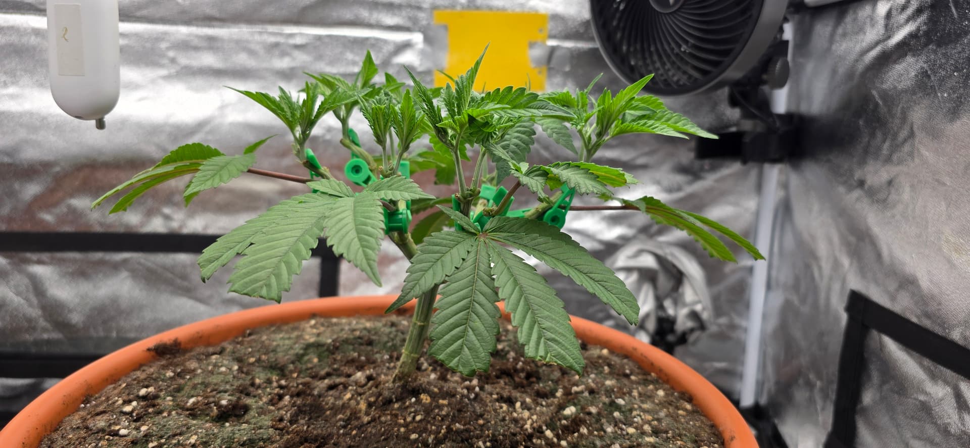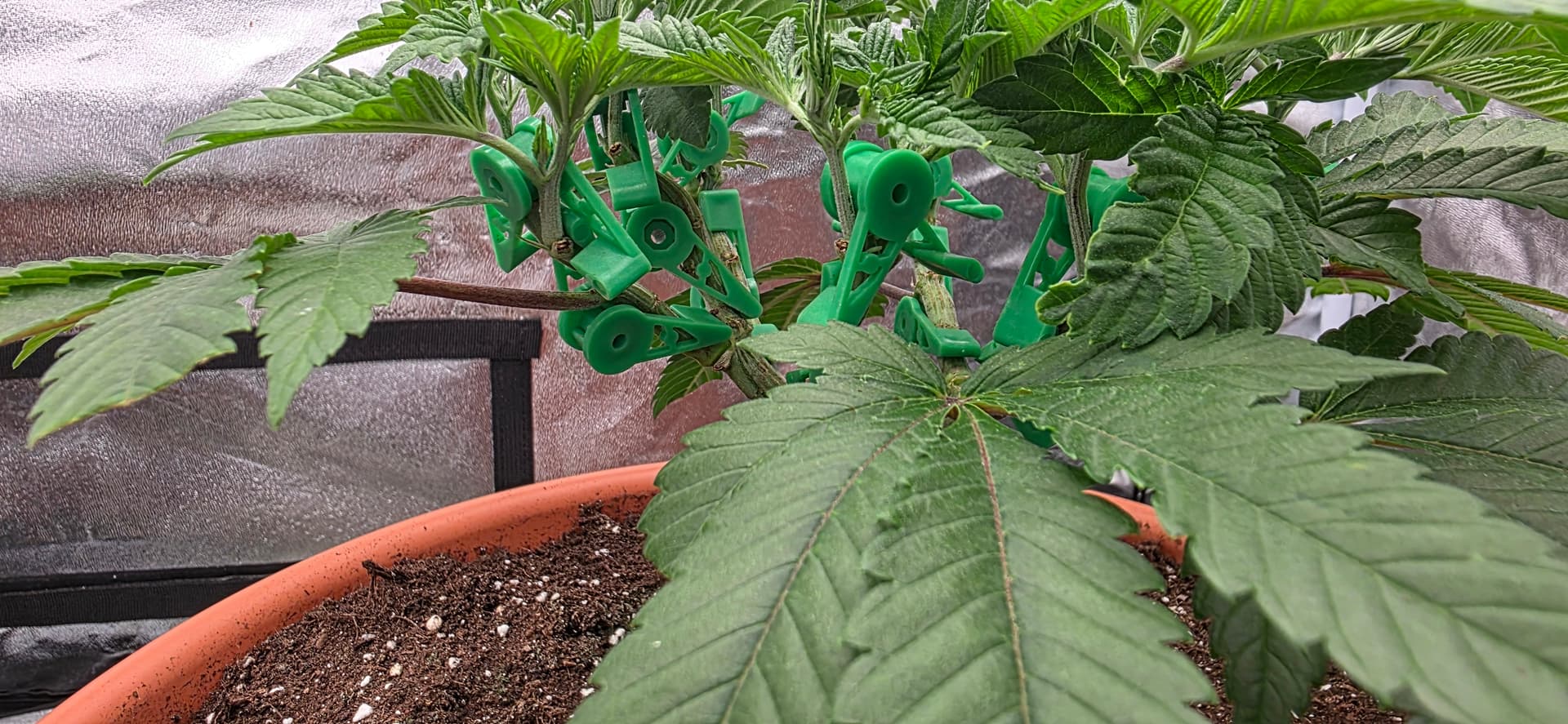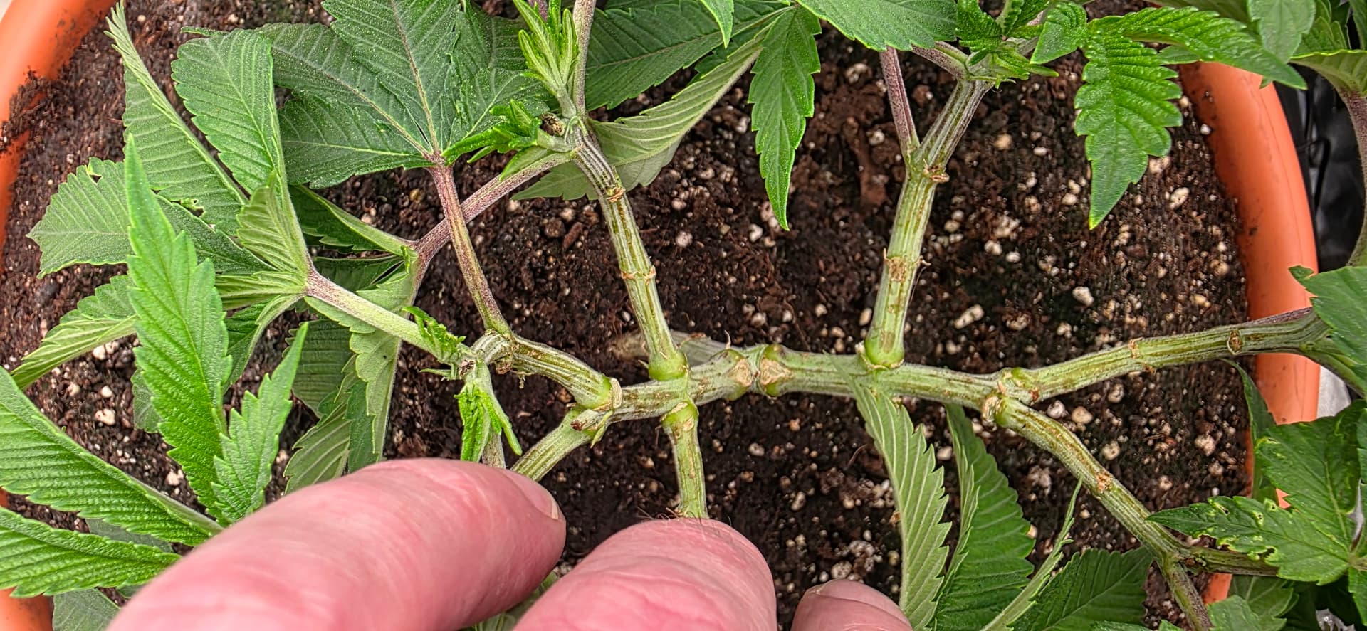 Jetzt lasse ich die Triebe eine Noide nach oben machen und dann wird getoppt, um den Schritt auf 16 Haupttriebe zu machen.