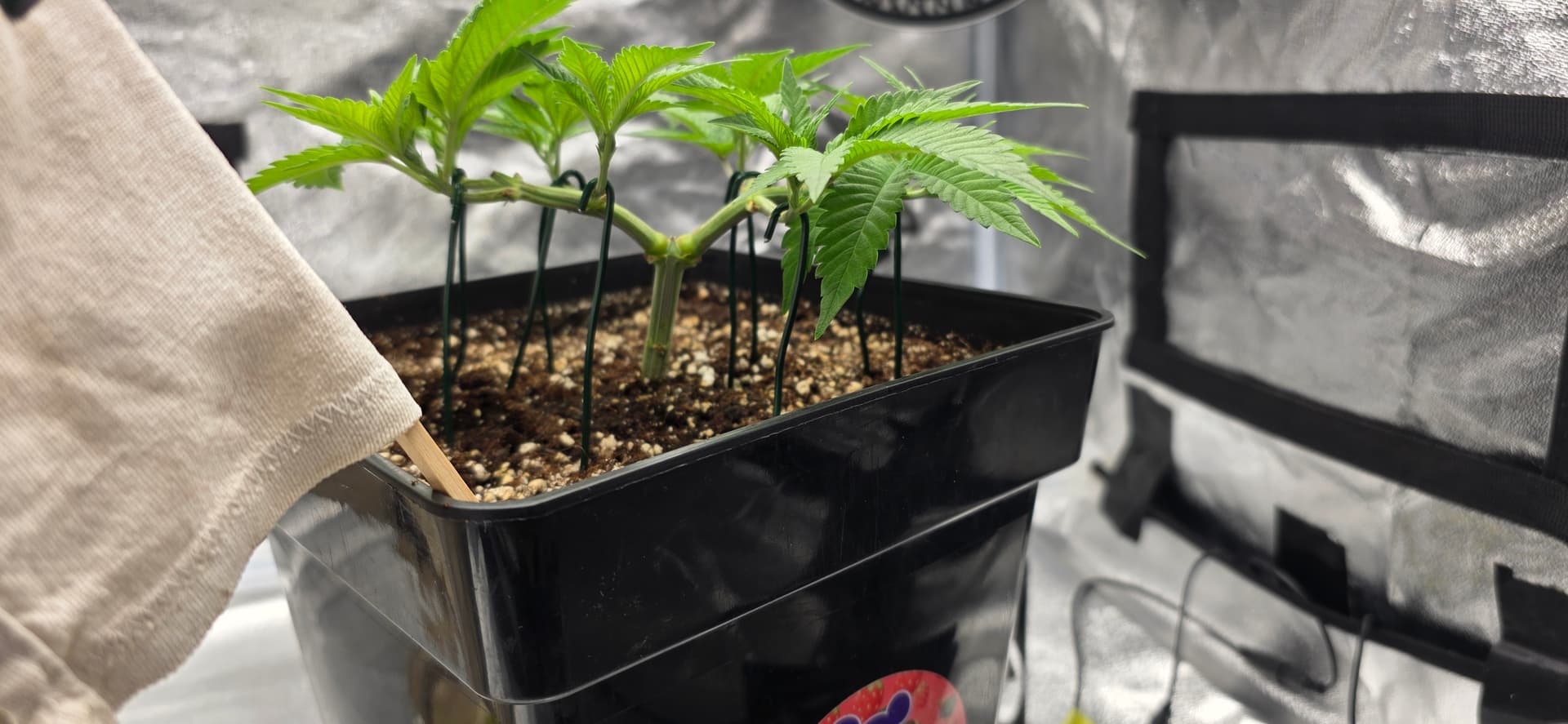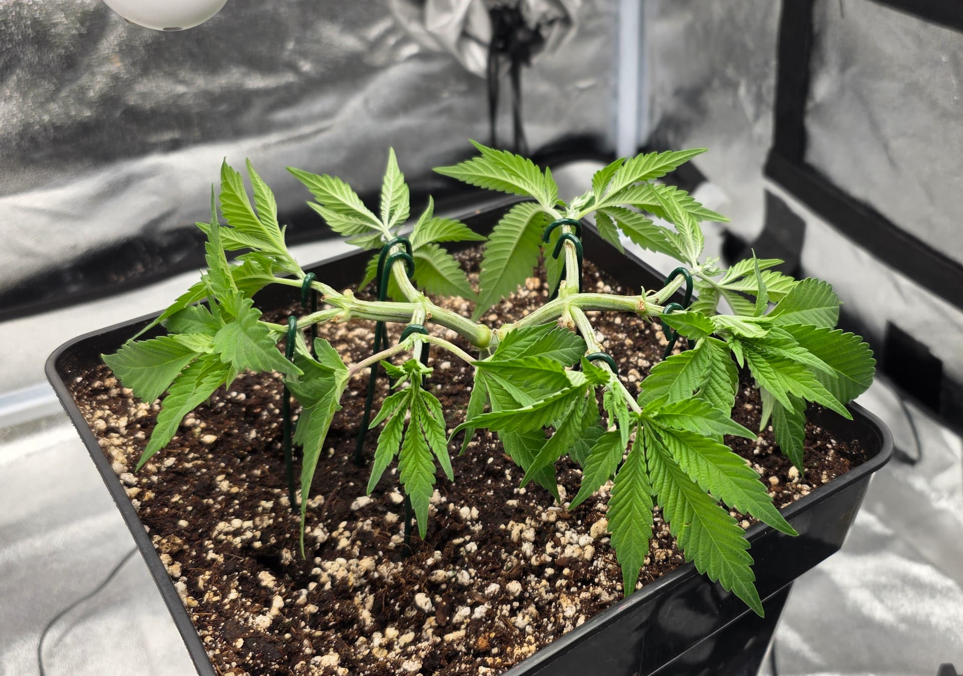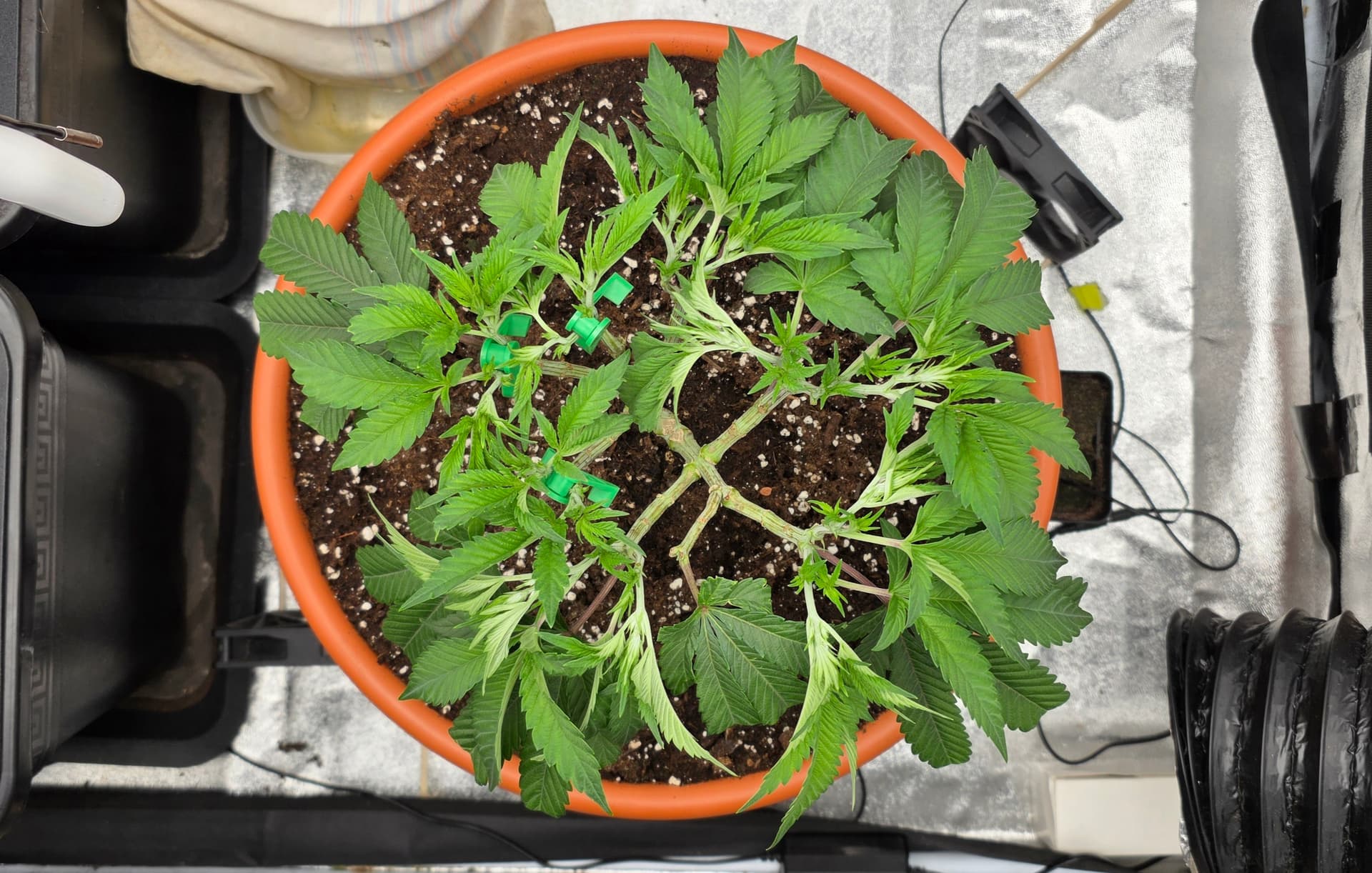 Jetzt lasse ich die Triebe eine Noide nach oben machen und dann wird getoppt, um den Schritt auf 16 Haupttriebe zu machen.