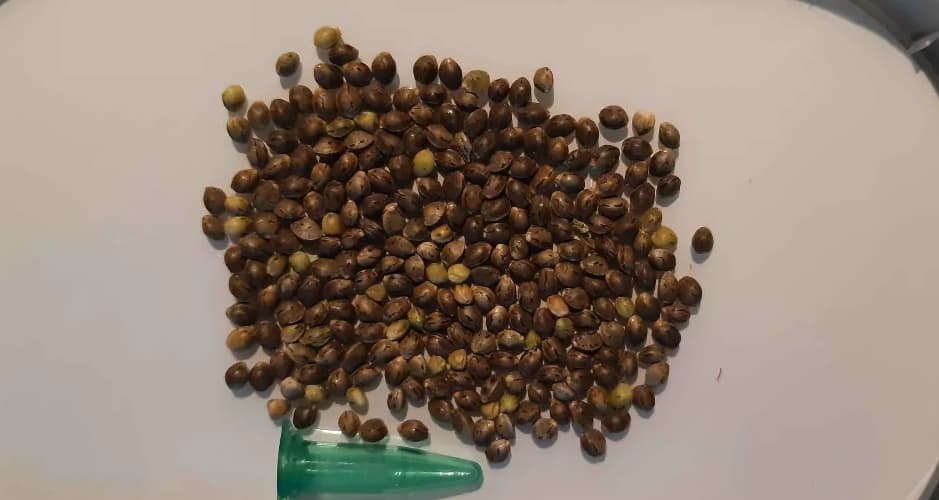 Ich habe von meiner letzten überlebenden weiblichen Moroccan Beldia bisher knapp 100 Samen entnommen, da kommt wohl nach der Ernte noch was dazu! Leider war die Beldia Pollen- Lagerung bei mir Anfänger noch ziemlich stümperhaft, daher verspreche ich mir von der versuchten Bestäubung der Wild Thailand wenig, zumal sie massiv am abbauen ist (vermutlich wegen Problemen im Wurzelraum). Muss ich nächstes Jahr einfach nochmal wiederholen, W.T. Samen habe ich ja auch noch!