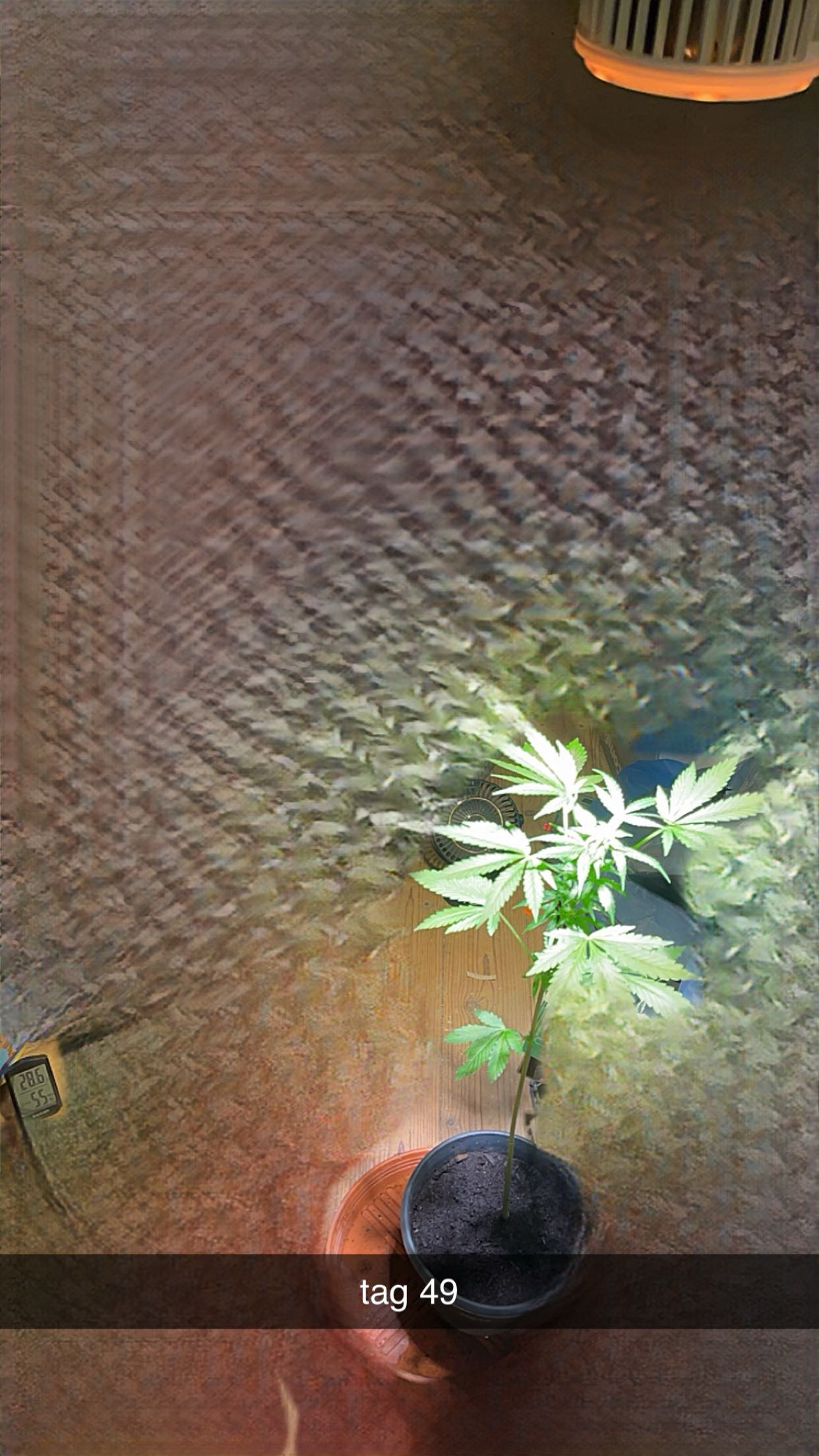 29.06. Gestern Abend den Zirkulationsventilator als Outtakefan installiert um die Hitze in den Griff zu bekommen. Bei aktivem Betrieb ist der Growroom dadurch noch lauter, Jetzt ist die reifere von den beiden über der Erde das erste Mal sichtbar (Tag 1). Vermutlich kommt die jüngere mit 2 Tagen Verzögerung. Erneut die Überlegung bereits jetzt die Pflanzen raus zu tun an einen Pre-Spot.