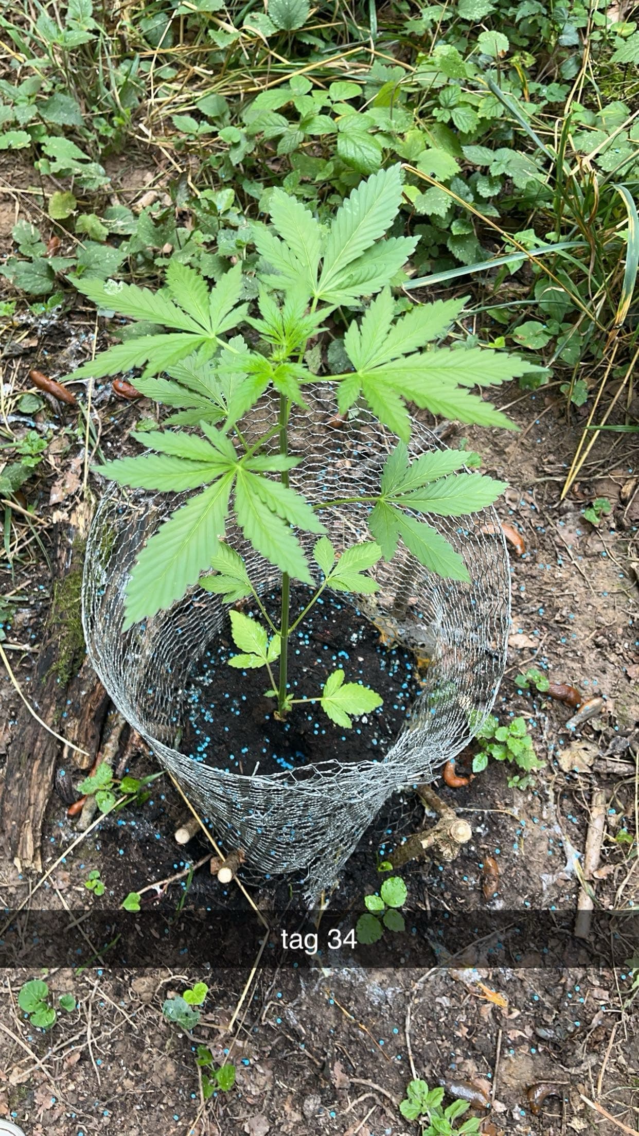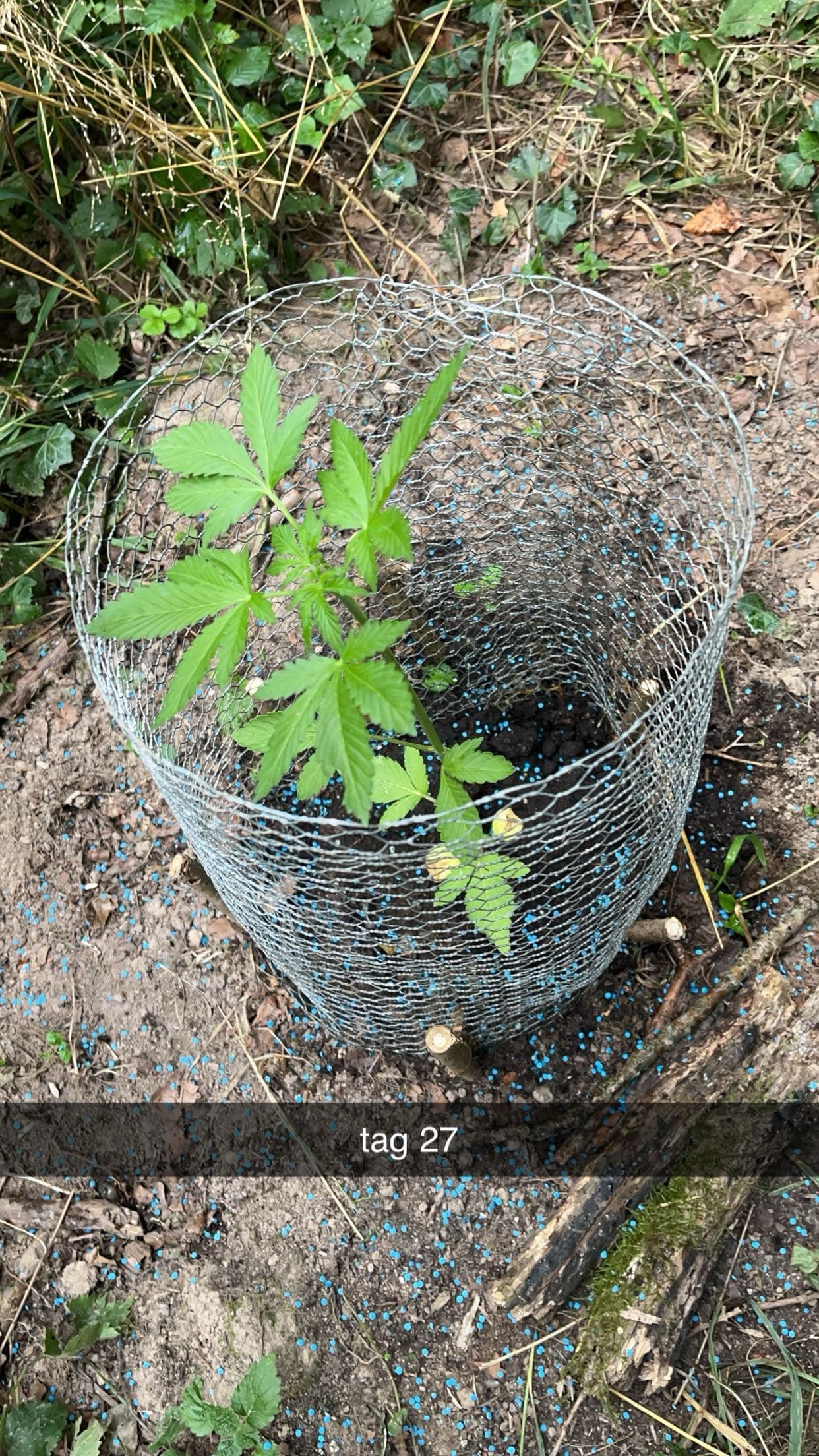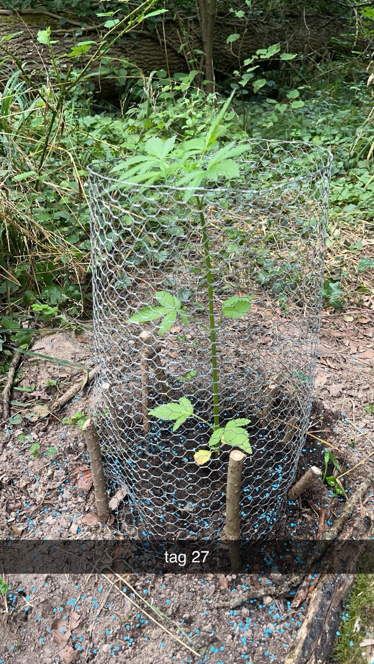Gestern den Spot besucht über einen neuen Weg, aber gesehen worden, daher zurück zum alten. Das übertrieben viele Schneckenkorn hat geholfen es war ein kreisrunder Friedhof an Schnecken. Hühnerdraht angebracht und mit gezweigten Ästen befestigt. Die Pflanze hat sich gut eingewöhnt und scheint in der Höhe zuzulegen. Dennoch schätze ich gibt es wenig direkte Sonne am Spot. Dünger mit Wasser wurde gegeben und neues Schneckenkorn, welches erstaunlich regenfest ist. Umbedingt Antibrumm für die Zukunft alles voll mit Schnaken.