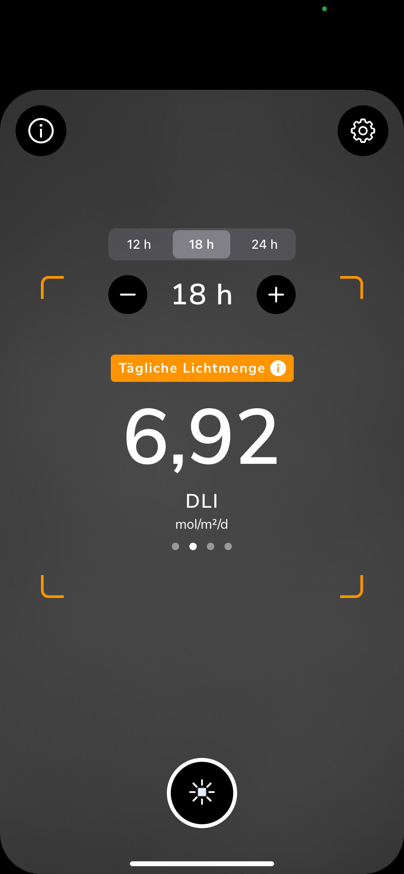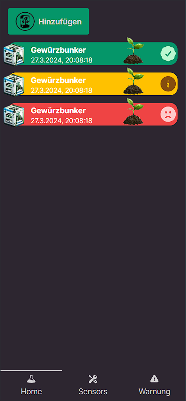 Anzeige: Temp, Luftfeuchtigkeit, Bodenfeuchtigkeit und Licht.