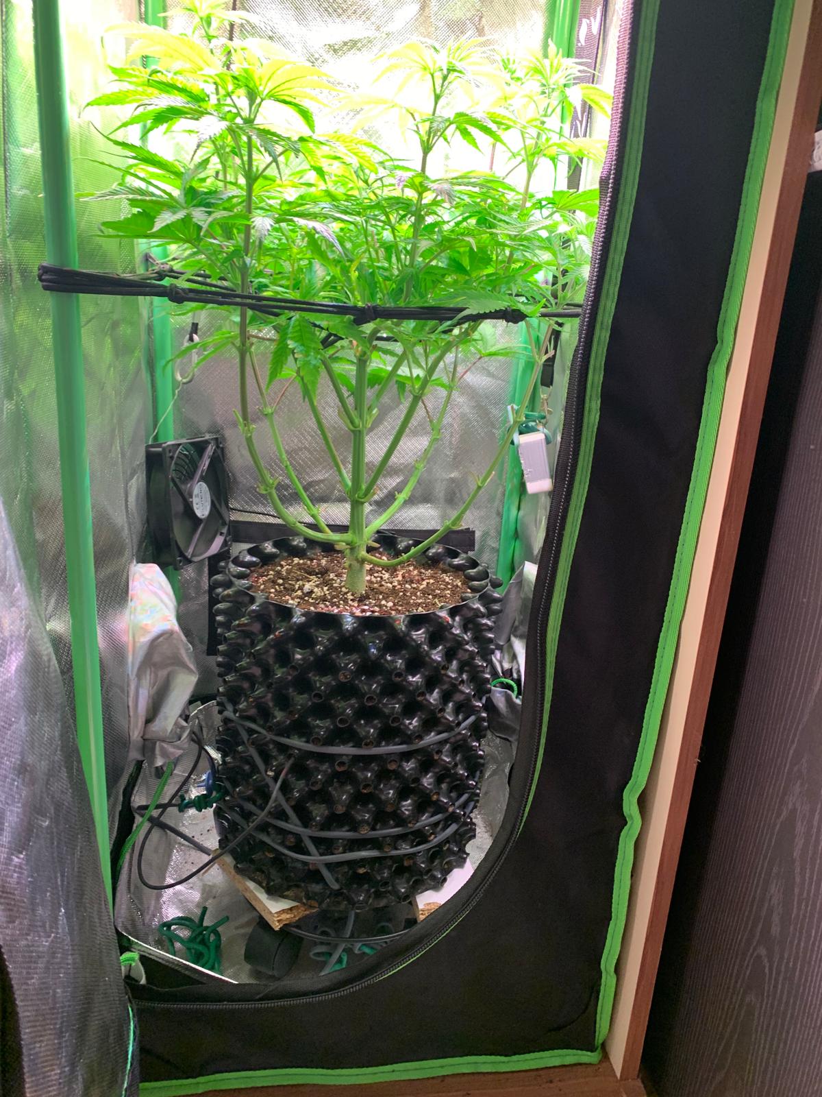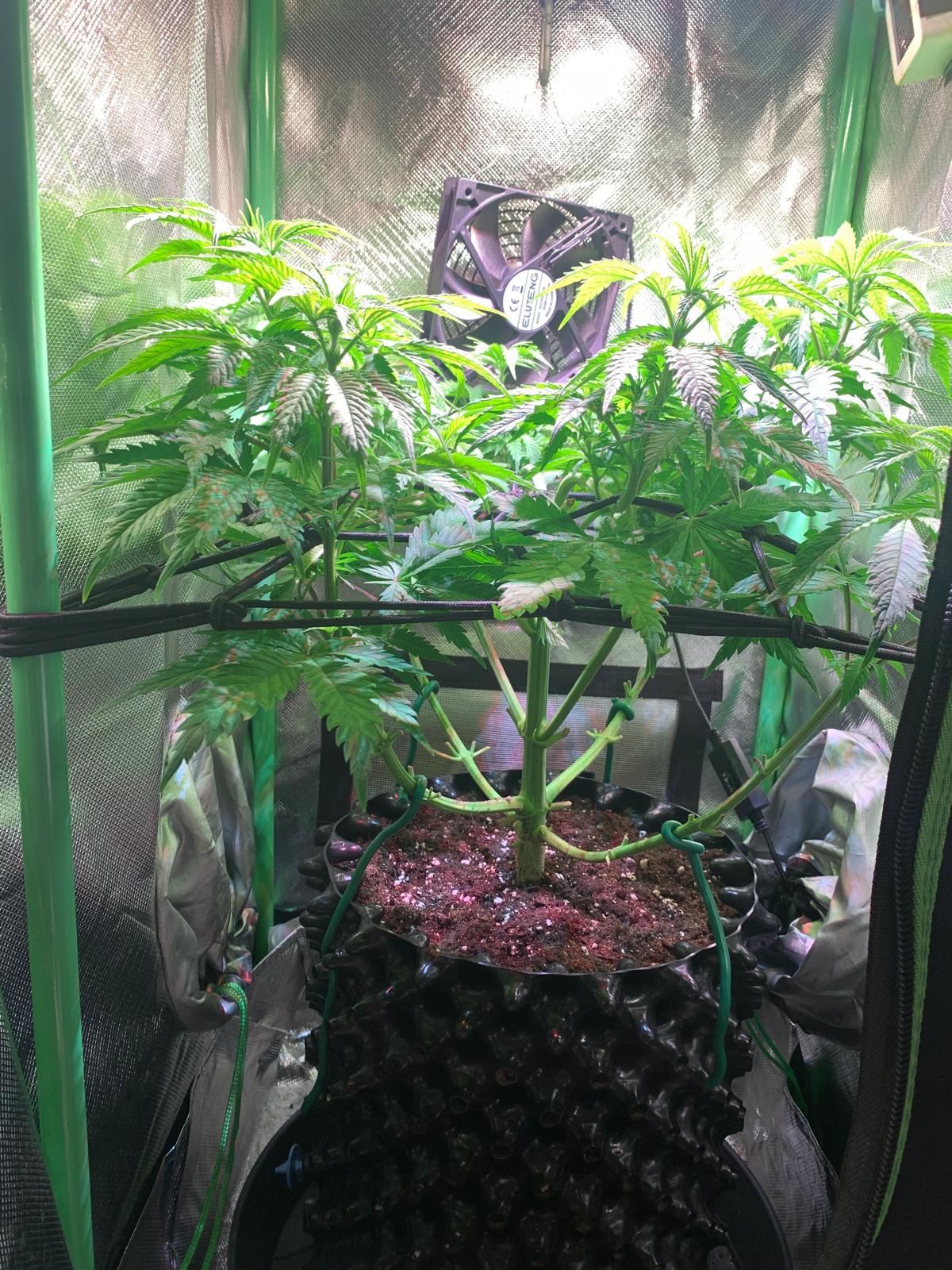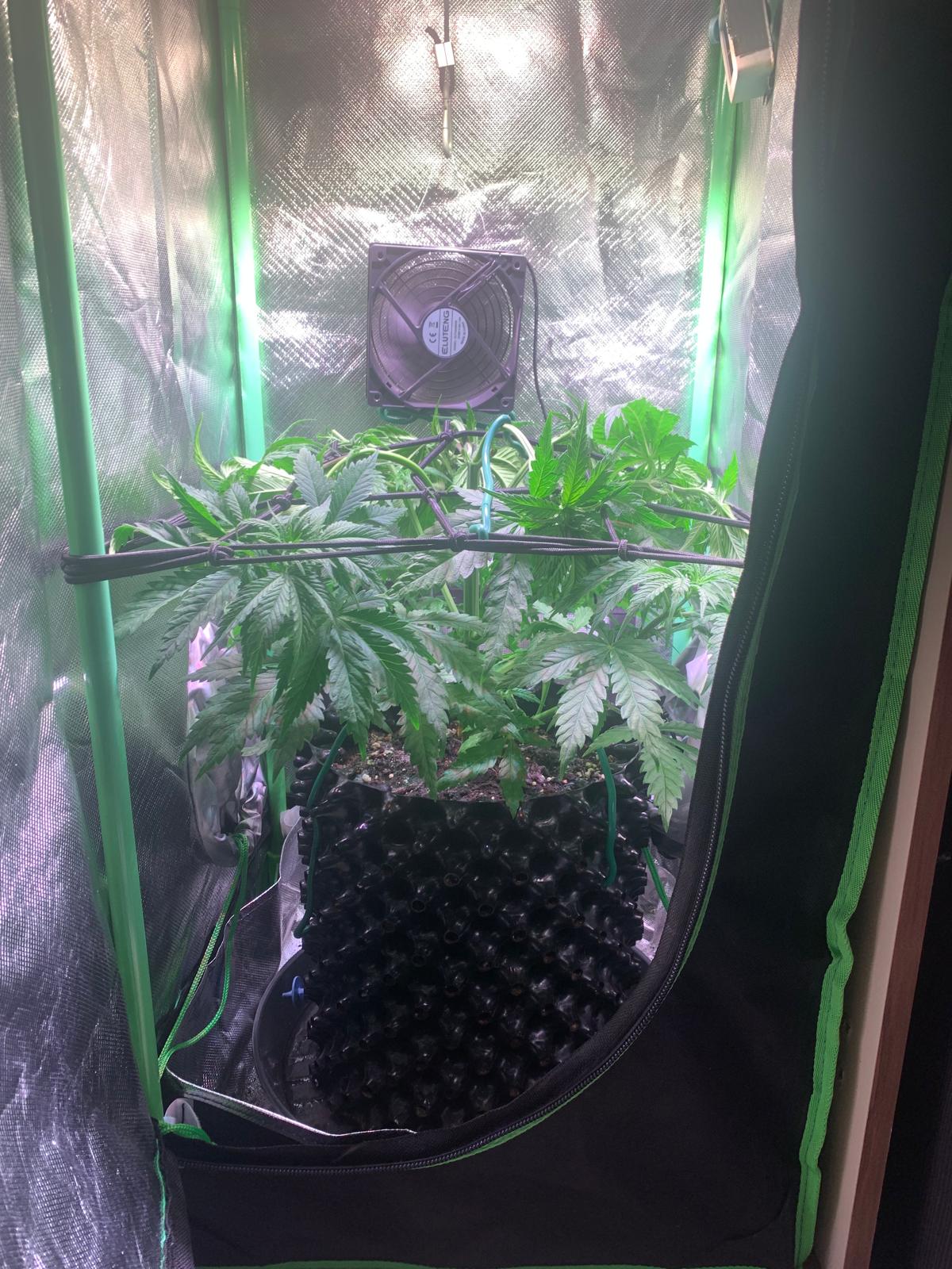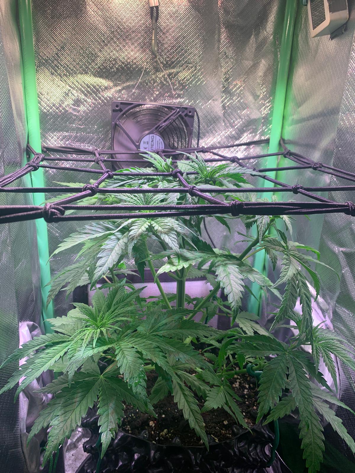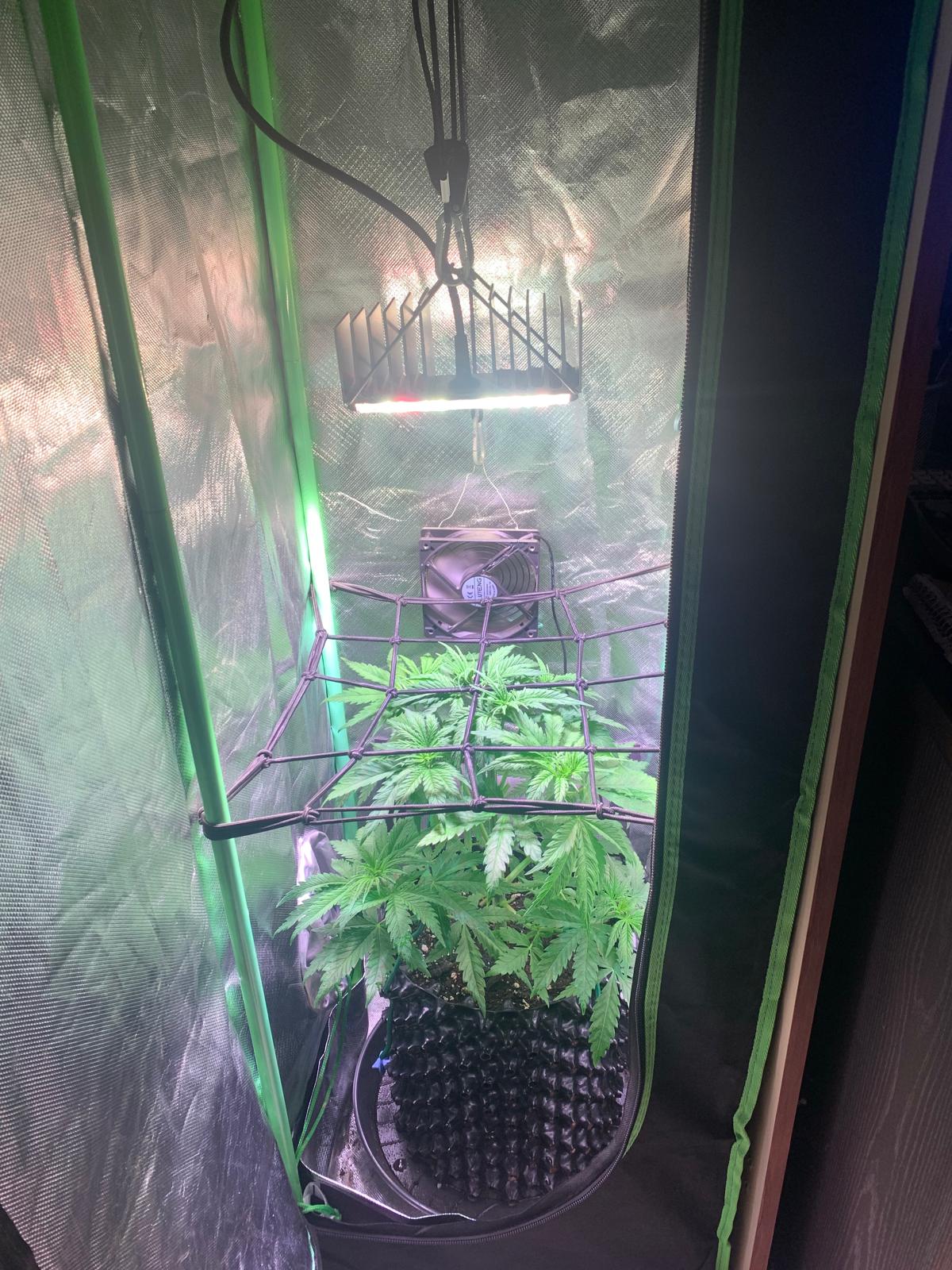 Den Tag darauf ging es ihr schon besser und das Scrog-Netz wurde langsam im Zelt positioniert.