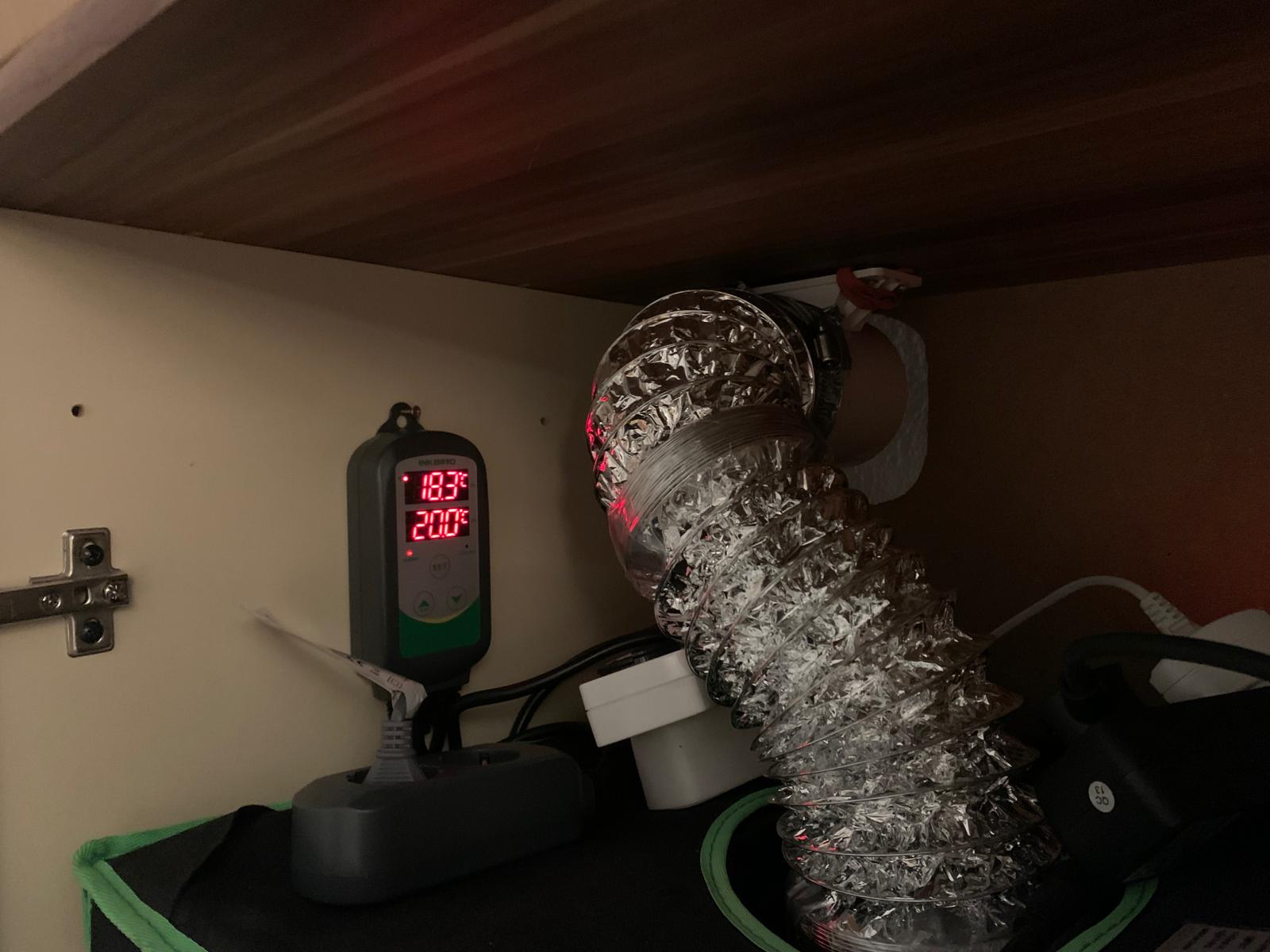 Damit heizt das System (ITC 308 WIFI von Inkbird) mit einer Hysterese-Steuerung immer das Substrat auf 20 °C wenn es nötig ist. Schön ist Vor Allem die Funktion die Temperatur mit einer App von überall aus einsehen zu können oder bei beliebigen Temperaturen auf dem Handy gewarnt zu werden.