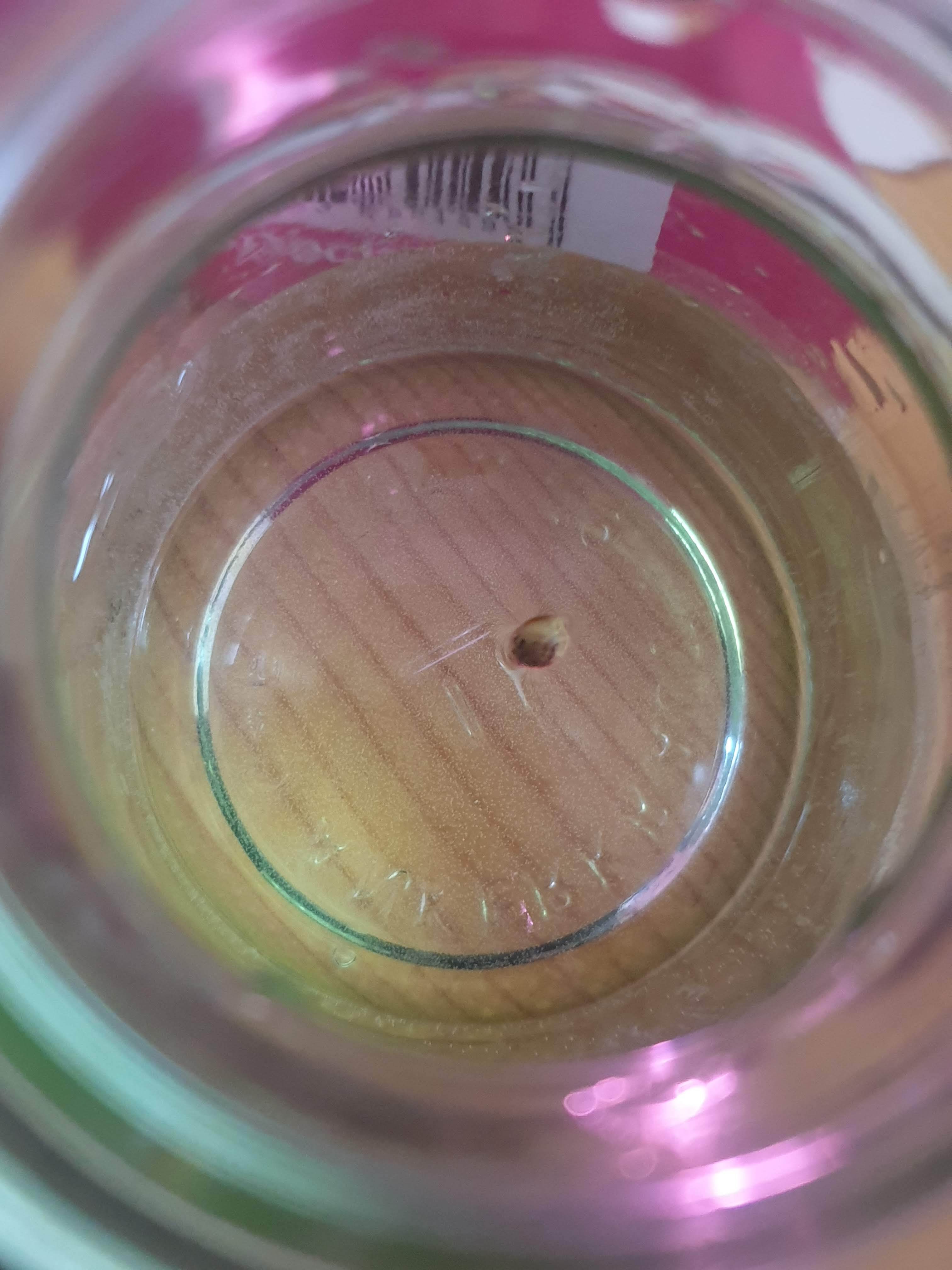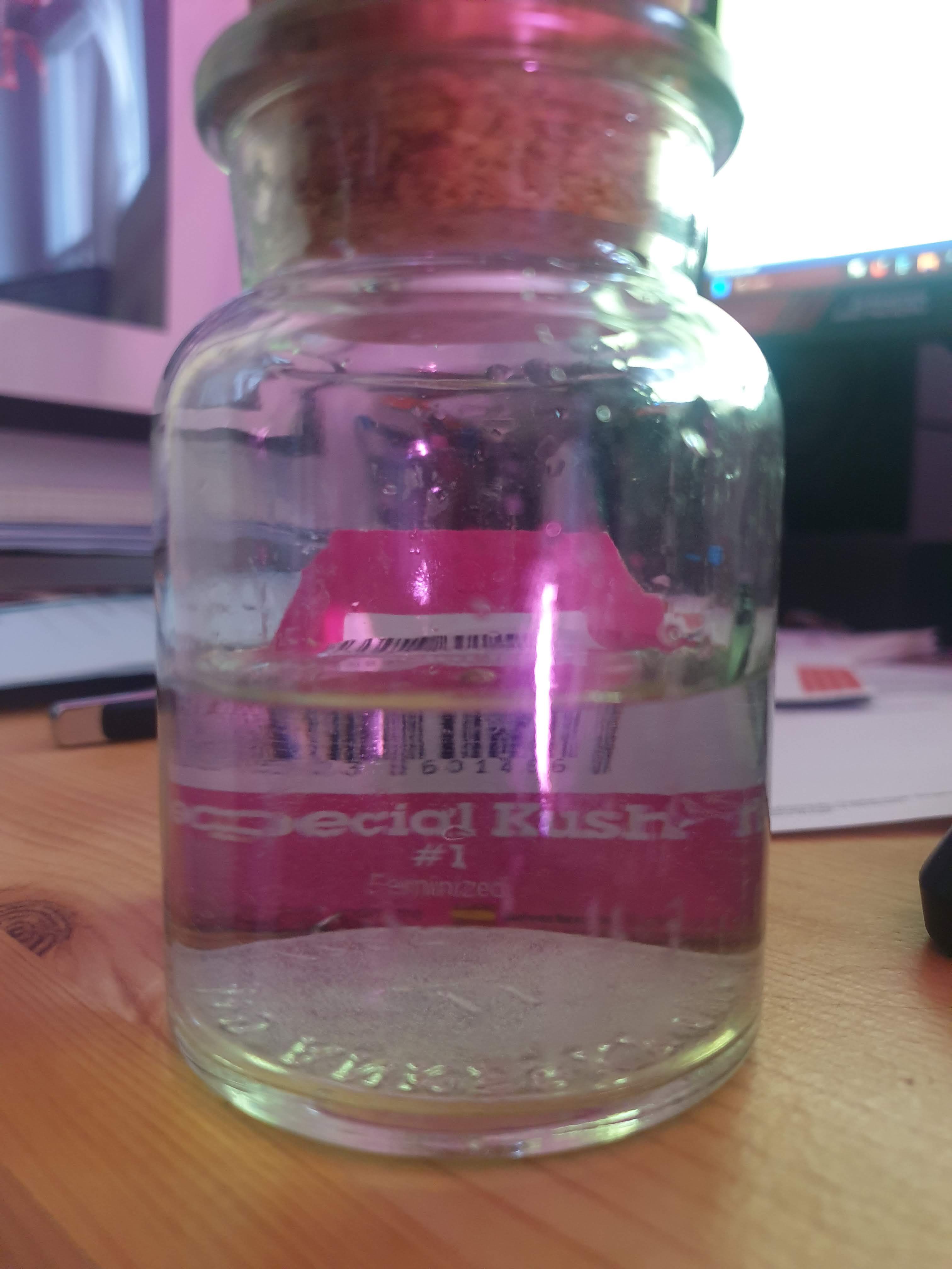 Soeben ist der Seed zusammen mit einem Tropfen Plagron Seedbooster in das kleine Wassergläschen mit Korkverschluss gedroppt. Wenn er das gute Zeug dann schön aufgesogen hat und untergegangen ist, stecke ich ihn in die Erde und schaue, was passiert! ![]()
