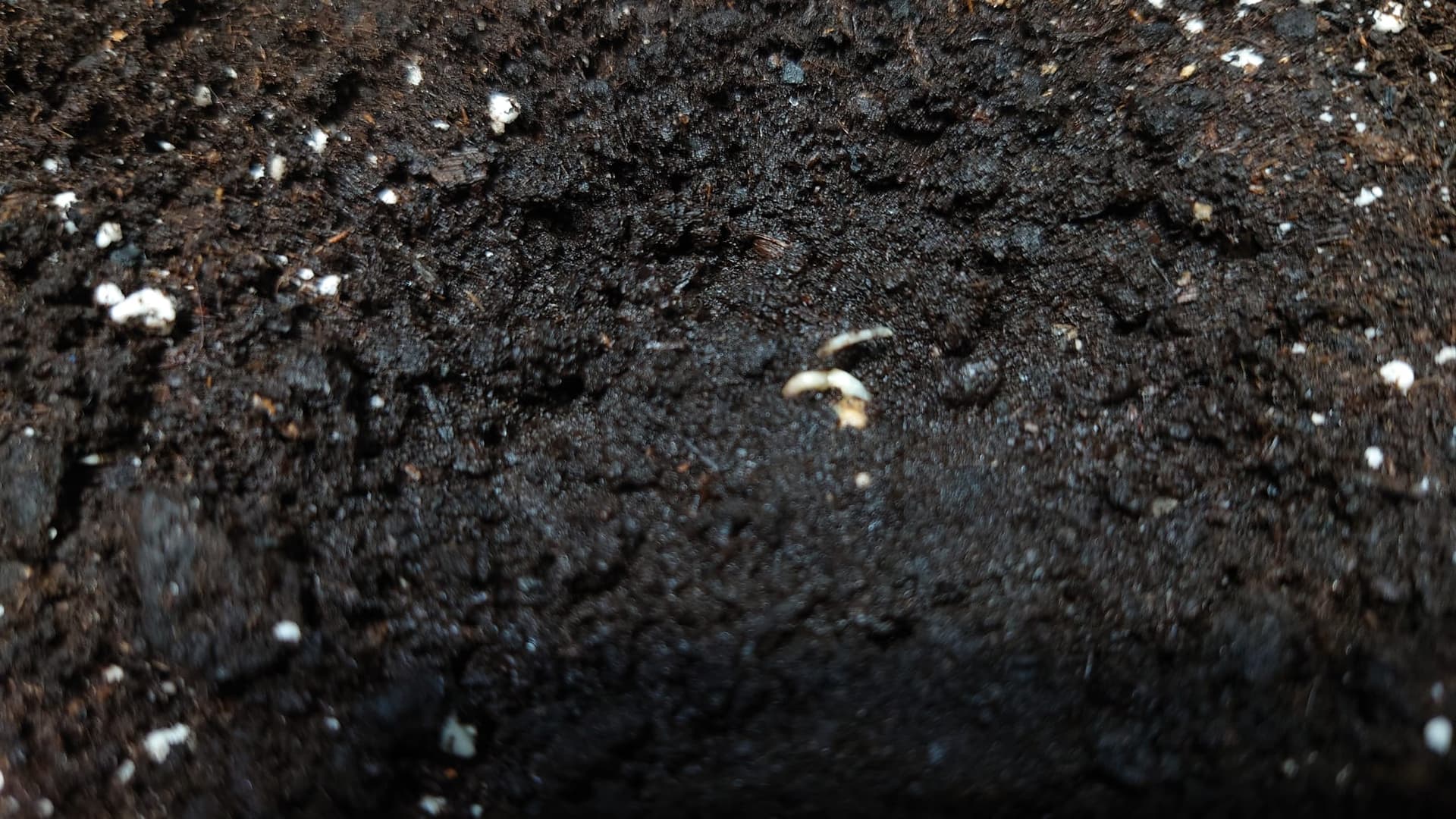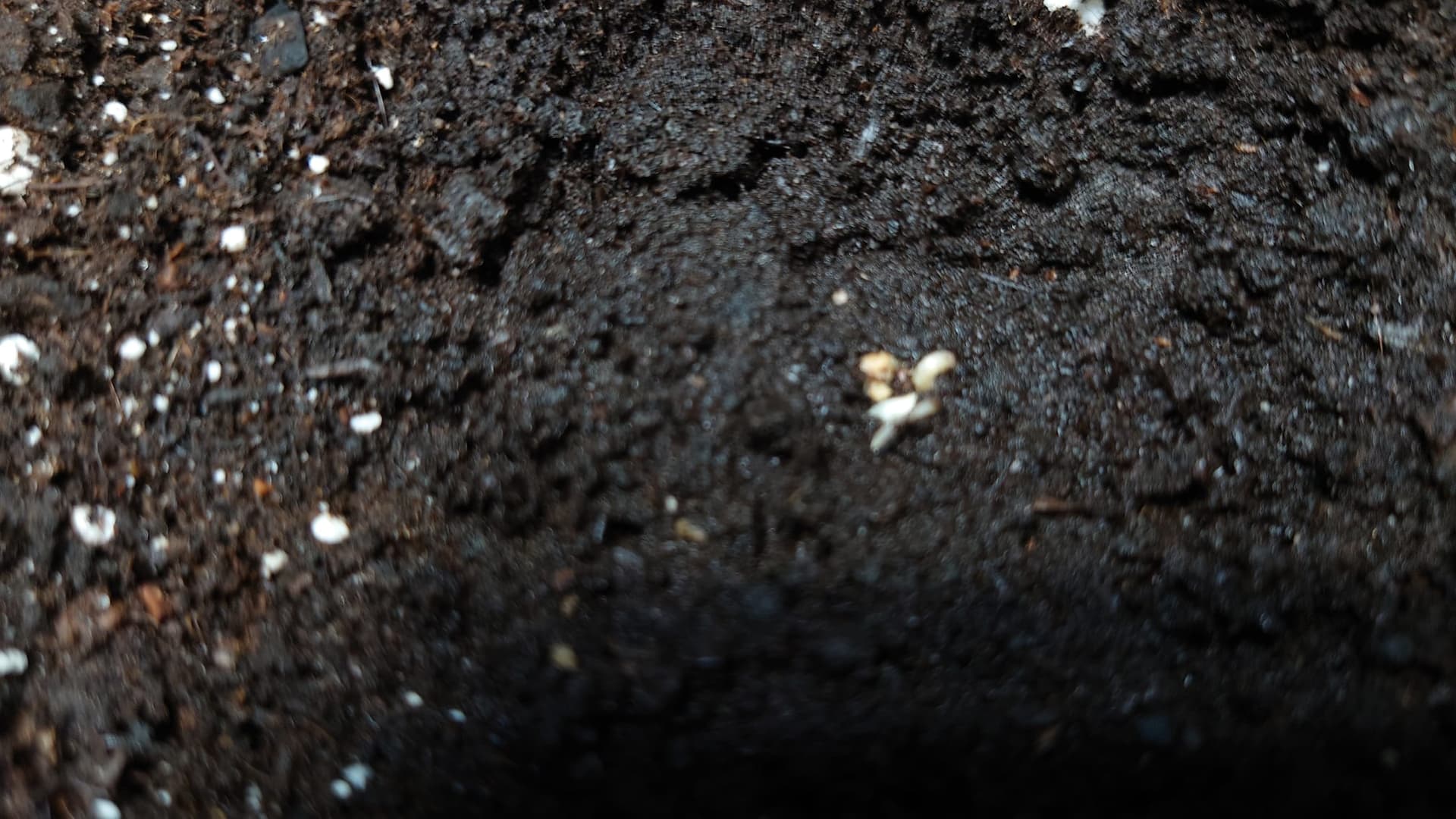 Während 3 von 4 Seeds im Verlauf des 18.10. ihr Köpfchen durch die Krume drückten, lässt Nr. 4 immer noch auf sich warten.