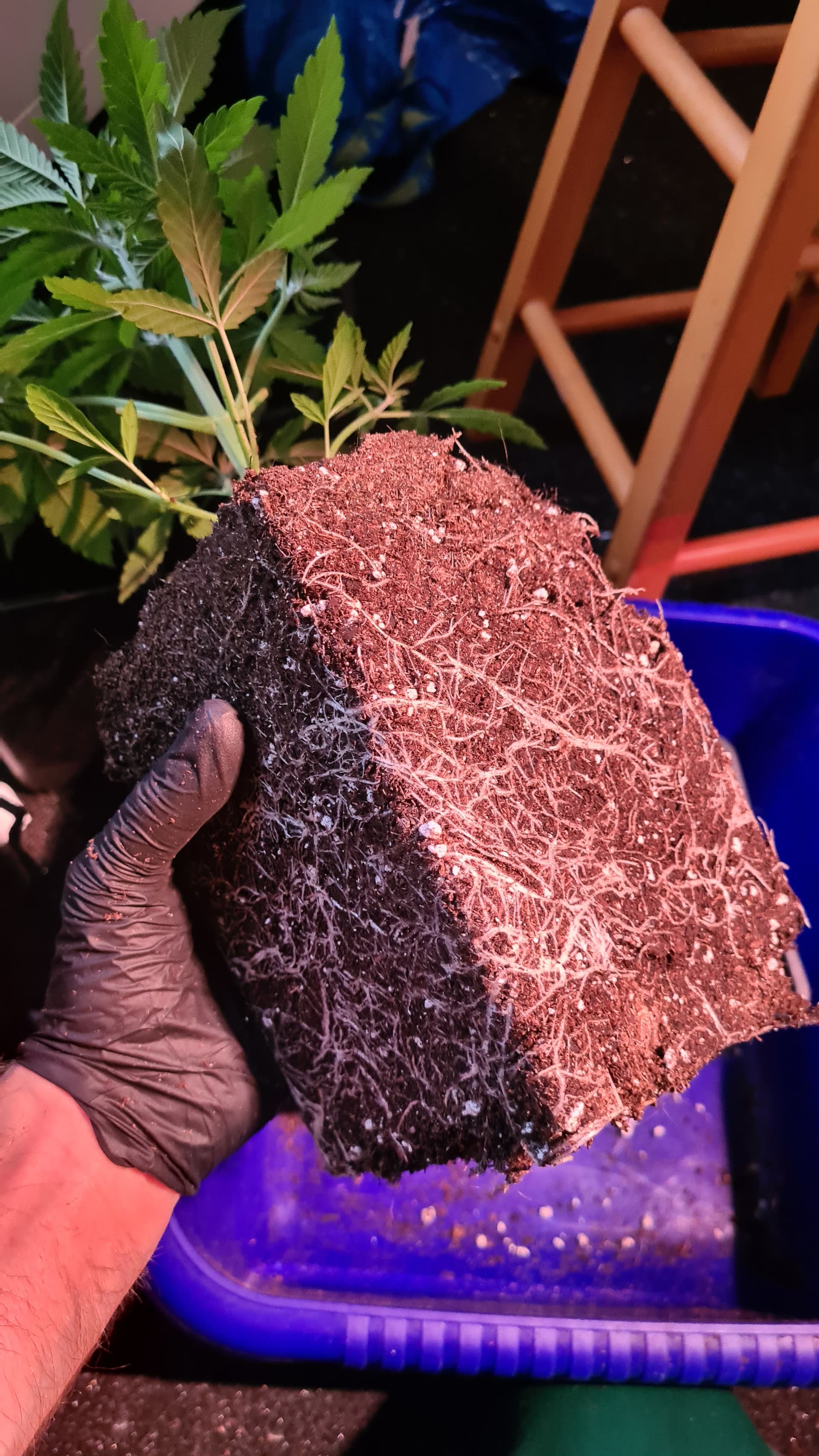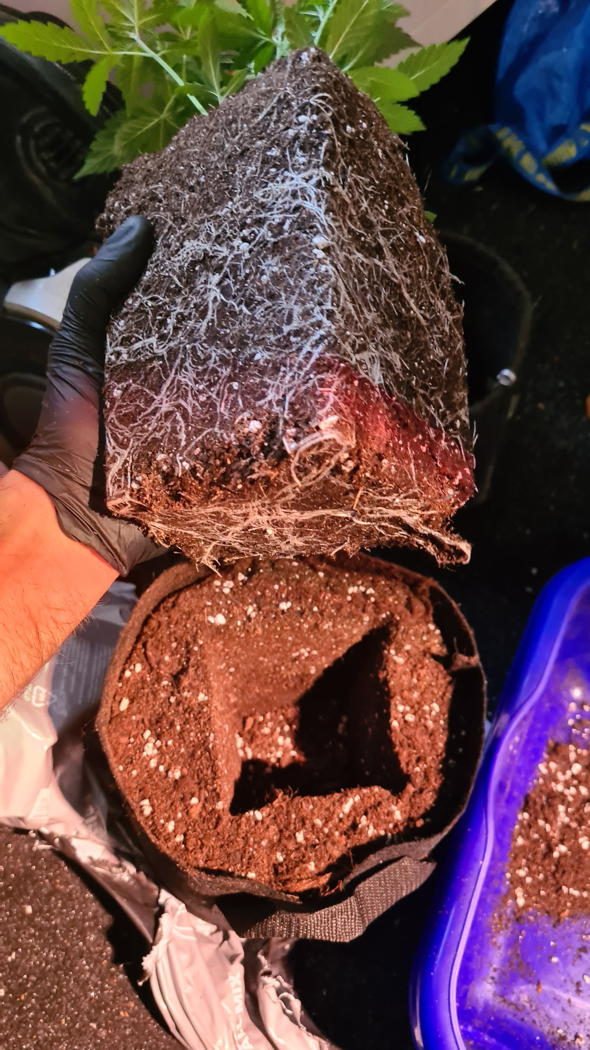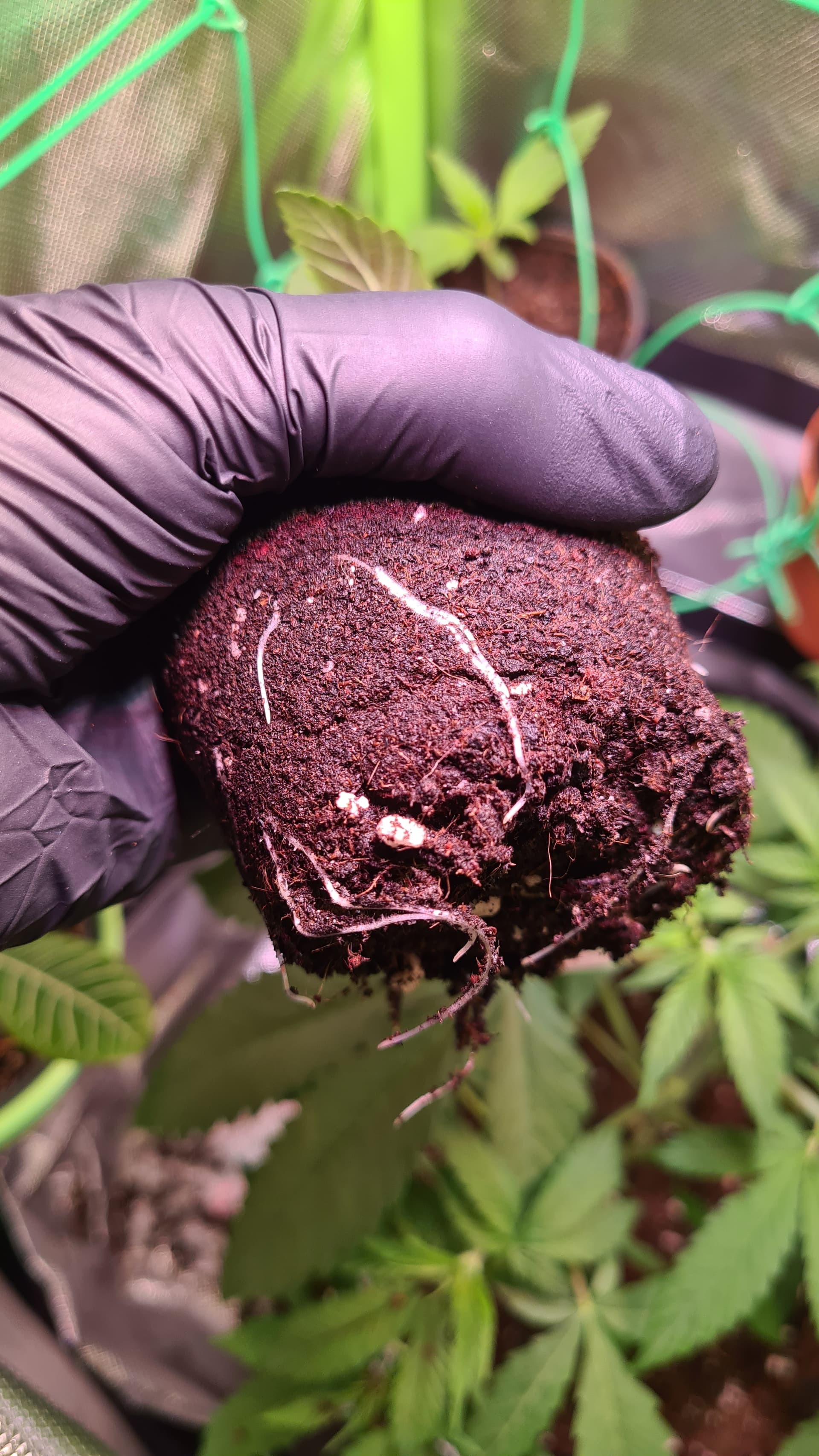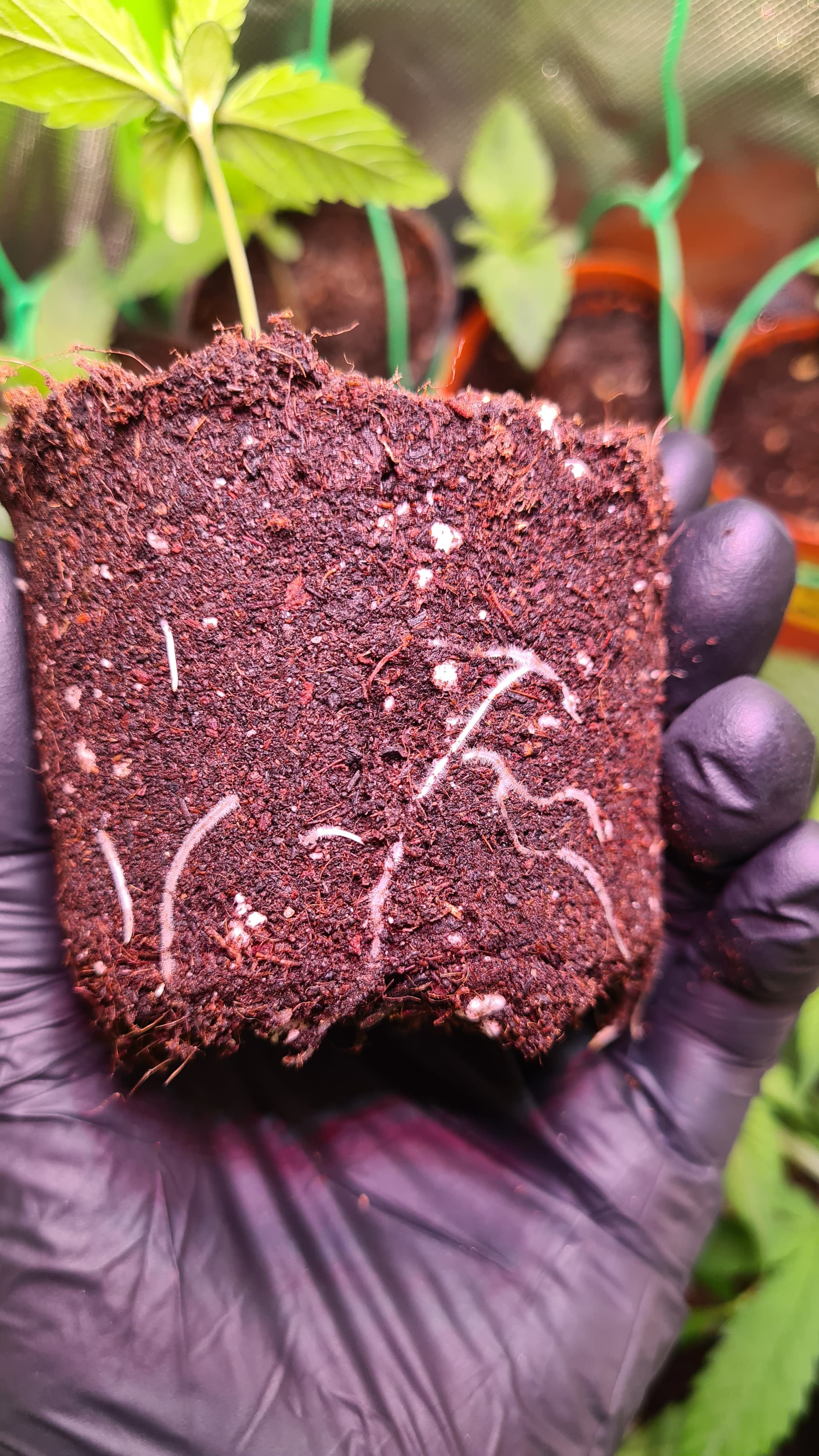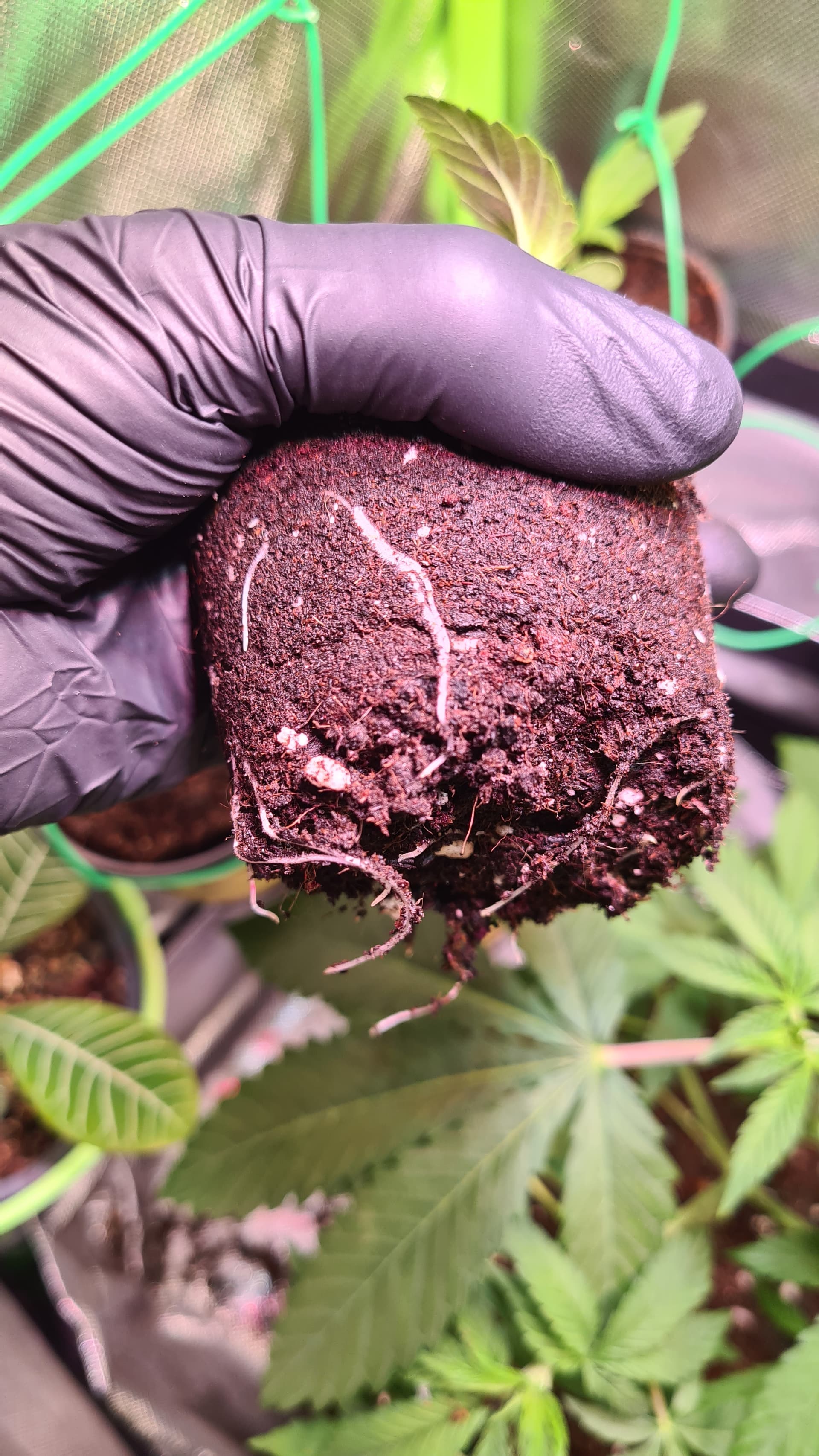 Von einer Runtz konnte ich mich nicht trennen. Dafür aber von KingKong aus meinem aktuellen ersten RUN. Ich glaune die Entscheidung war richtig! Habe die alte Erde Dope Soil (4L) und neue biobizz all mix von einem 2L in ein 8L umgetopft. Also die Runtz war in den 2L und sind in die 8L gewandert um es verständlich machen. Der springende Punkt KingKong war von den Wurzeln in BW6 halb so viel entwickelt wie die Runtz in VT20
