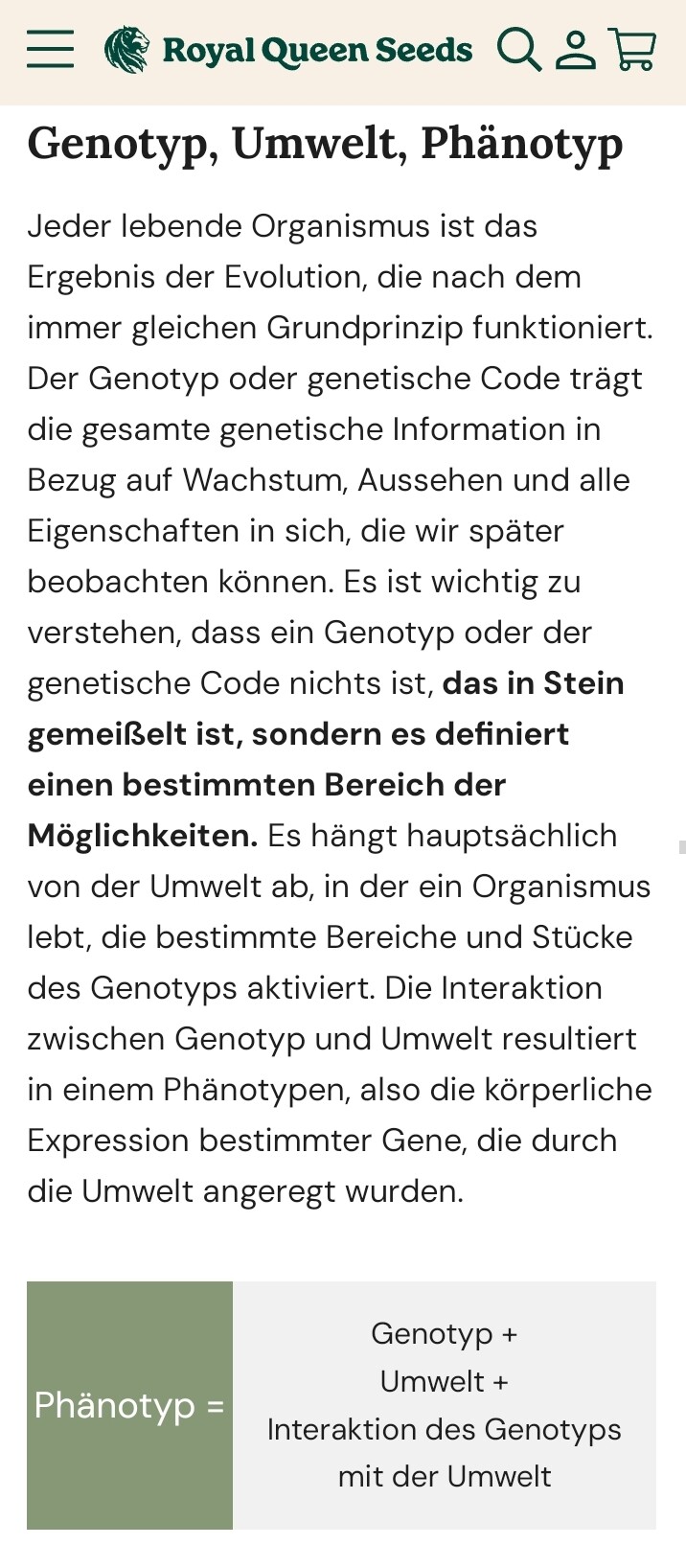 Diese zwei Genotypen können auch unterschiedlich wachsen, gedeien, performen was dann der Phänotyp wäre der größten teils Klima abhängig ist.