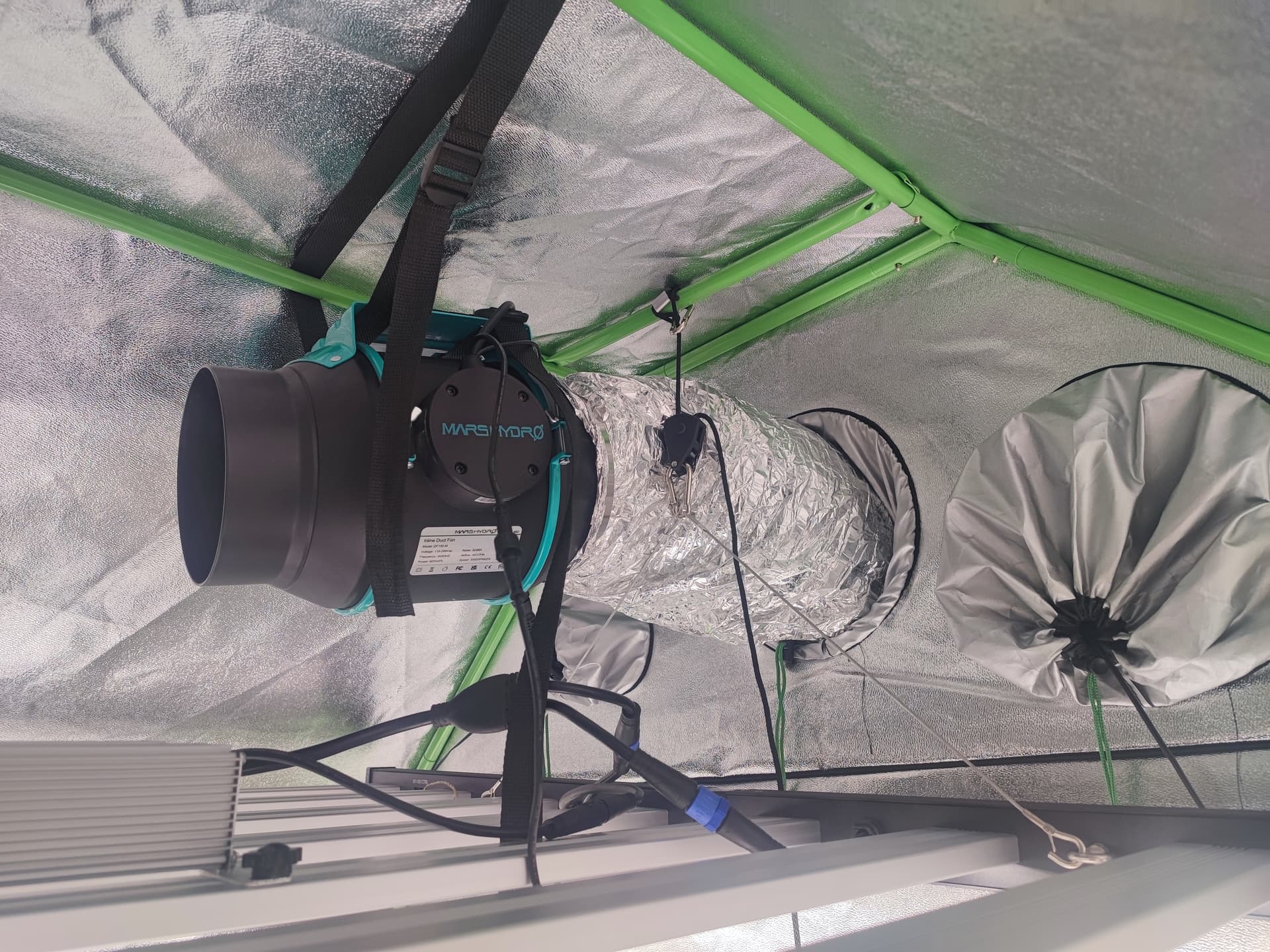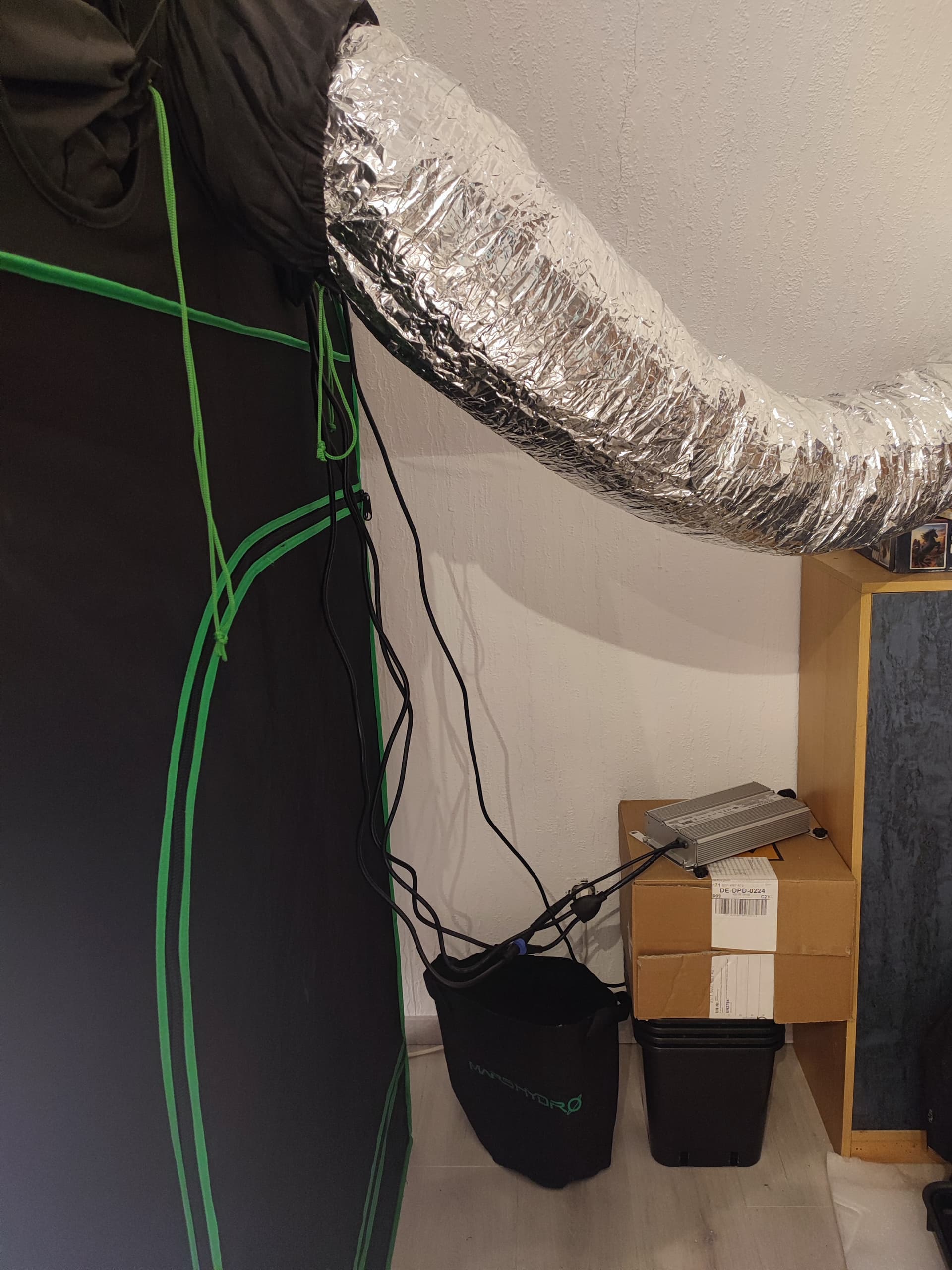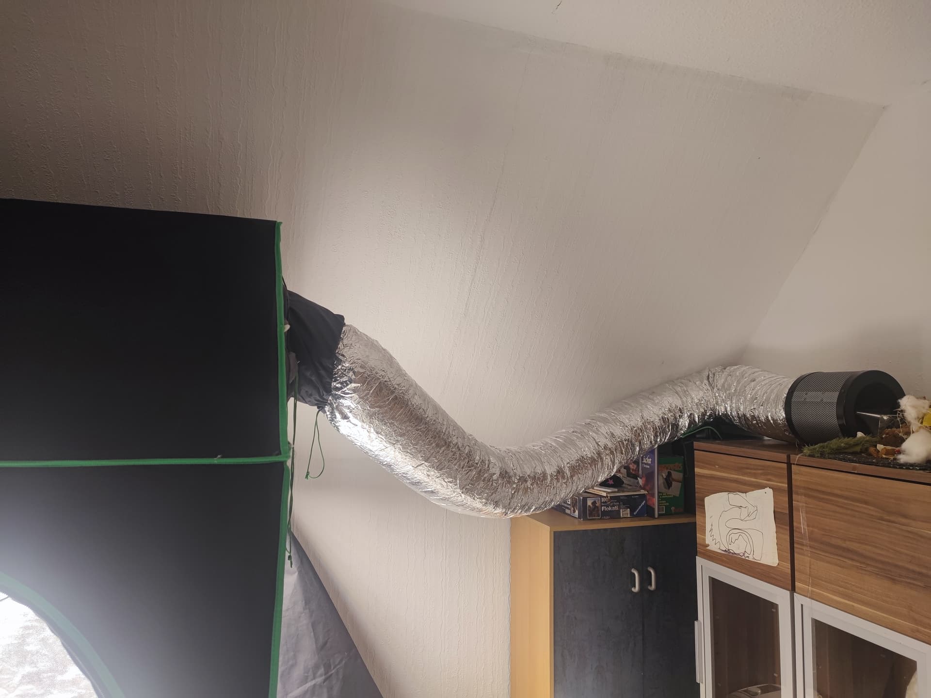 Location: Indoor Growbox*: 120120180 Dachschräge Beleuchtung: PHLIZON FD6000 640 W Vollspektrum-Daisy-Chain-dimmbares LED-Wachstumslicht mit Samsung 281B Belüftung: MarsHydro inline smartfresh 150mm @ 402 cfm/ 690m³/h inkl App-Steuerung mit hygrometer und Temperatur sensor. Umluft: 3 x ghp 5w Clip-Ventilator und