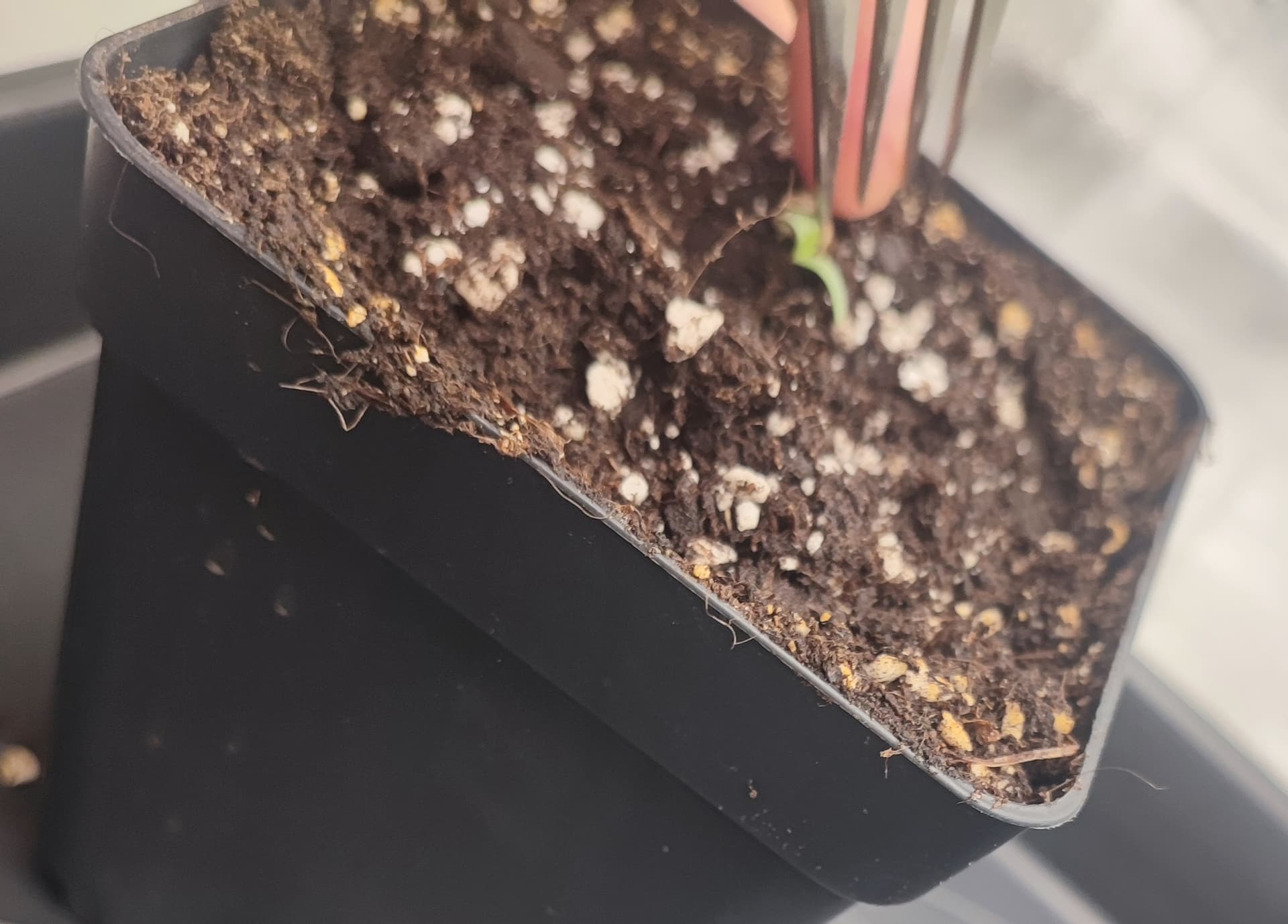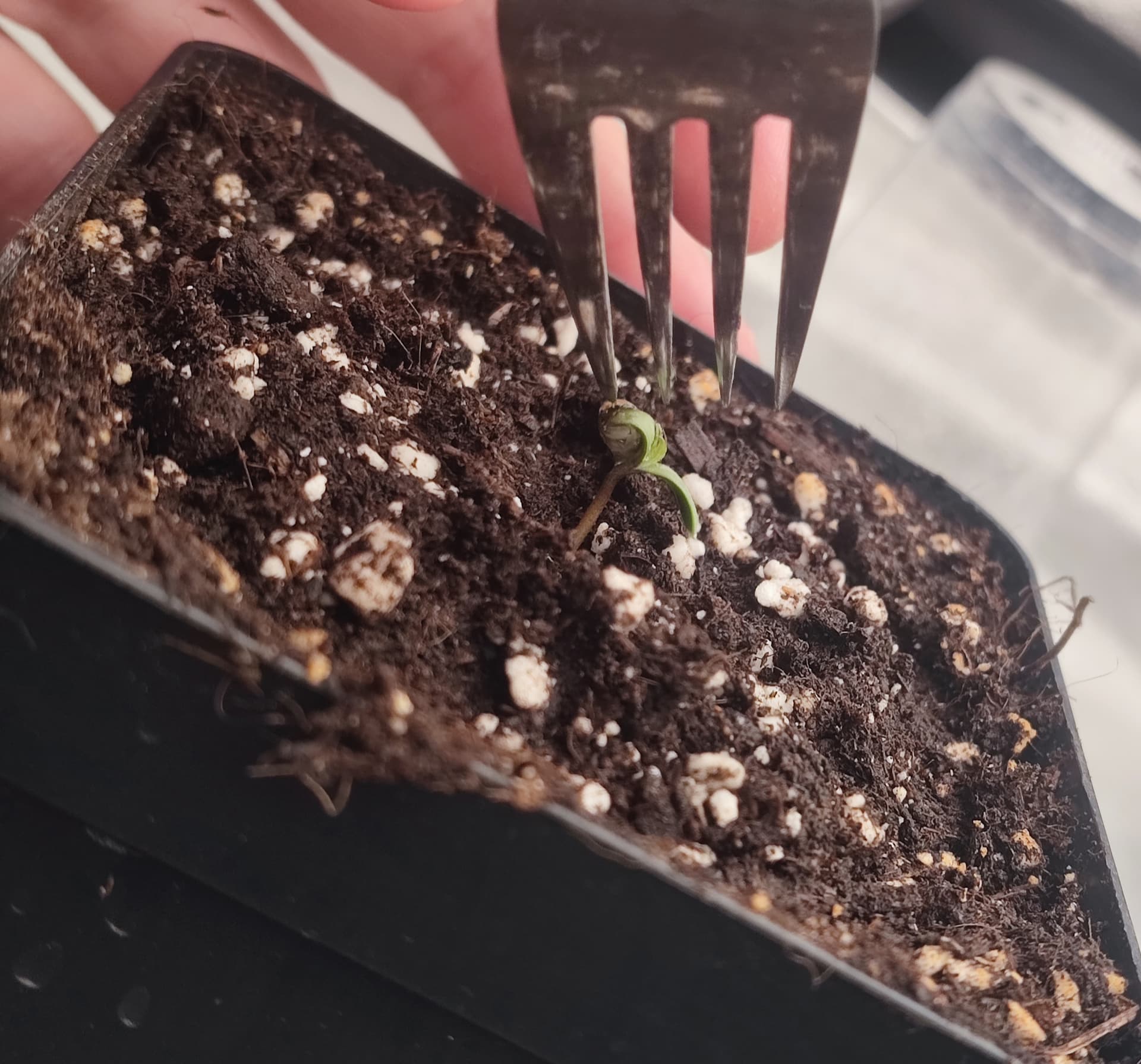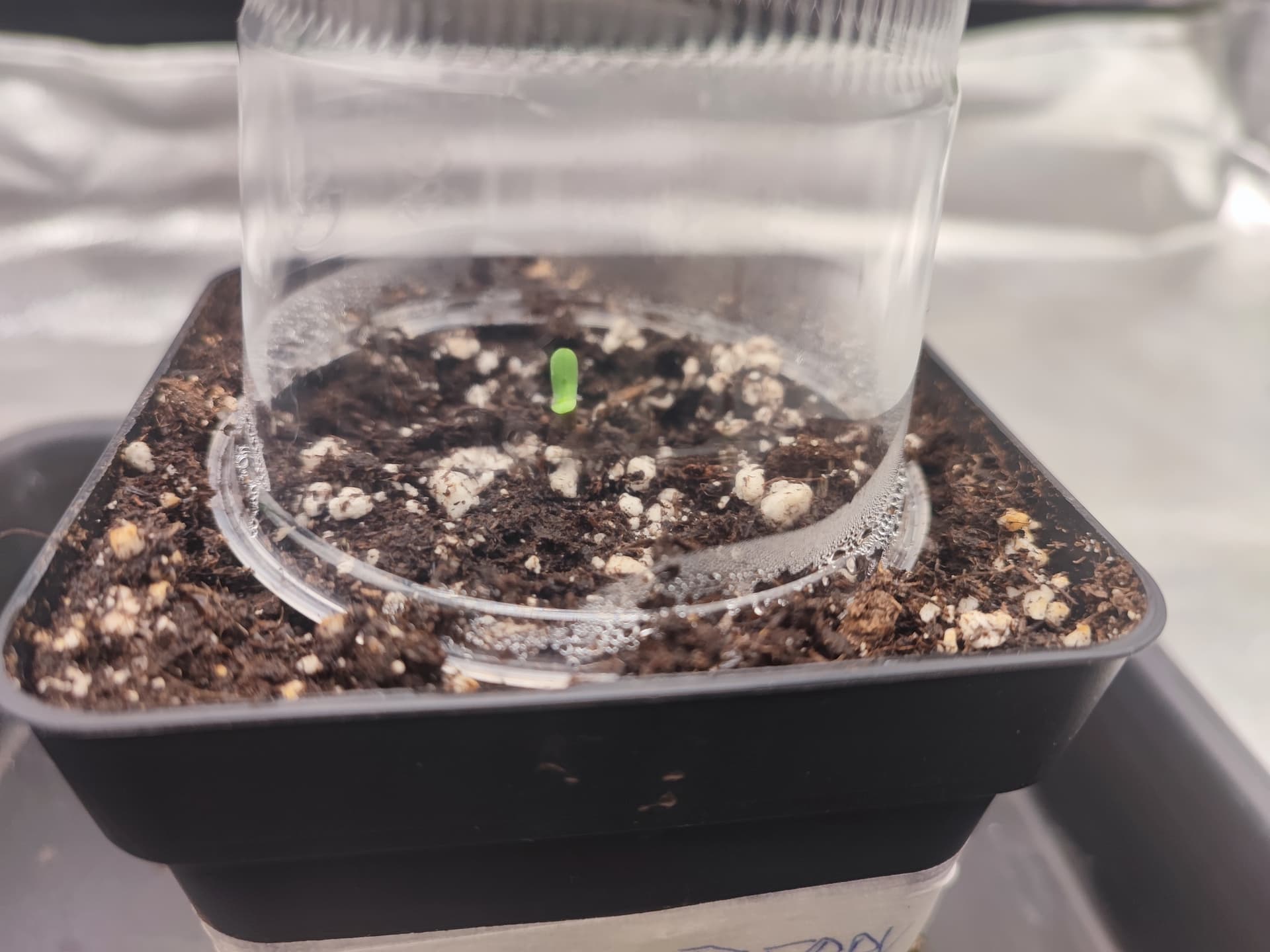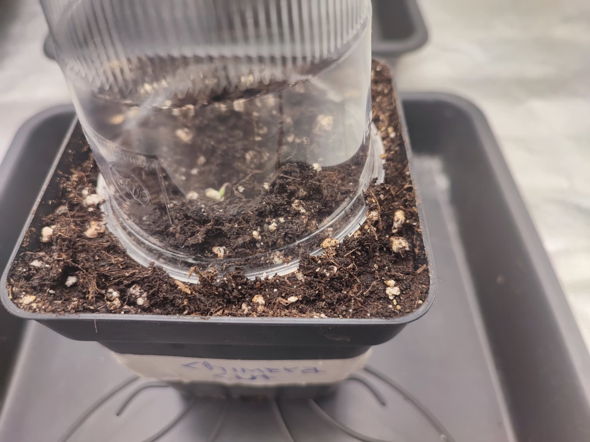 Heute kam also der letzte dazu… Ärgerlich das der verloren gegangen gedachte future#1 Samen nun doch noch die Kurve bekommen hat und nach einem Tag Stillstand nun doch die wurzel streckt. Aber die braune Stelle bleibt an der Krümmung der Pfahlwurzelspitze