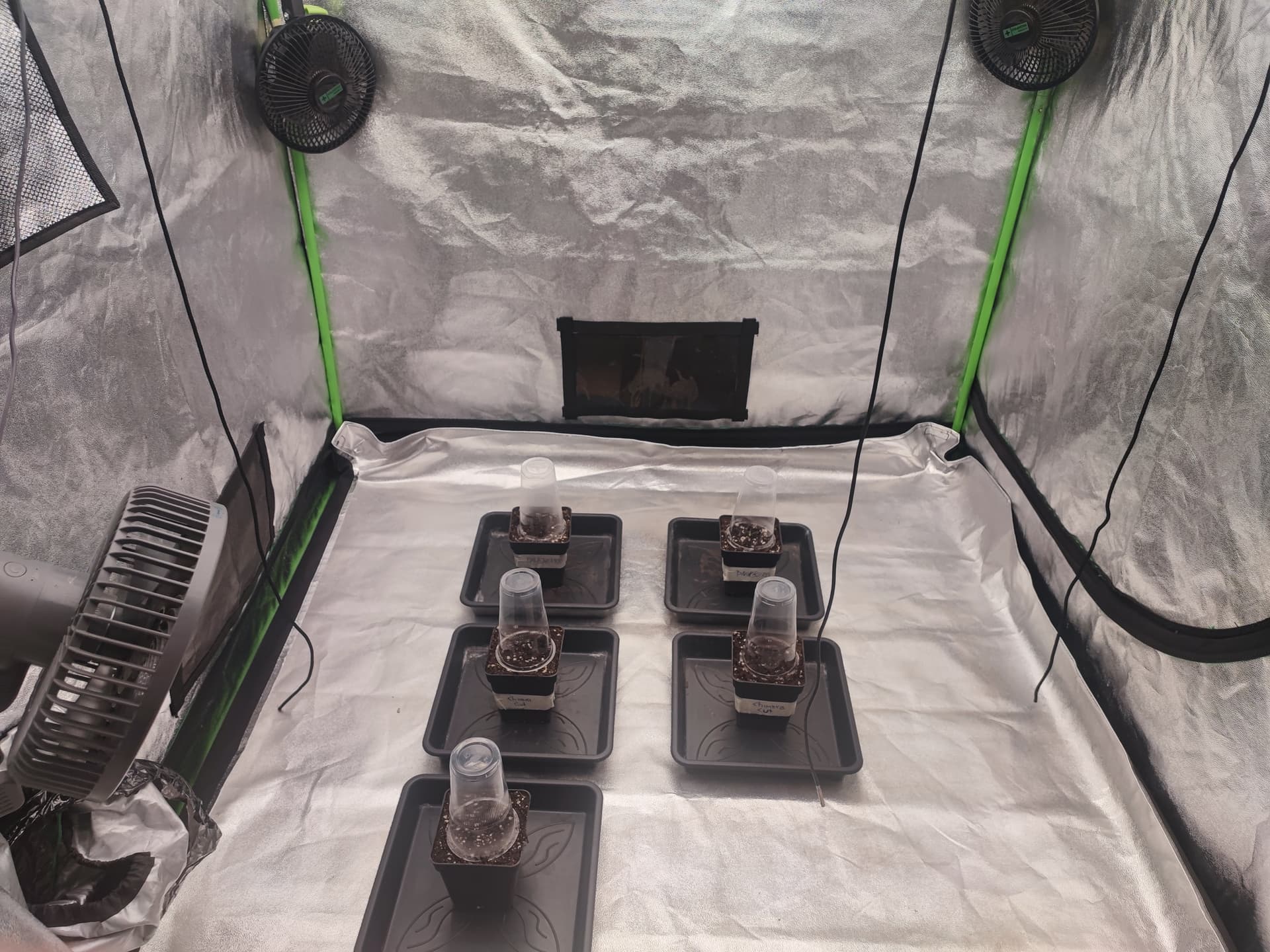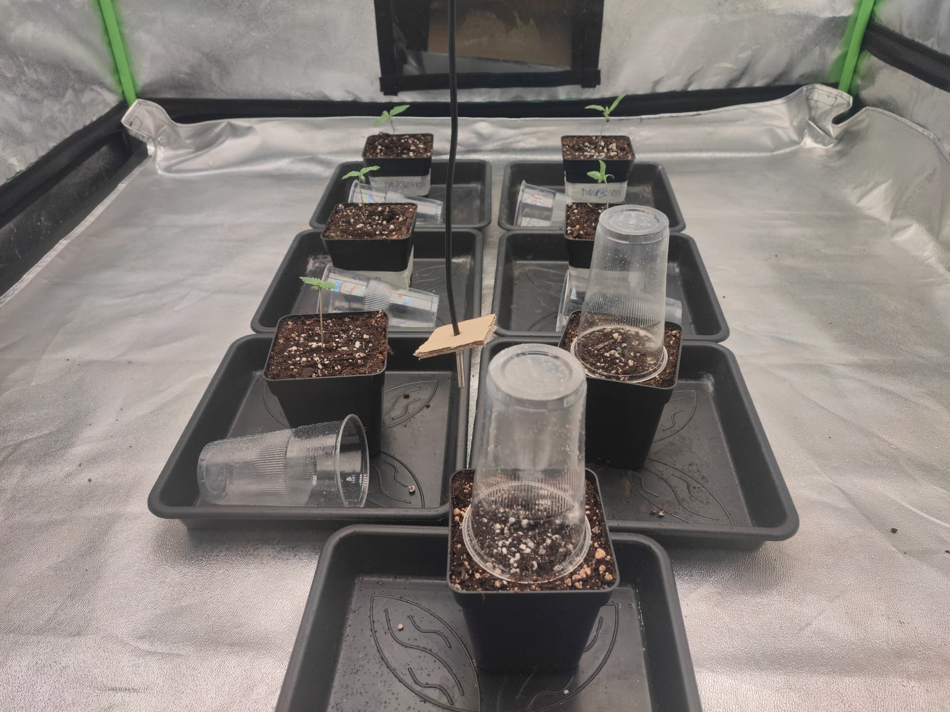 Für alle Töpfe gab es erst Wasser + hesi wurzel komplex 5ml/1L und dann wurden die Samen eingesetzt