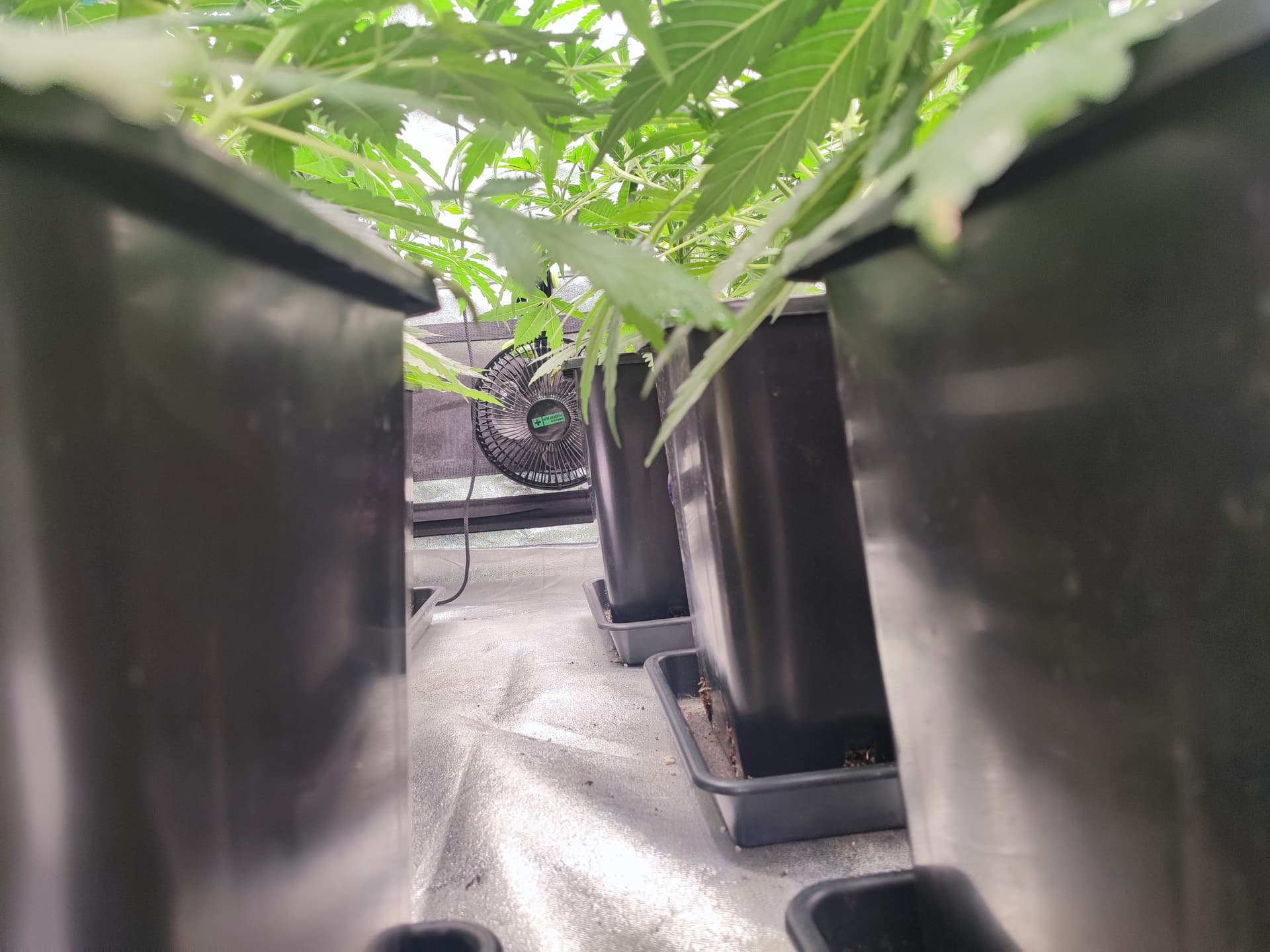 Heute kamen die Stangen. Durch die Veränderung wurde eine wesentliche Verbesserung in Sachen Belüftung (Umluft) erreicht. Zwei die über die Pflanzen gehen, einer aus der Ecke im 90° Winkel und einer aus der Zukunft Öffnung, am Fenster unten auf Höhe der Topfkante, um die Bodenluft zu verbessern.