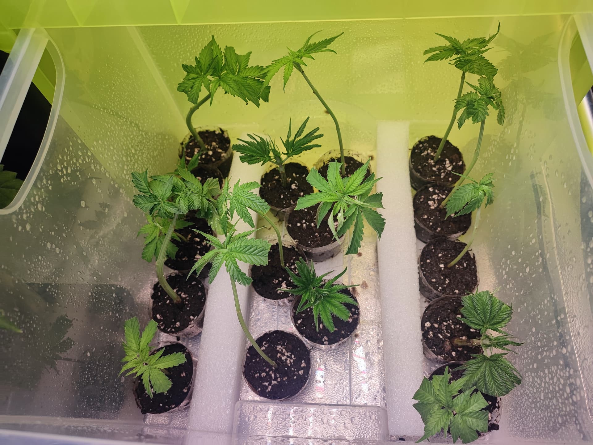 Also bezüglich deiner Stecklinge sie werden so ganz schlecht wurzeln da die stellen wo sich die wurzeln bilden sollen auch Licht ab bekommen also lieber in irgendeinem medium das am Anfang feucht gehalten wird und nach und nach immer trockener werden sollte damit das Wurzelwachstum angeregt wird ![]()
