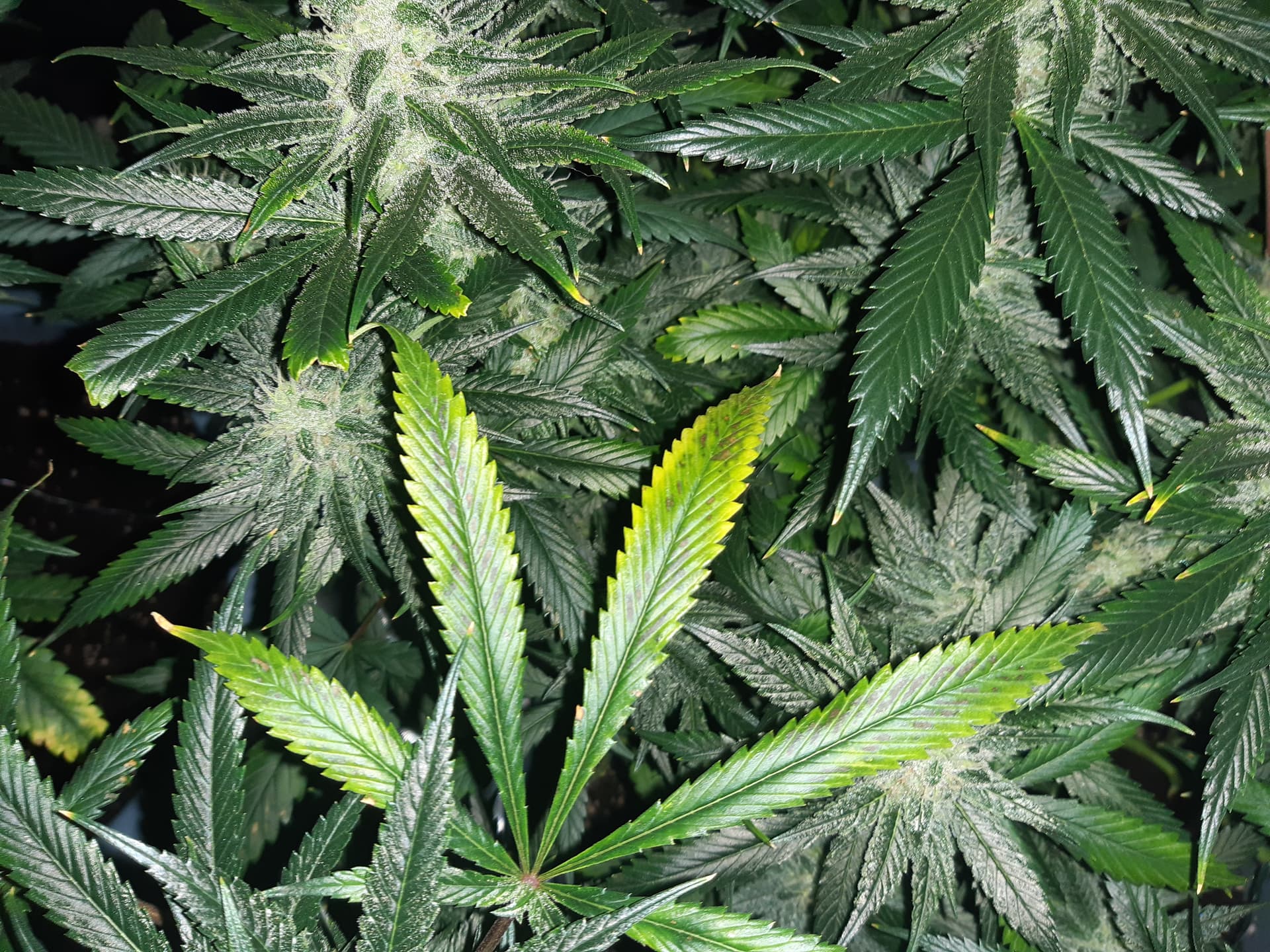 Heut morgen wie das Licht ausging hab ich etwas geschossen, gedĂŒngt wird 50 % vom schema da die BlĂ€tter schon sehr ins Dunkle gingen, letzte mal GedĂŒngt wurde vor knapp 1 1/2 Woche, ist doch ein NĂ€hrstoffmangel wenn ich mich nicht Irre?