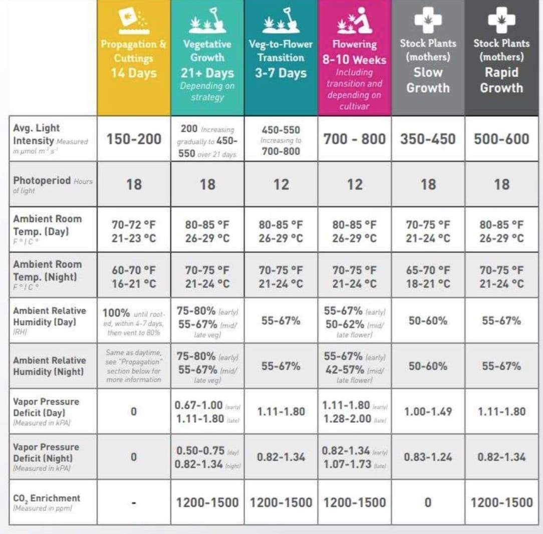 Kann mir jemand einfach mal ein pauschales Schema für Temperatur und Luftfeuchtigkeit in Keim, Anzucht und Blütephase geben, da sagt irgendwie jeder ein bisschen was anderes.