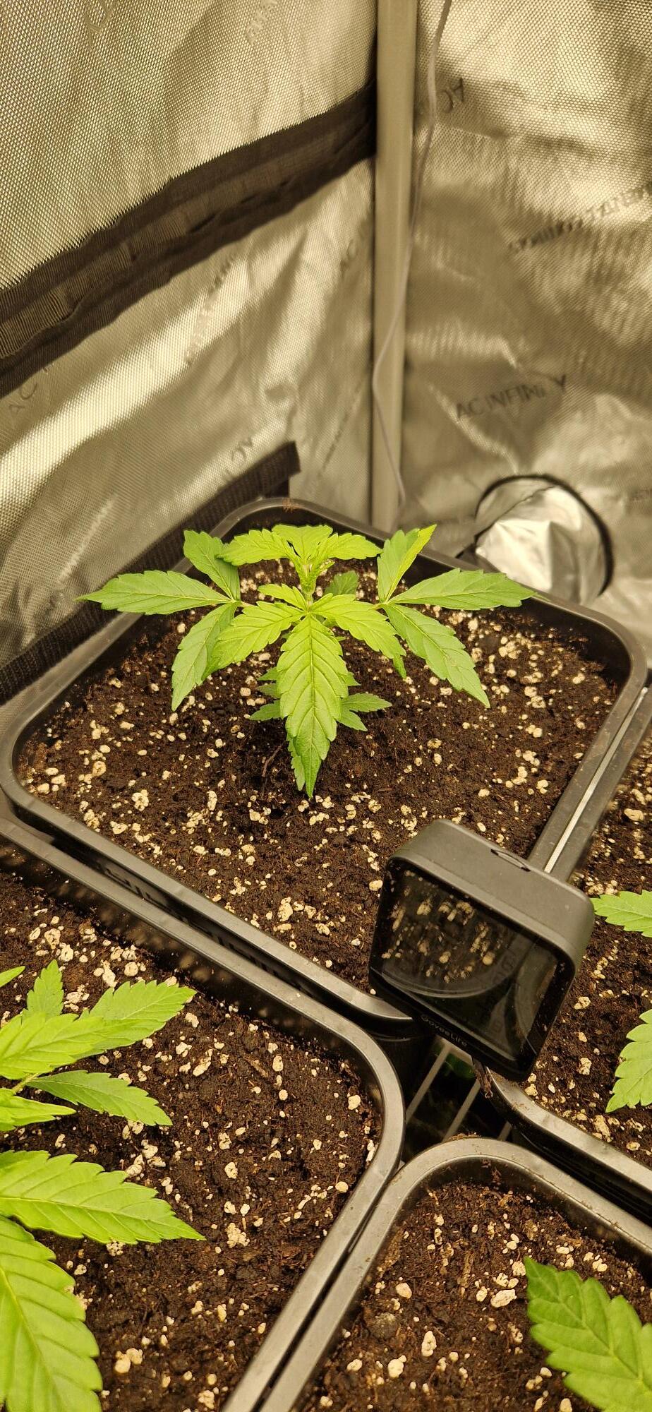Pflanzen werden am Samstag zwei Wochen alt und ich bilde mir ein man riecht im Zelt schon ein bisschen was