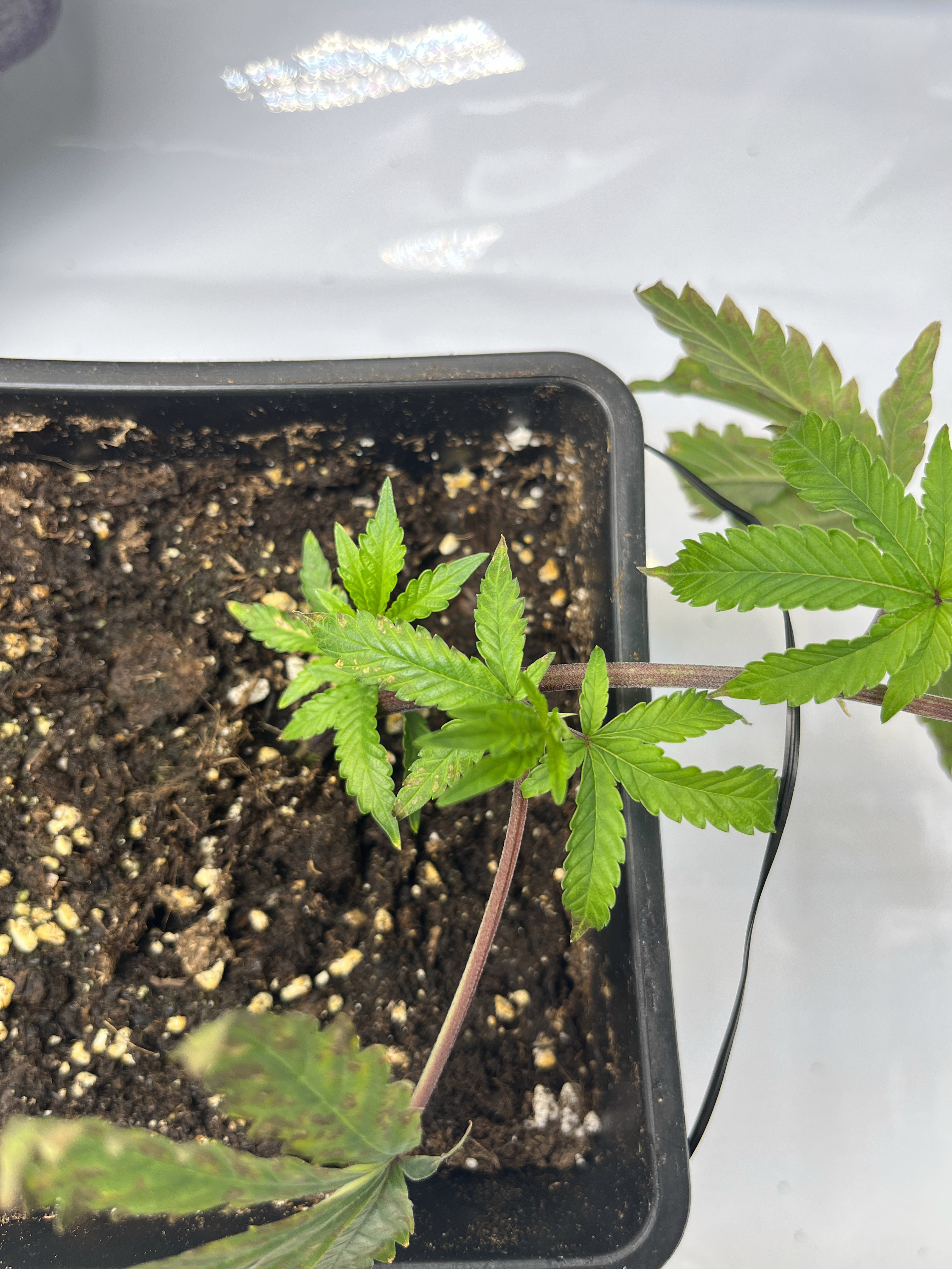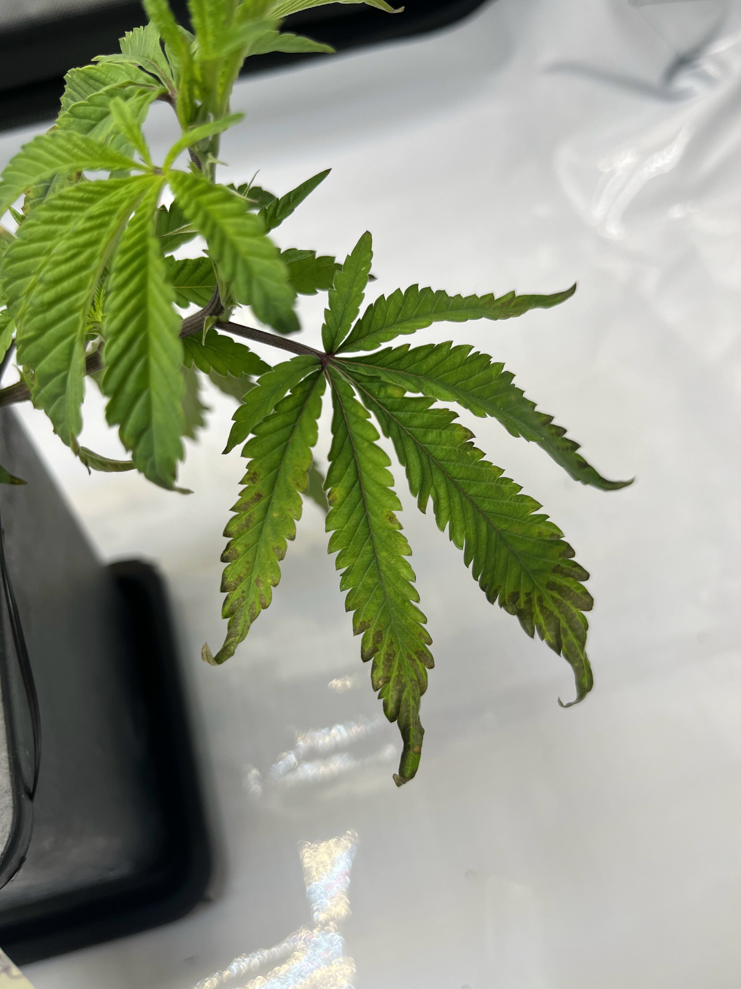 Hey Hey, hab vor paar Tagen schon mal geschrieben das ich mir bisschen sorgen um eine meiner Damen mache. Anfangs dachte ich, vielleicht hat sie sich verbrannt (Habe den Abstand dann vergrößert und die Leistung der Lampe gedimmt) aber die Neuen Blätter haben auch diese Verfärbungen deswegen gehe ich eher davon aus das sie irgendwas hat. (Muss aber sagen sie hatte schon paar gelbe flecken als ich sie bekommen hab)