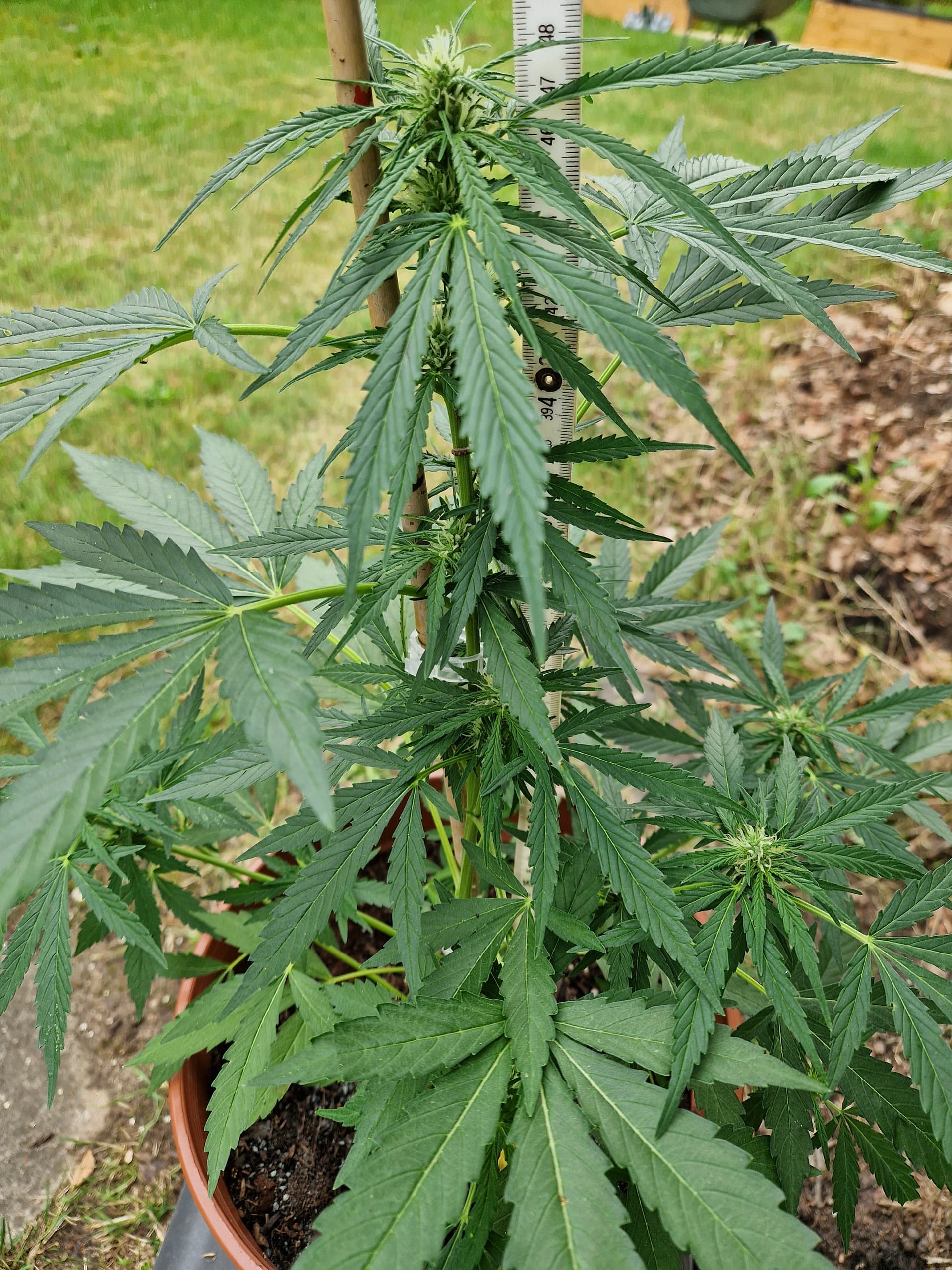 Laut RQS wird sie bis zu 160cm Outdoor hoch bei 110-160gr Ausbeute pro Pflanze, 11-12 Wochen von der Keimung bis zur Ernte, demzufolge also theoretisch in der nächsten Woche. Dass das auch mal länger dauern kann, habe ich bereits hier im Forum gelesen.