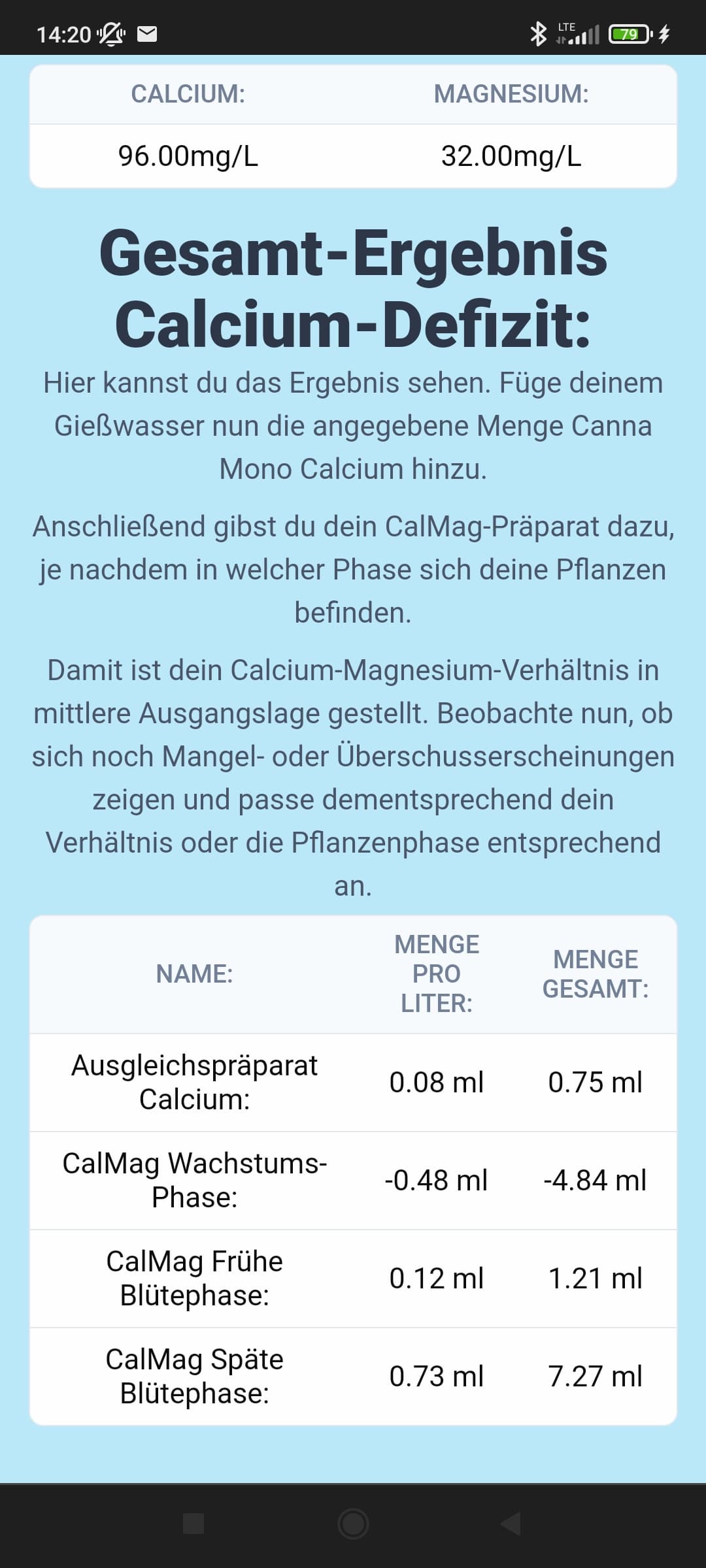 Ich habe jetzt auch mal den calmag Rechner genutzt. Dabei wird mir ein Defizit an Calcium berechnet.