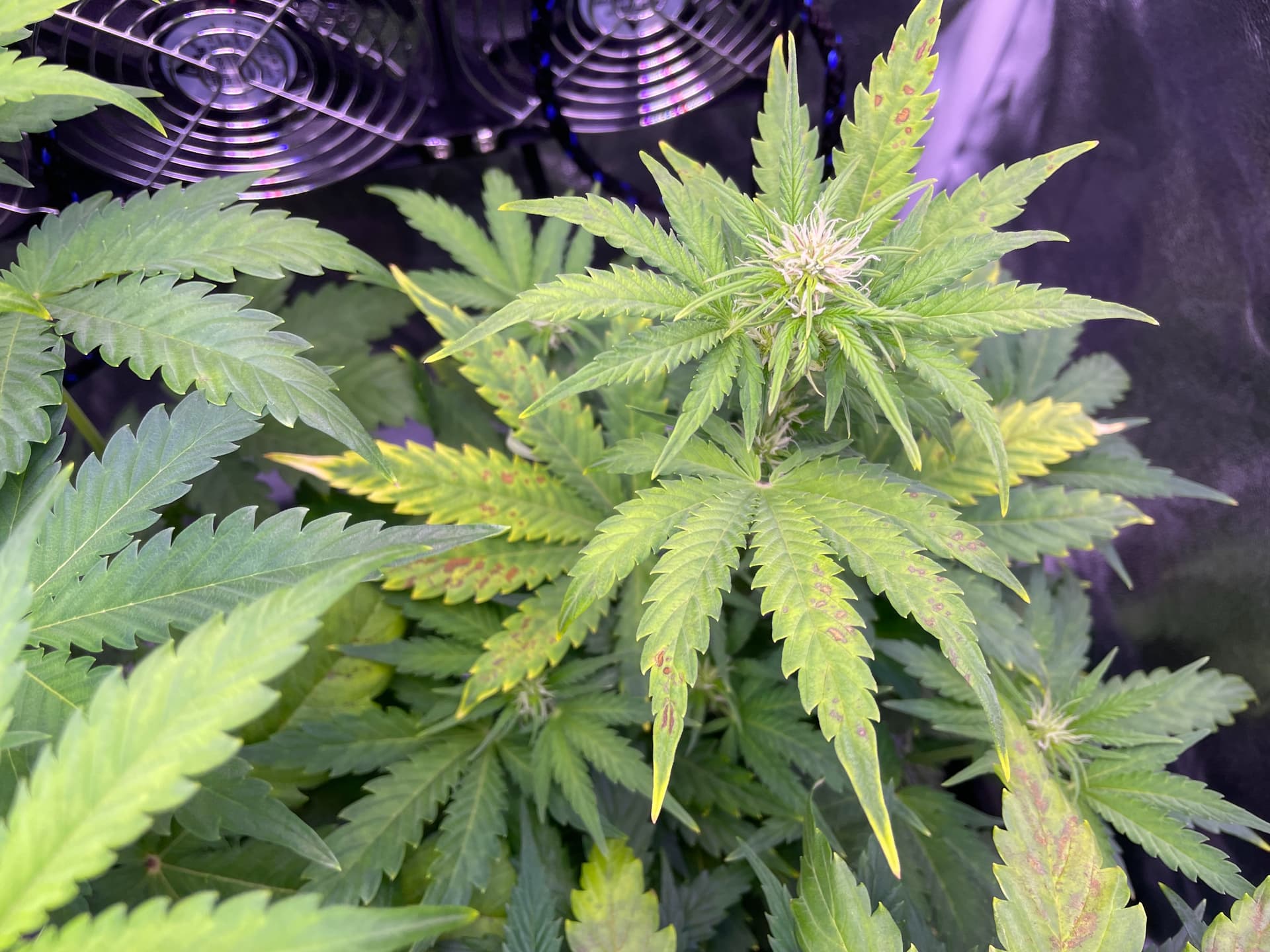 wie in unserem Growreport beschrieben hatten wir wegen Verdacht auf zu viel CalMag (gelbe Blattspitzen) beim letzten mal Gießen CalMag entsprechend weggelassen.