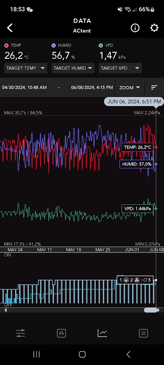 AC Infinity IONGRID S22 150W - läuft aktuell auf Stufe 5 was ungefähr. Was ungefähr 48-50 DLI auf 18 Stunden Licht sind. 550-600 PPFD. Leider bin ich mit der Lampe schon voll auf anschlag weil ich das total unterschätz habe wie groß die werden können!