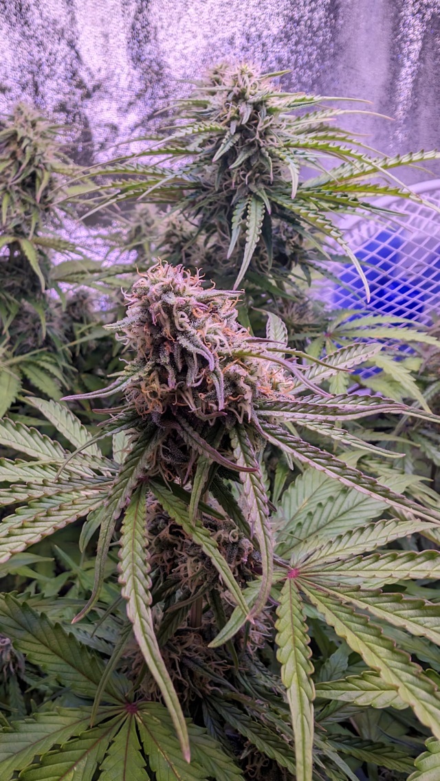 also bei dem bild wo alle 3 drauf sind sind die vorderen 2 cherry cola und purplepunsh und die große hinten ist auch ne cherry cola ich glaub des is einfach heftiger mangel ich hab leider immer nur 1 mal die woche gedüngt anstatt bei jeden gießen hab die feedchart falsch intepretiert leider