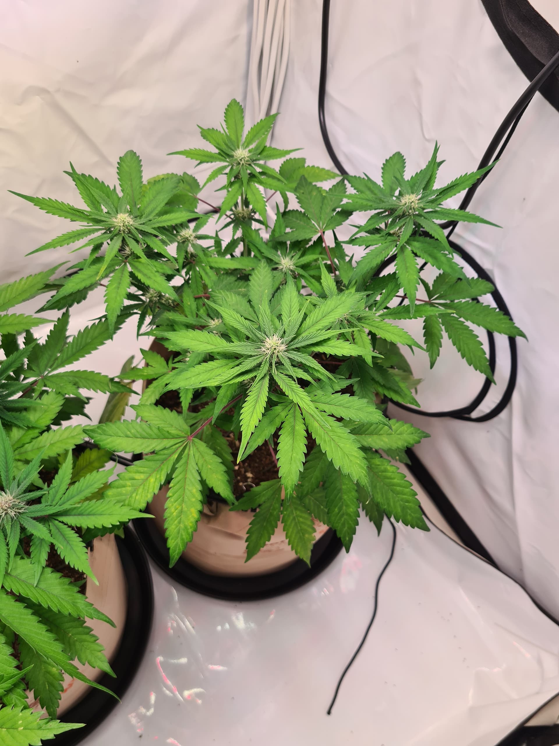 Die „Vorblüte“ tritt bei mir erst nach Licht Umstellung auf. Heißt nix anderes, als dass gerade die männlichen Kandidaten, dort in den Ast/Blatt-Achseln, recht früh ihre ersten Blüten zeigen.