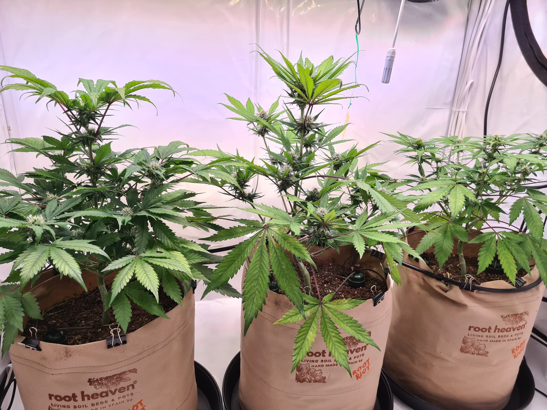 Bis zur 1. Blütewoche schien alles okay gewesen zu sein. Bis auf die tatsache, das ich, für mein dsfürhalten, extrem wenig wachstum hatte und plötzlich die blüte bei den damen einsetzte. Vielleicht hab ich zu viel entlaubt und runtergebunden am anfang …