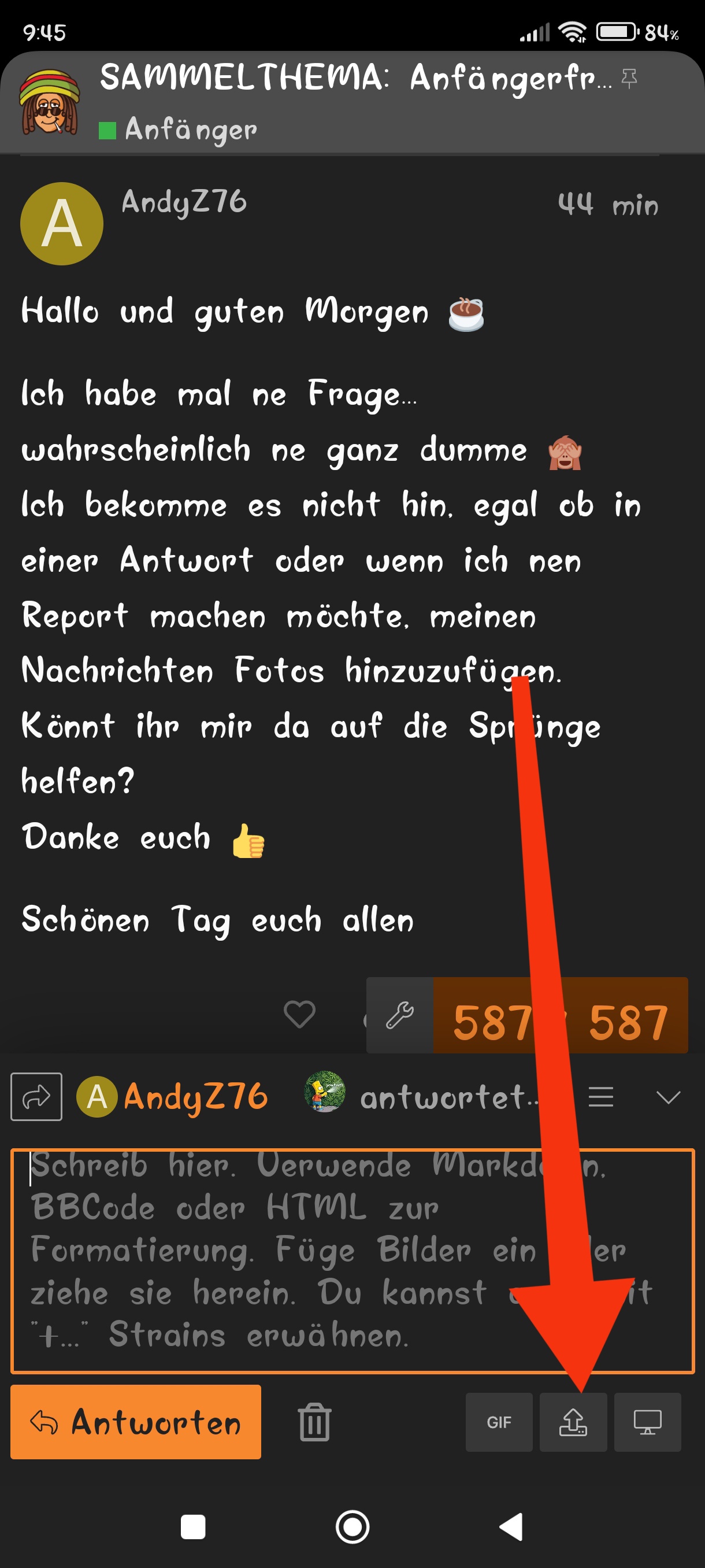 Oder wenn du am PC schreibst einfach von deinem Datei Explorer aus per drag & drop in das Eingabefeld vom Forum ziehen. ![]()